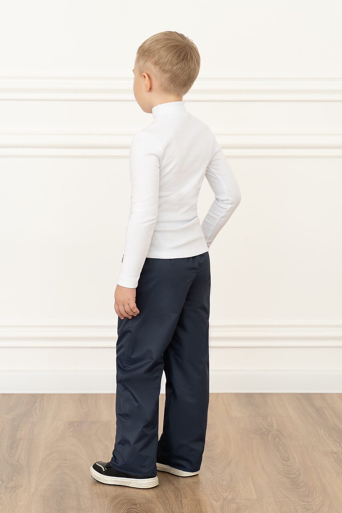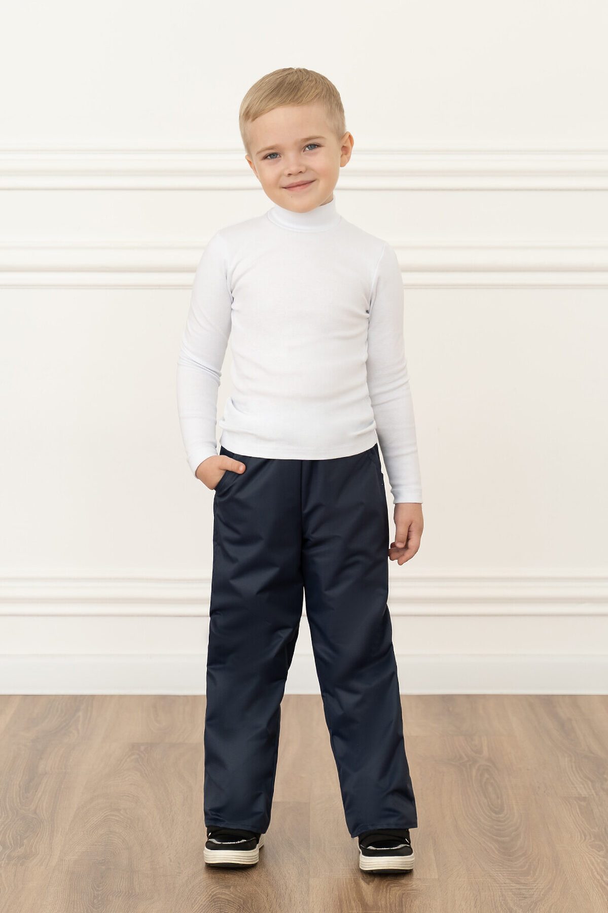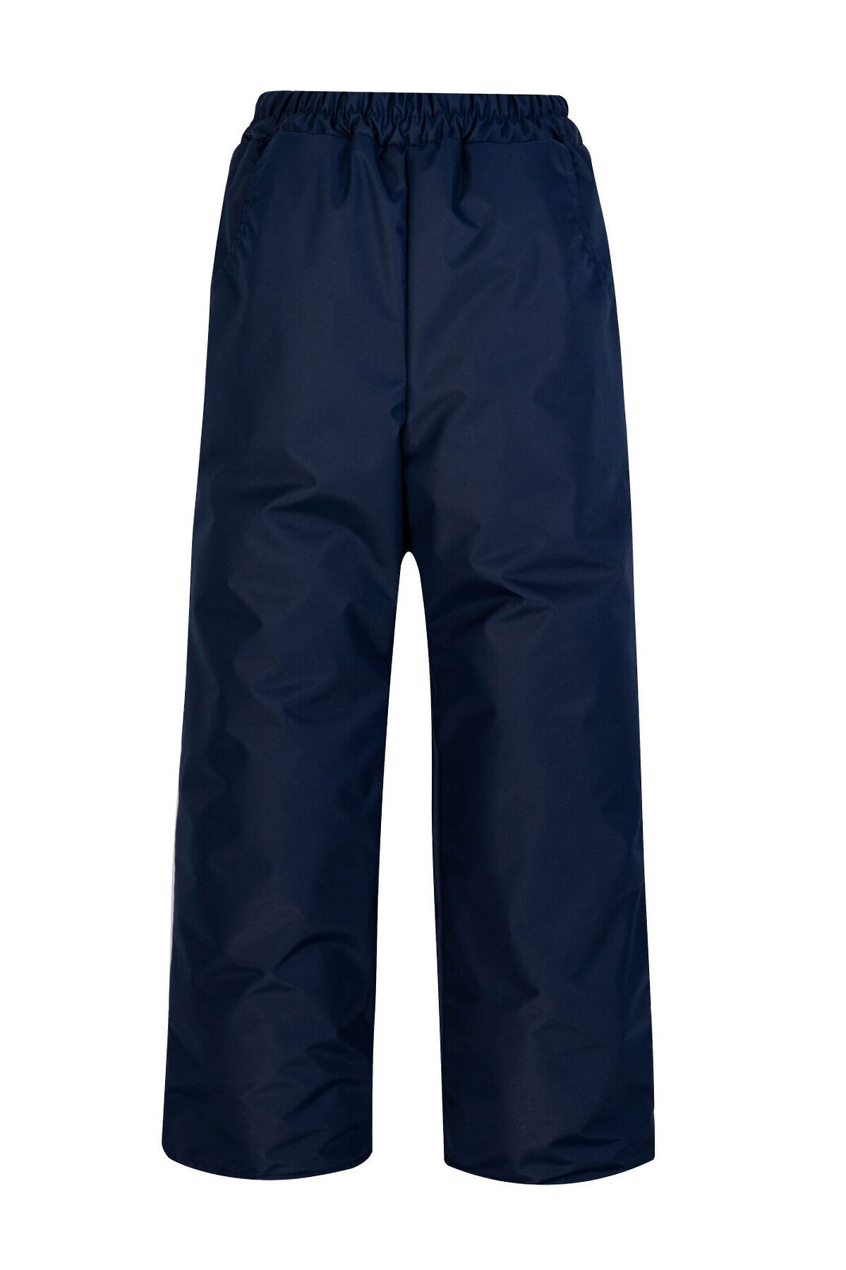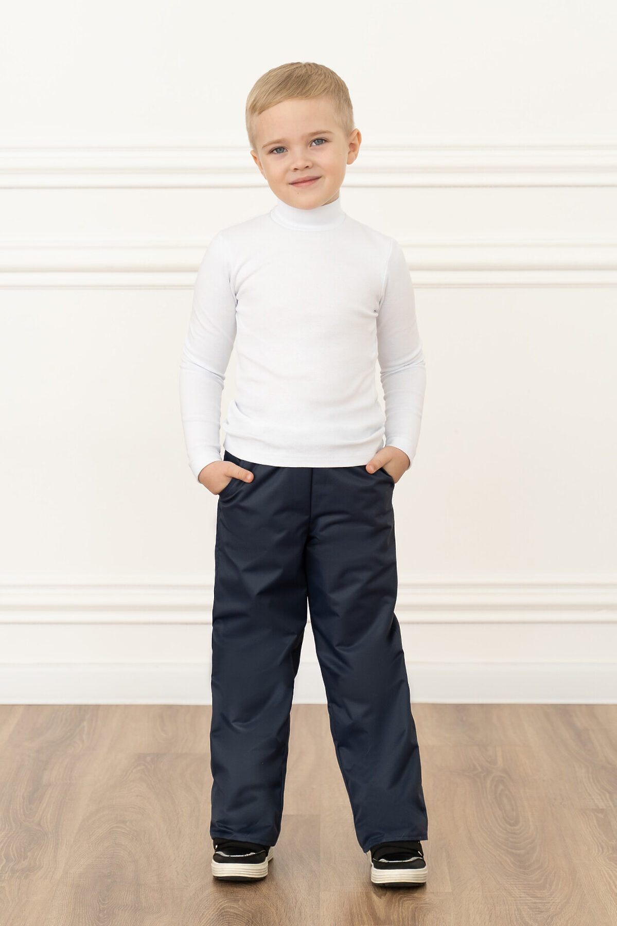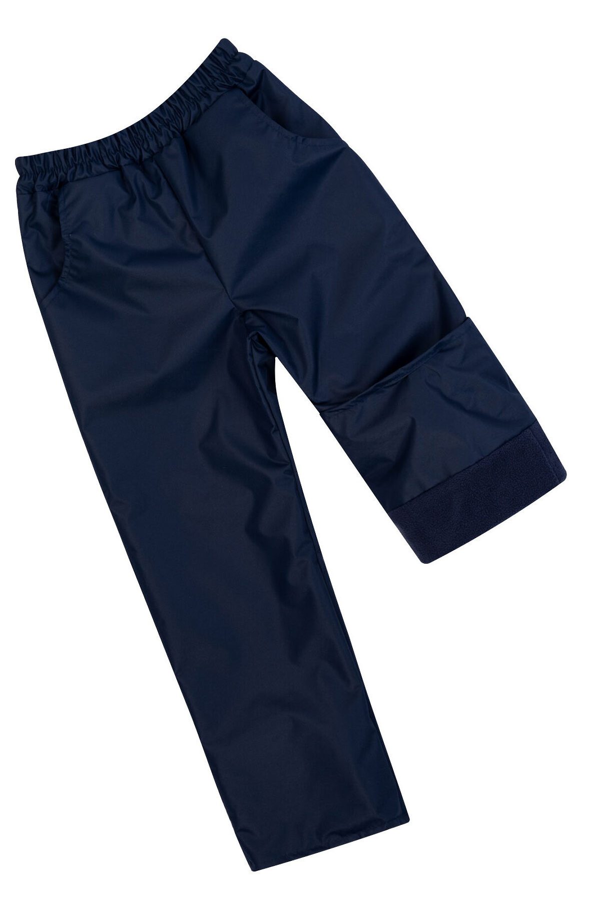 Практичные демисезонные брюки. Штанины можно подвернуть, отрегулировав отворотами нужную длину. В пояс вшита широкая резинка. По бокам карманы. Выпускаются в однотонном темно-синем цвете.>