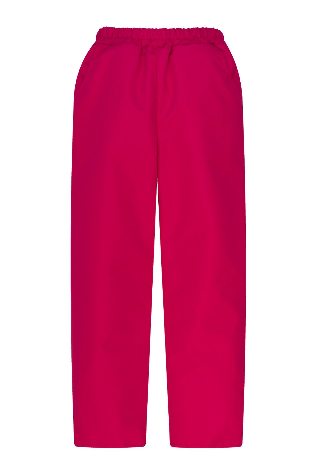 Практичные демисезонные брюки. Штанины можно подвернуть, отрегулировав отворотами нужную длину. В пояс вшита широкая резинка. По бокам карманы. Выпускаются в однотонном цвете.>