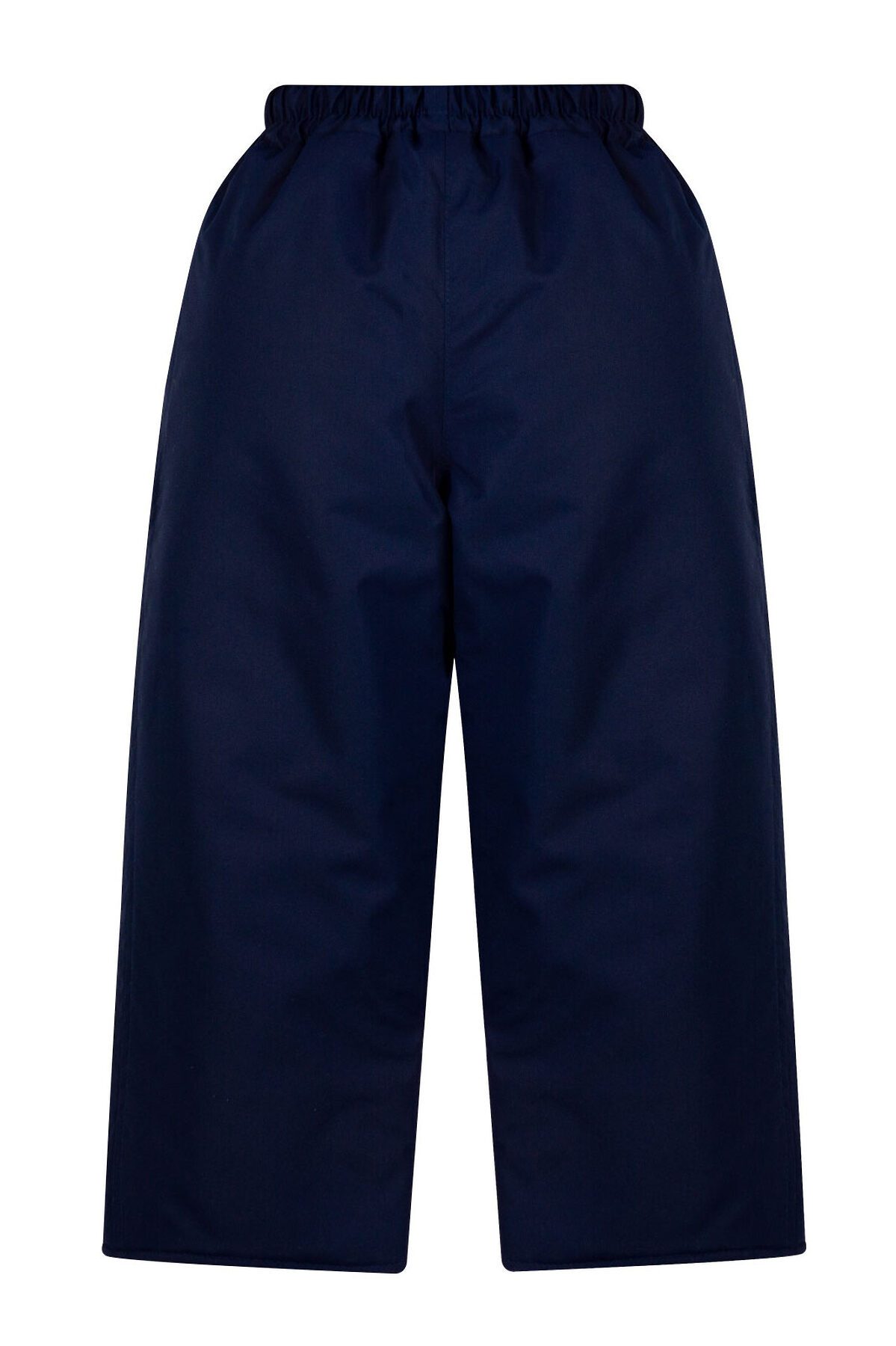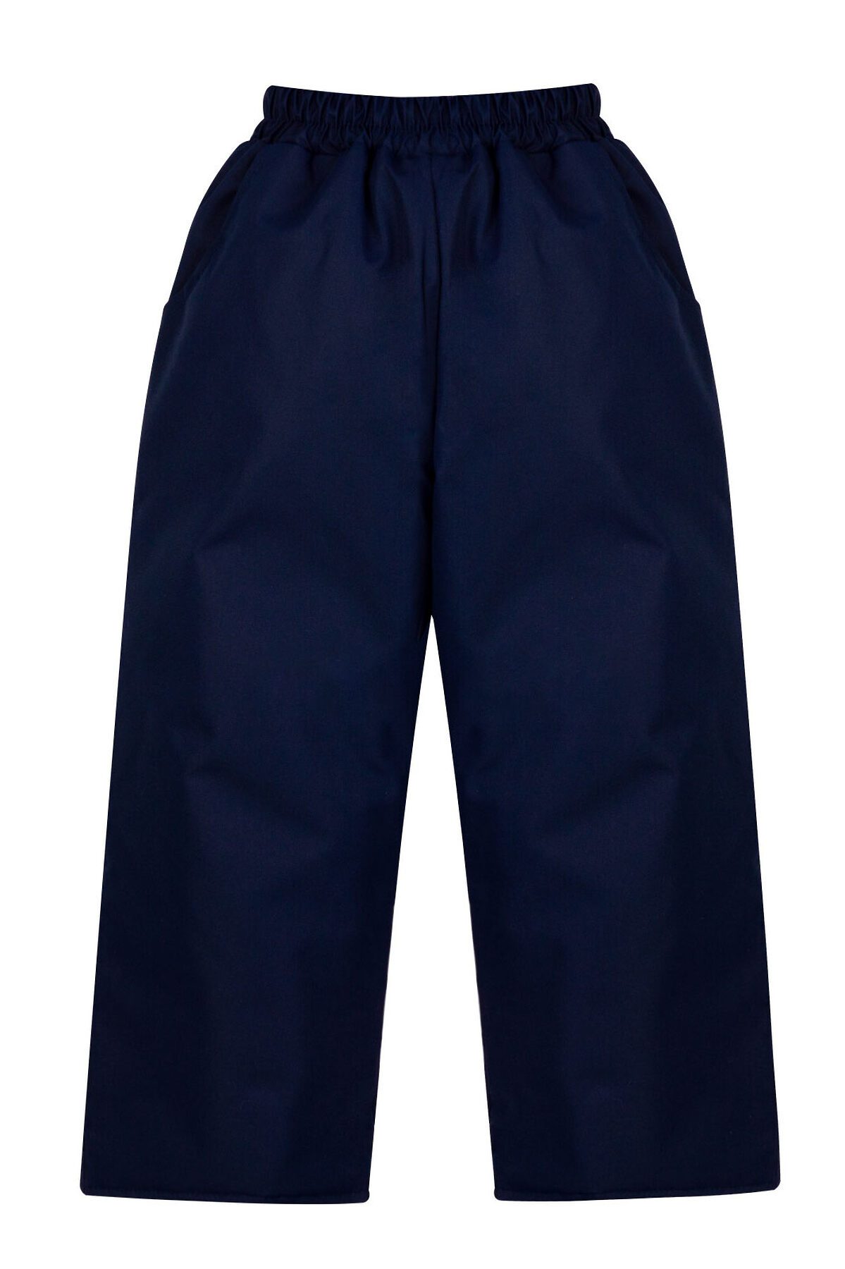 Для прогулок ранней весной или холодной осенью ребятам пригодятся тёплые брюки темно-синего цвета. Модель выполнена из качественных материалов: мембрана защищает от влаги и ветра, синтепон надёжно удерживает тепло. В пояс вставлена широкая резинка, по бокам расположены небольшие карманы. Длину штанин можно регулировать с помощью отворотов.>