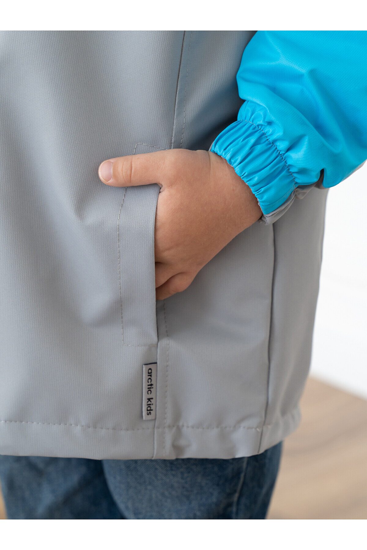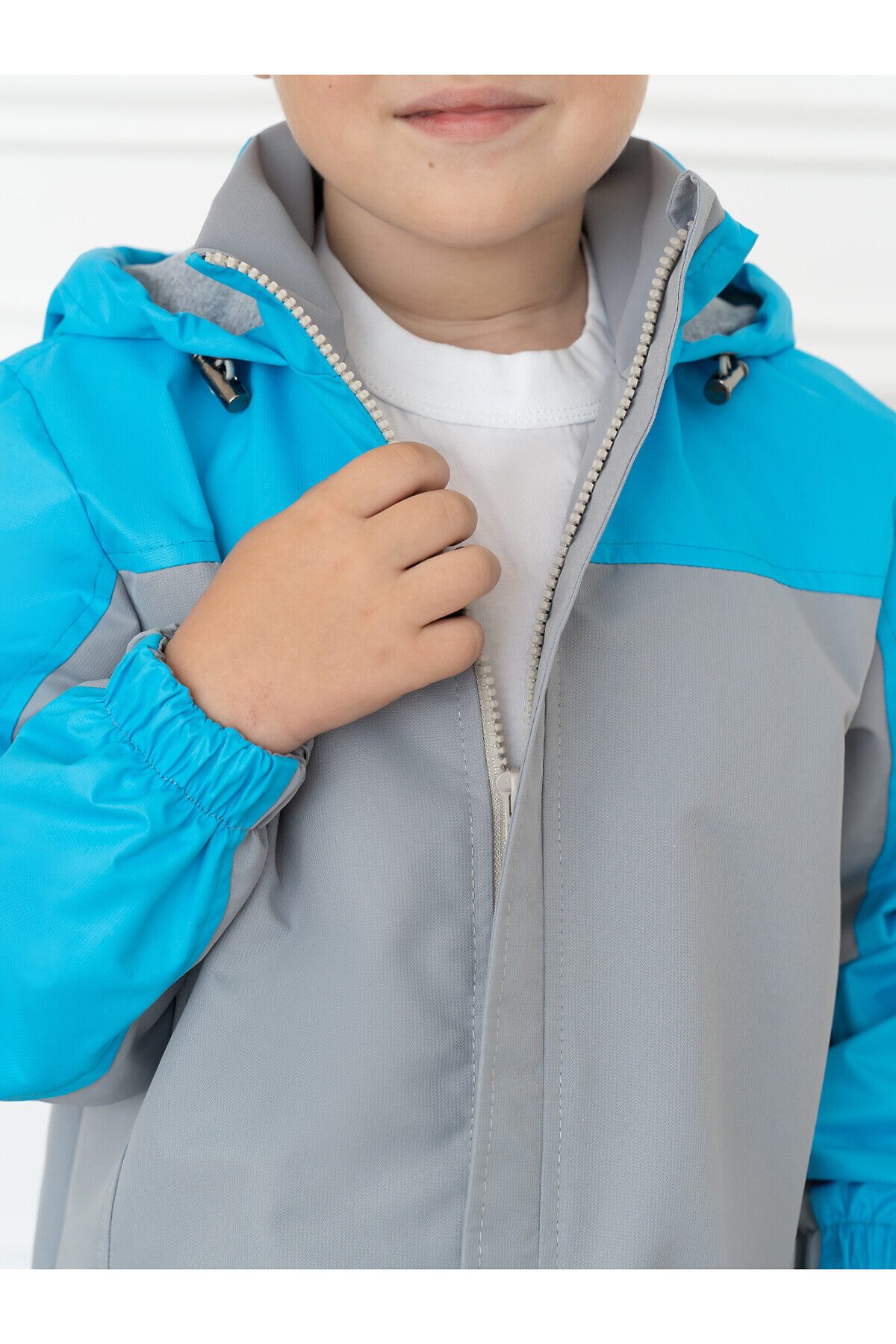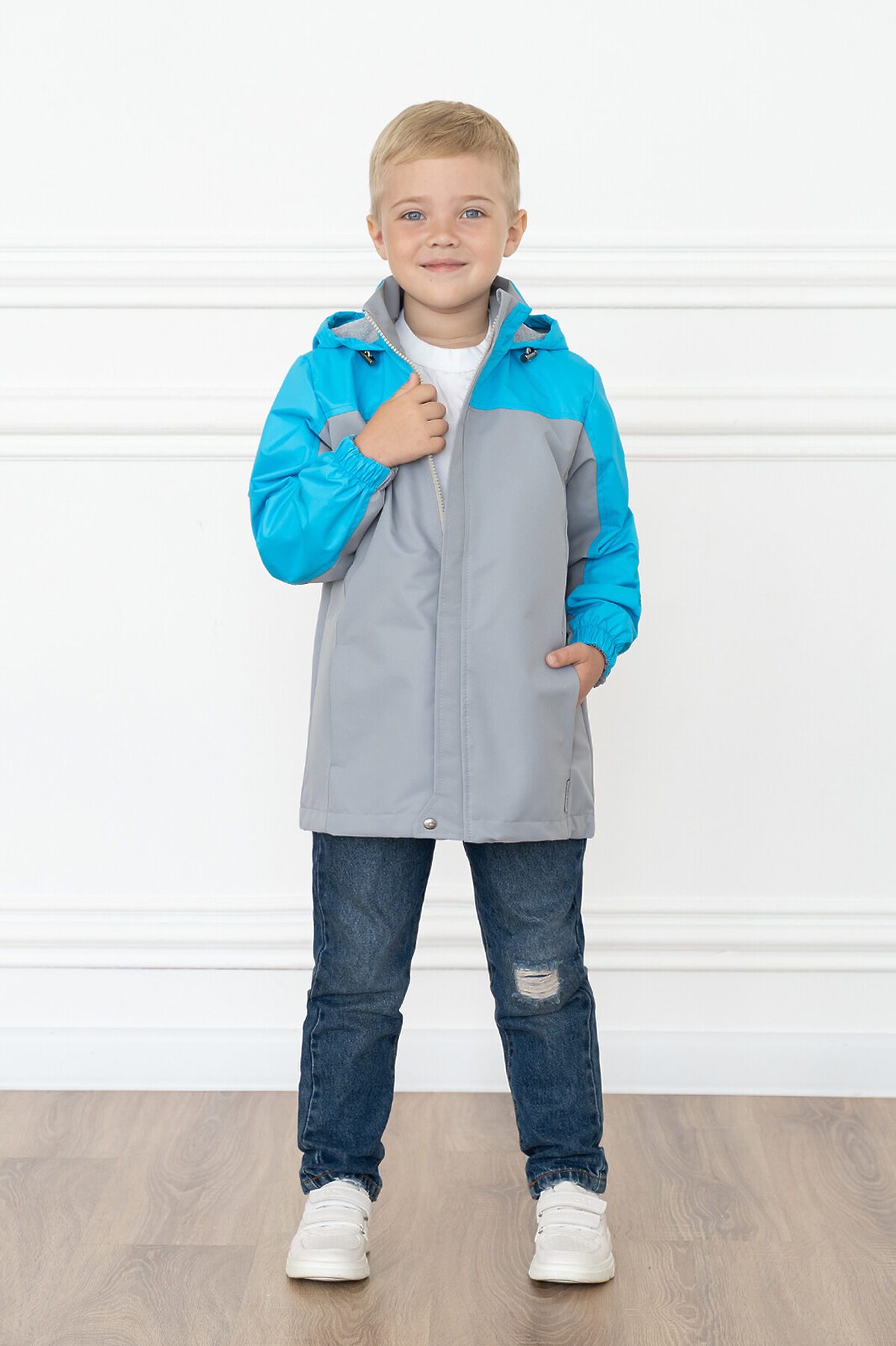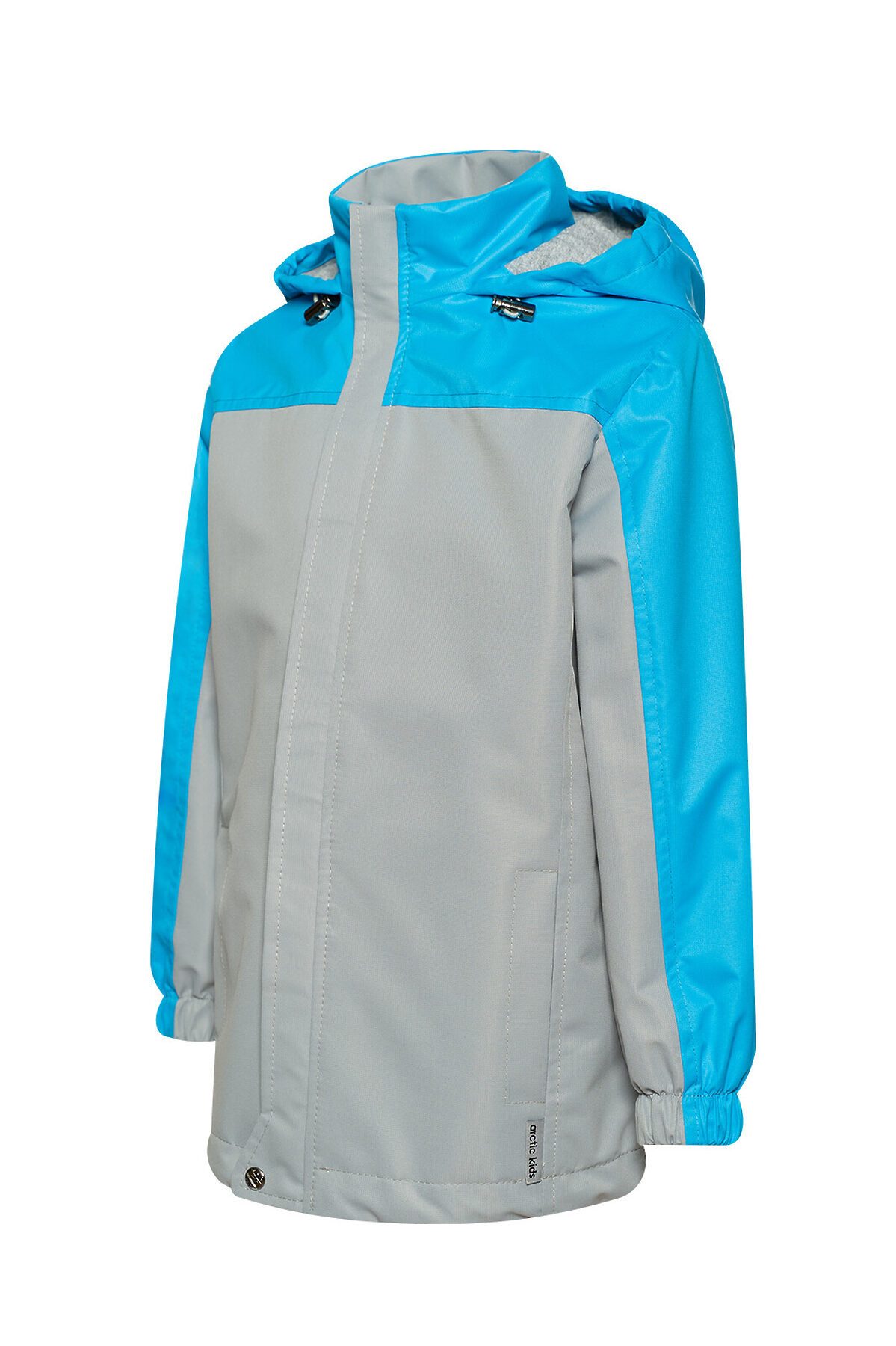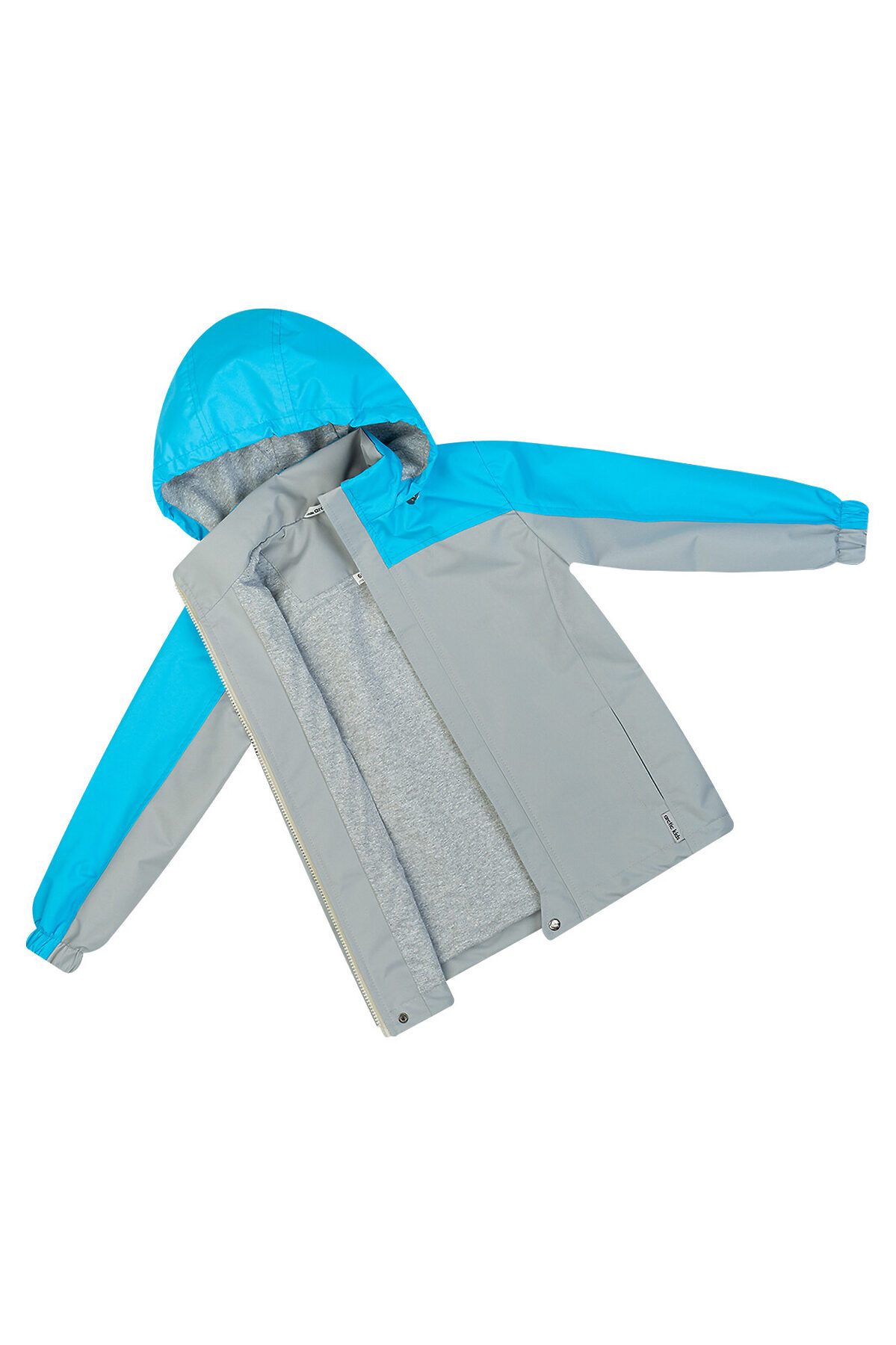 Детская мембранная ветровка свободного кроя двухцветная. Несъемный капюшон, который регулируется по размеру утяжкой с фиксаторами. Застегивается на молнию, сверху клапан для бегунка. Внешняя ветрозащитная планка с кнопкой по низу. Два кармана по бокам. По низу кулиска с шнуром и фиксаторами. Трикотажная подкладка из кулирки в капюшоне и основной части, в рукавах таффета. Манжеты на резинке. >