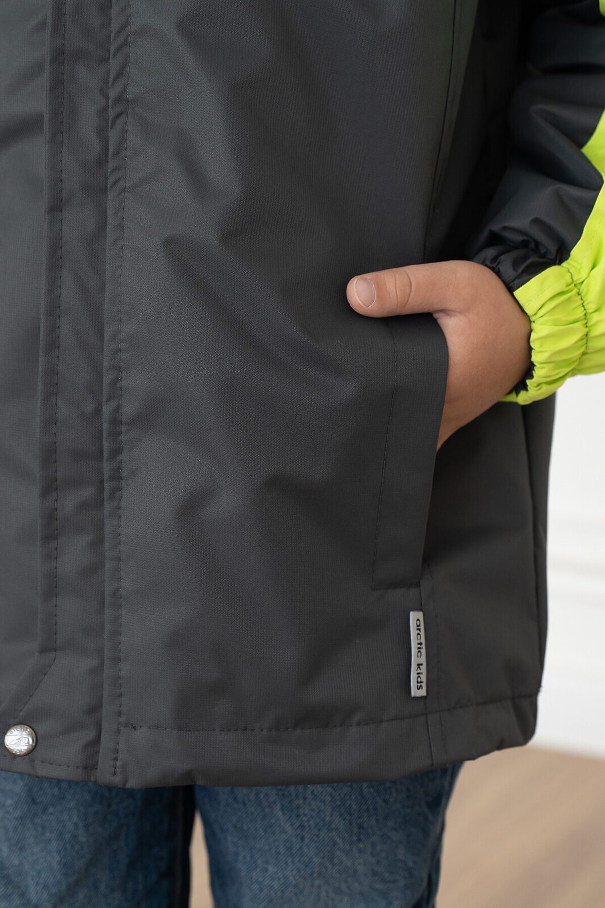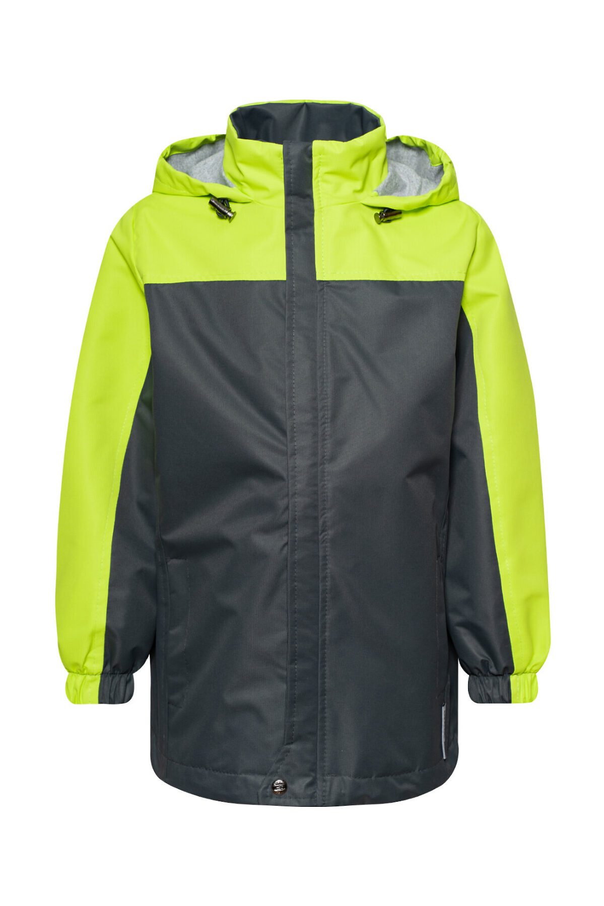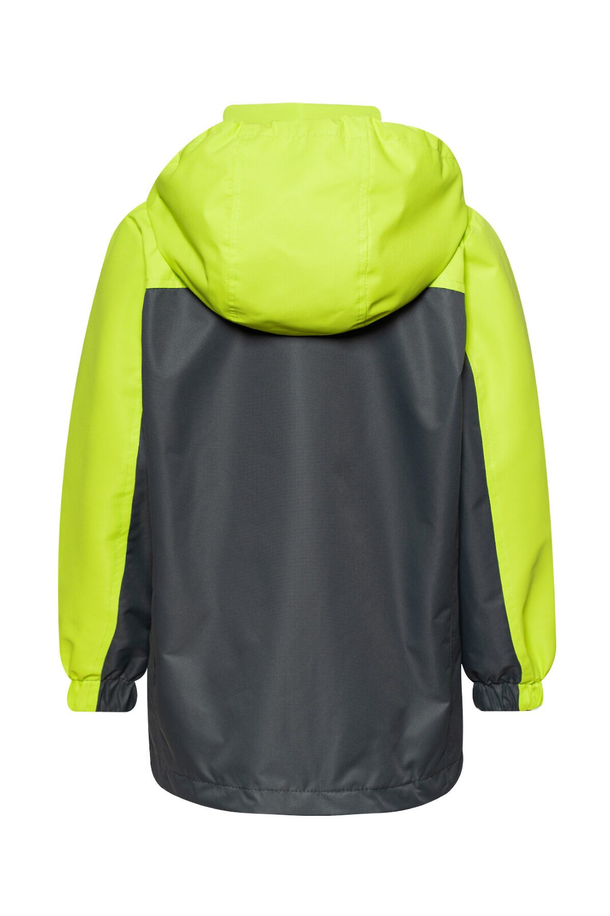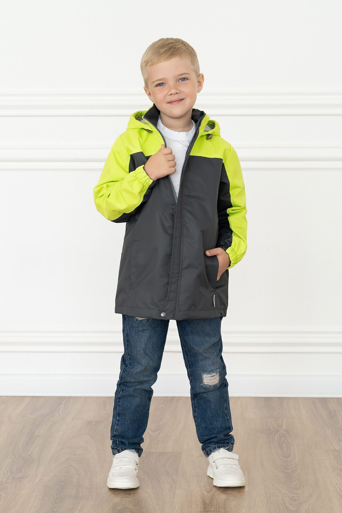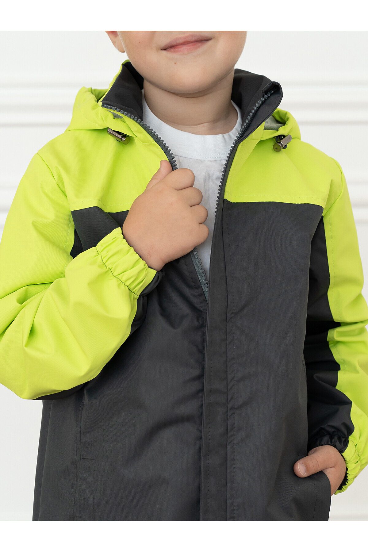 Детская мембранная ветровка свободного кроя двухцветная. Несъемный капюшон, который регулируется по размеру утяжкой с фиксаторами. Застегивается на молнию, сверху клапан для бегунка. Внешняя ветрозащитная планка с кнопкой по низу. Два кармана по бокам. По низу кулиска с шнуром и фиксаторами. Трикотажная подкладка из кулирки в капюшоне и основной части, в рукавах таффета. Манжеты на резинке. >