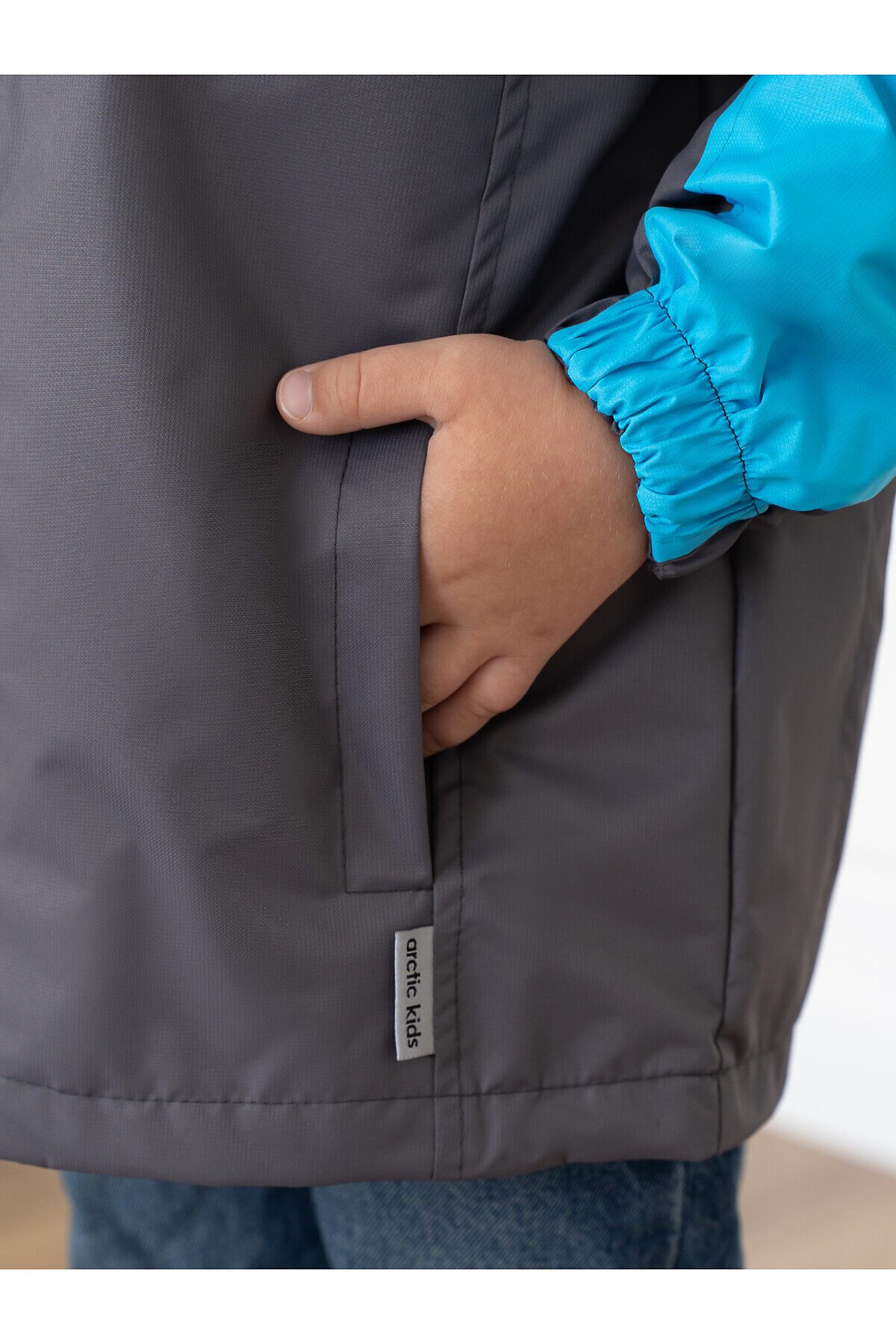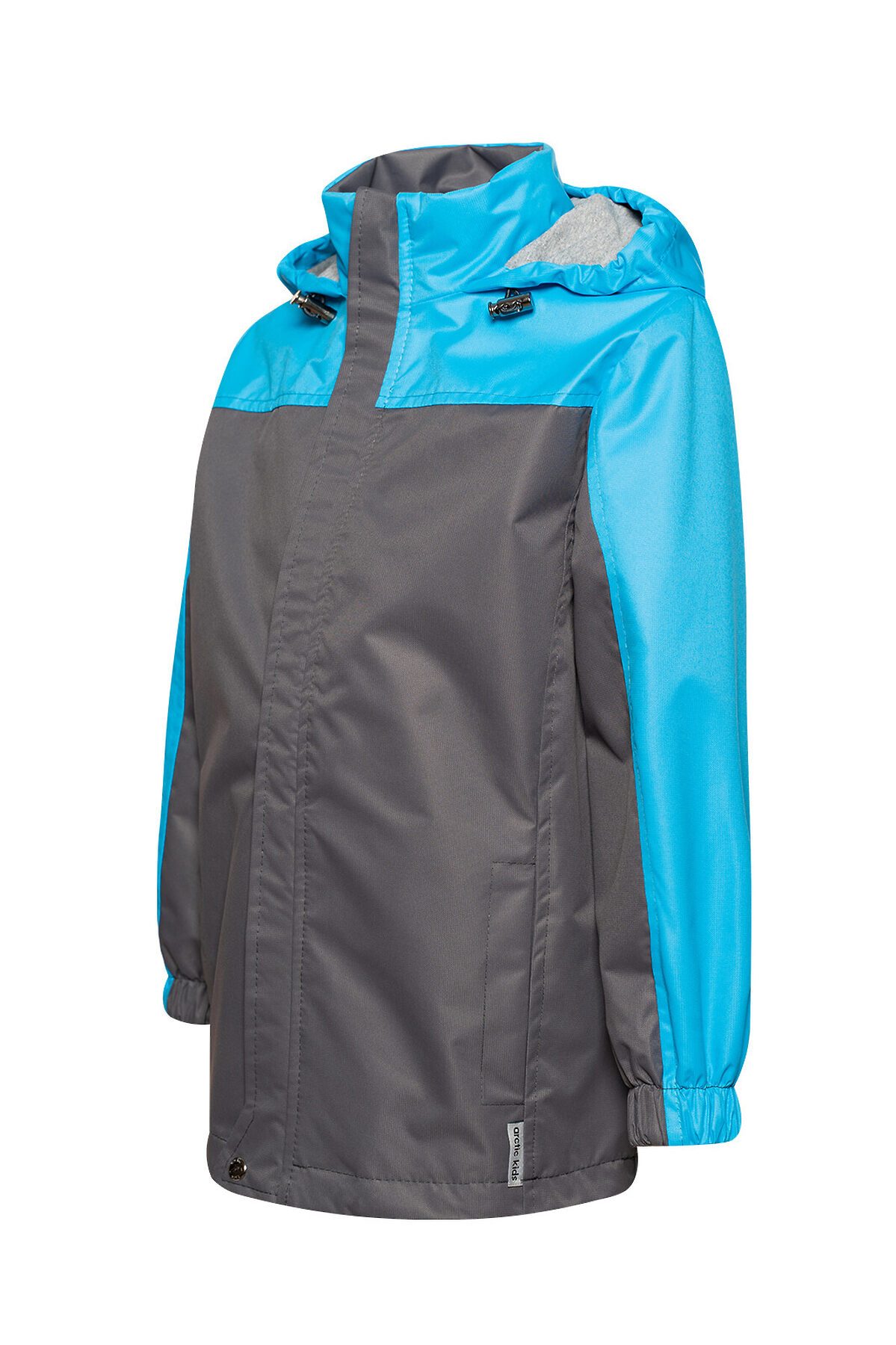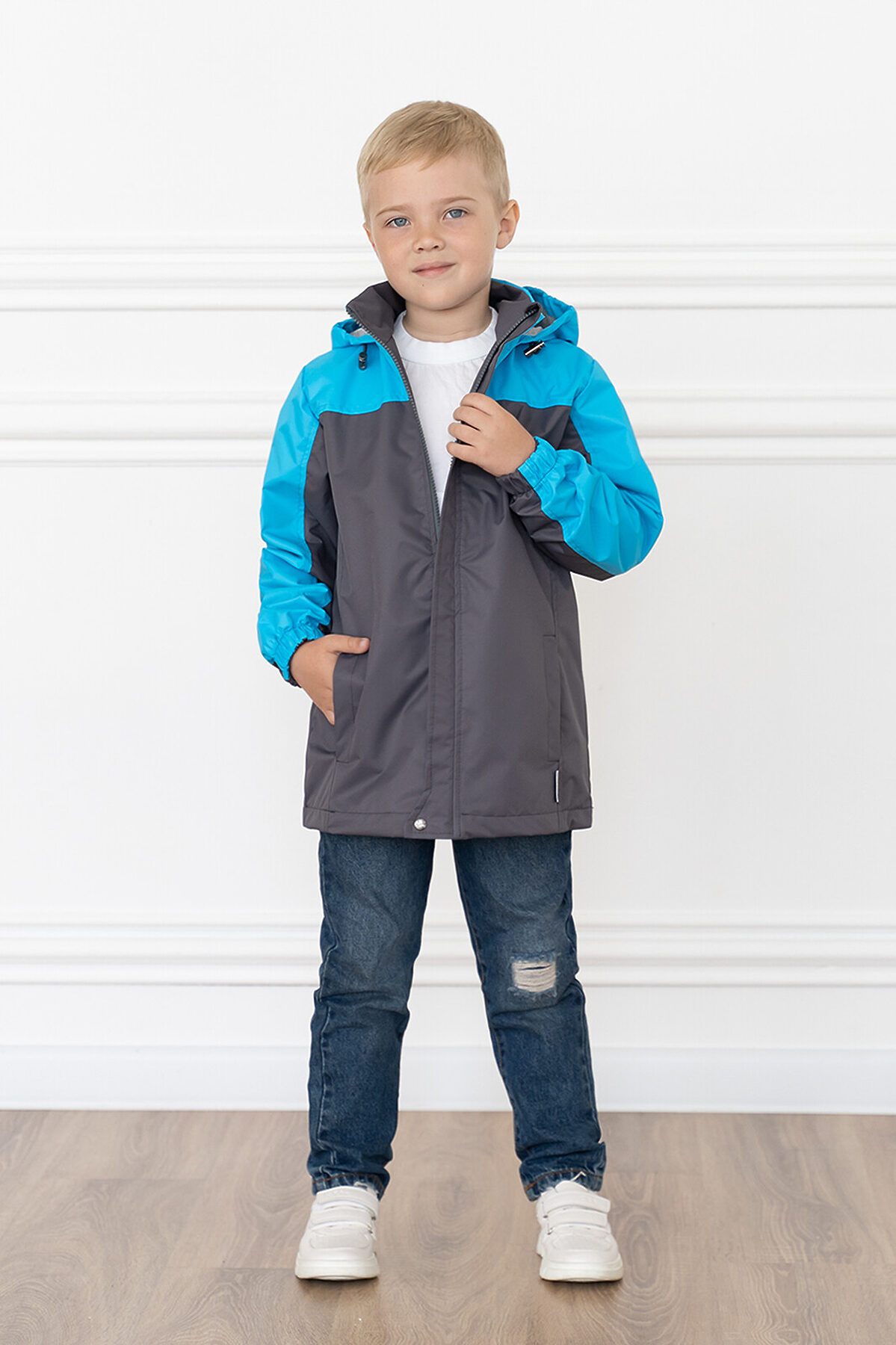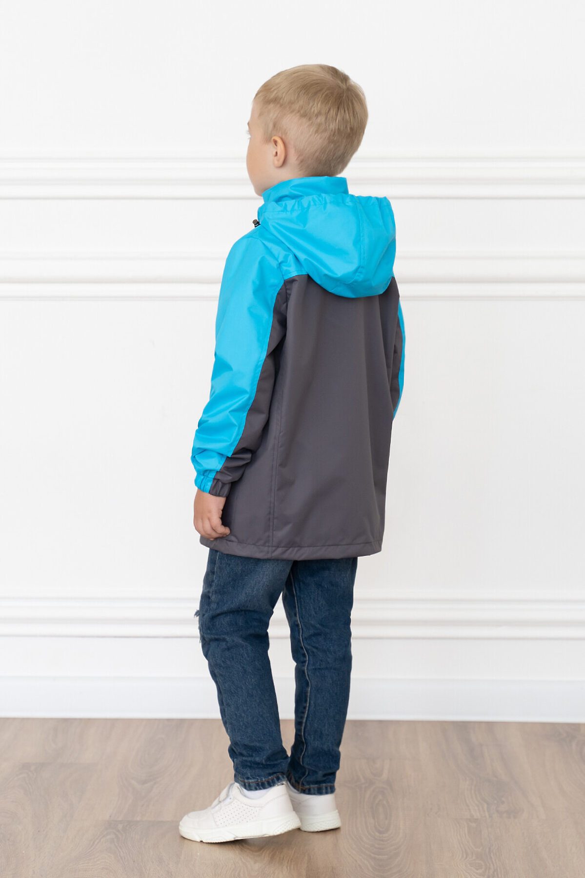Детская мембранная ветровка свободного кроя двухцветная. Несъемный капюшон, который регулируется по размеру утяжкой с фиксаторами. Застегивается на молнию, сверху клапан для бегунка. Внешняя ветрозащитная планка с кнопкой по низу. Два кармана по бокам. По низу кулиска с шнуром и фиксаторами. Трикотажная подкладка из кулирки в капюшоне и основной части, в рукавах таффета. Манжеты на резинке. >
