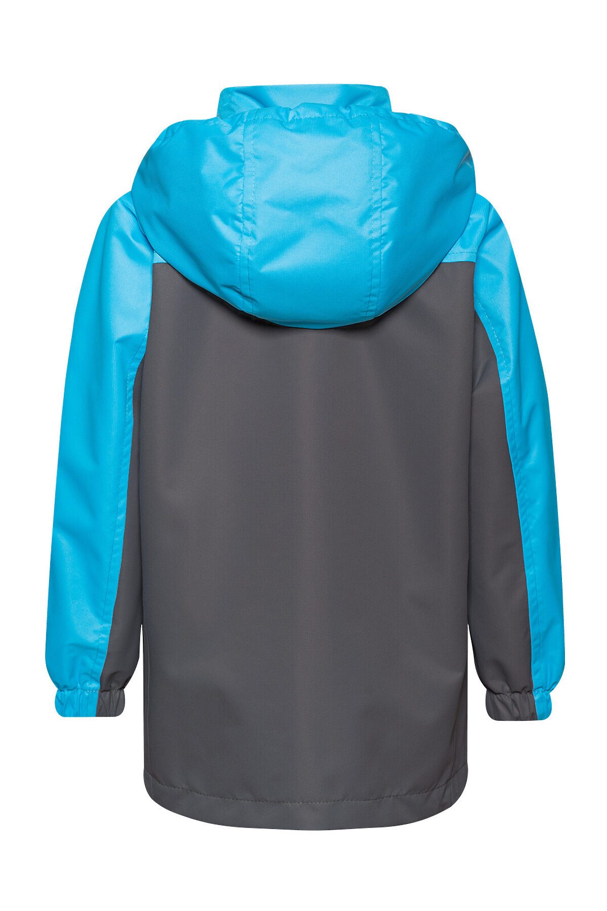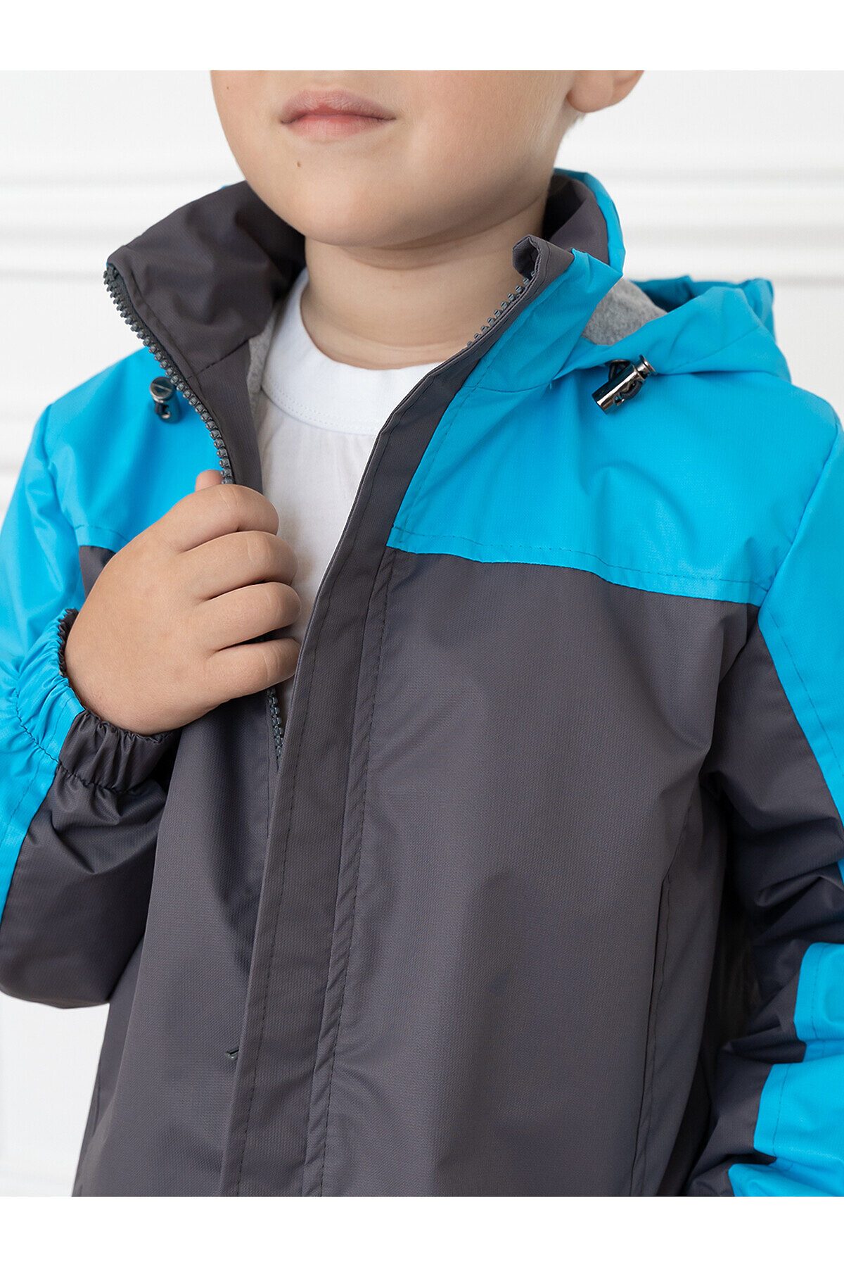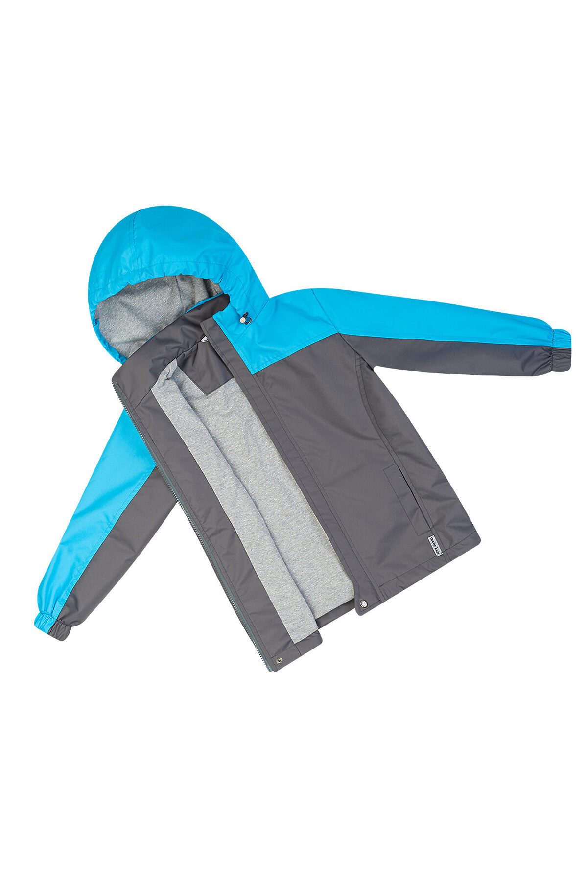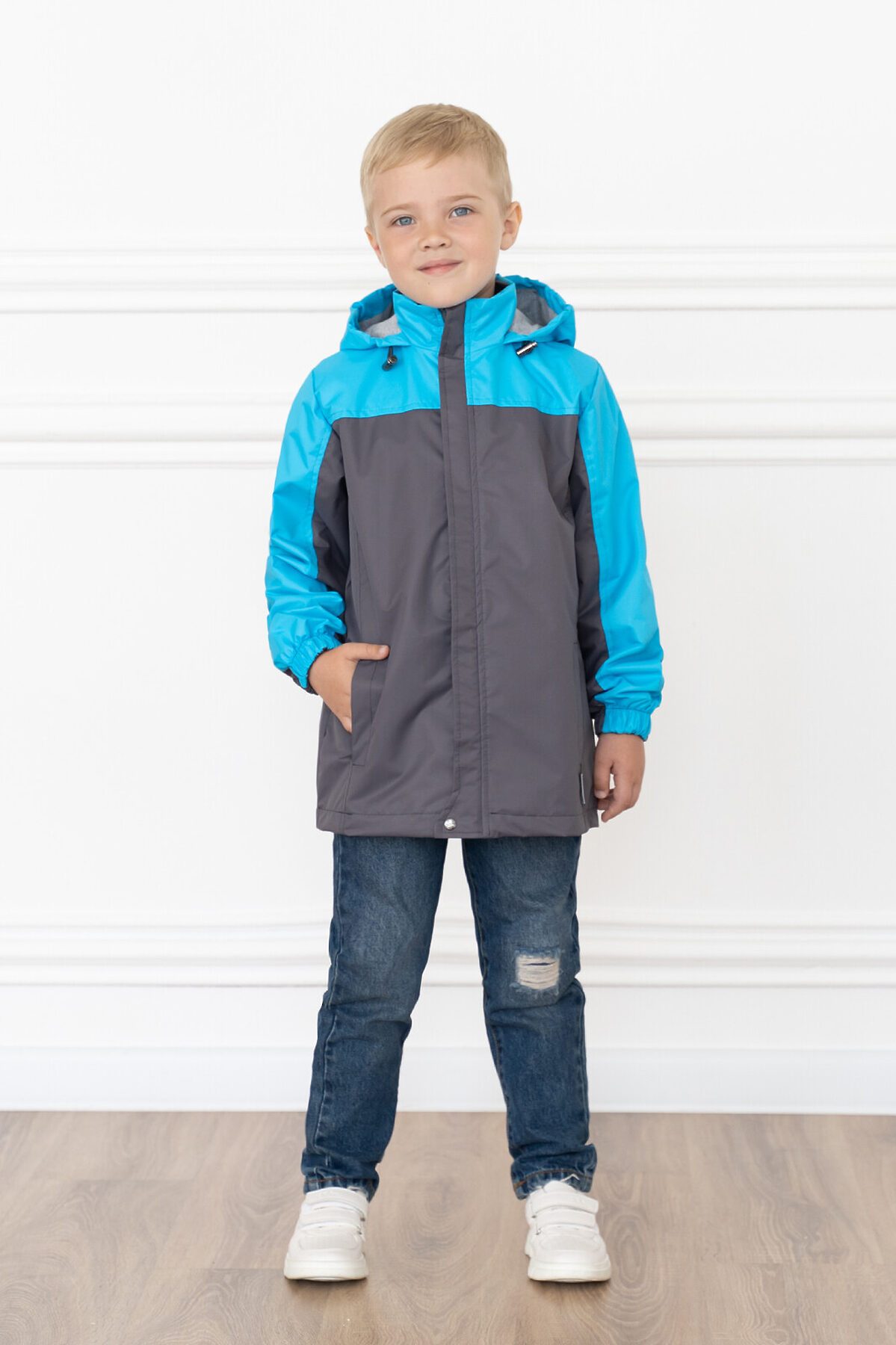 Детская мембранная ветровка свободного кроя двухцветная. Несъемный капюшон, который регулируется по размеру утяжкой с фиксаторами. Застегивается на молнию, сверху клапан для бегунка. Внешняя ветрозащитная планка с кнопкой по низу. Два кармана по бокам. По низу кулиска с шнуром и фиксаторами. Трикотажная подкладка из кулирки в капюшоне и основной части, в рукавах таффета. Манжеты на резинке. >