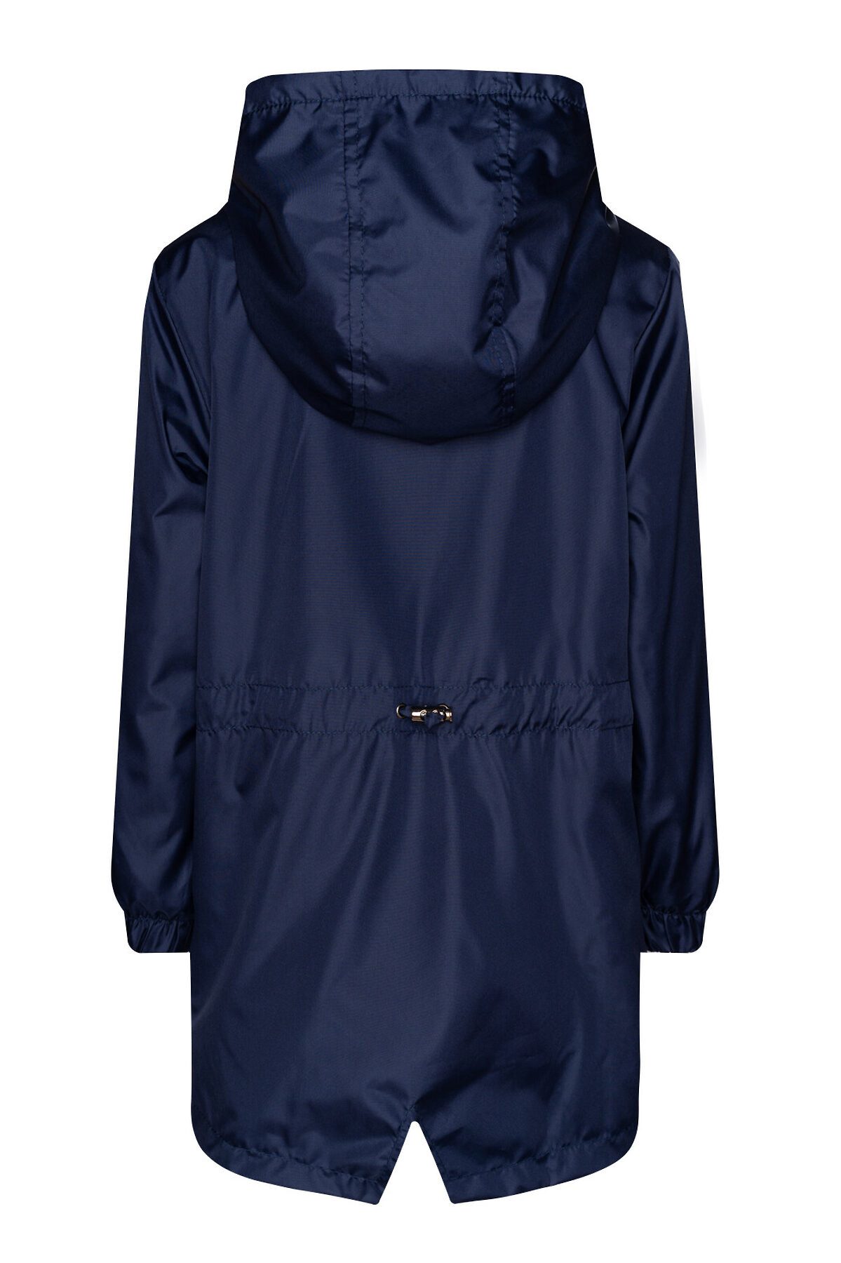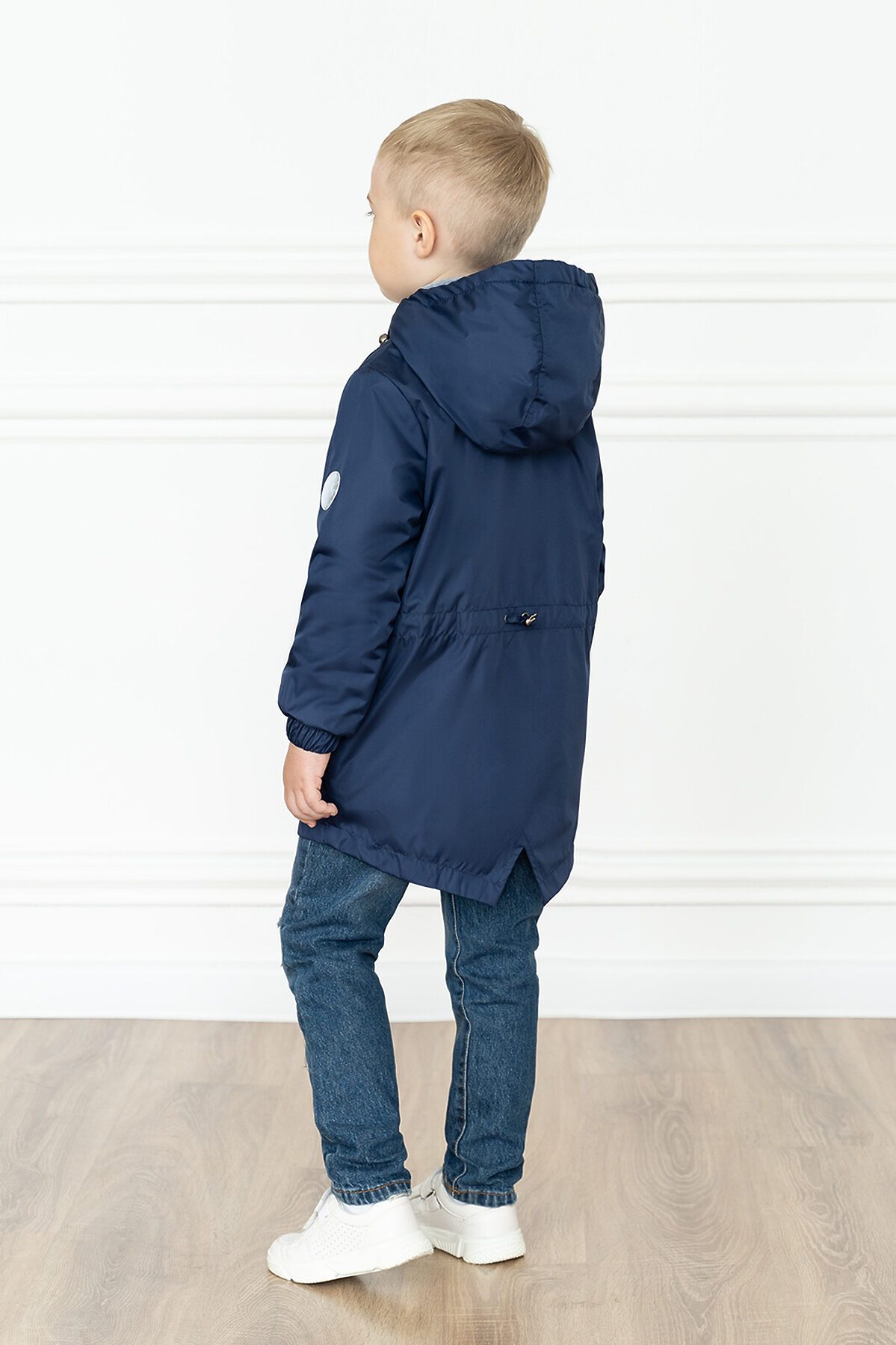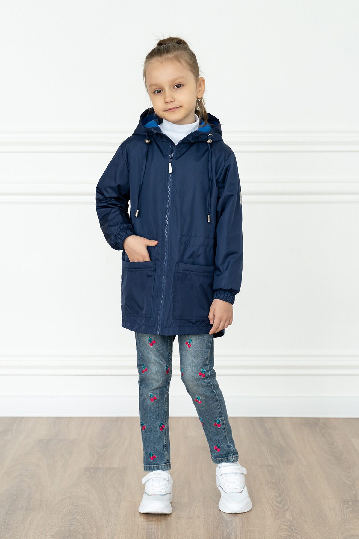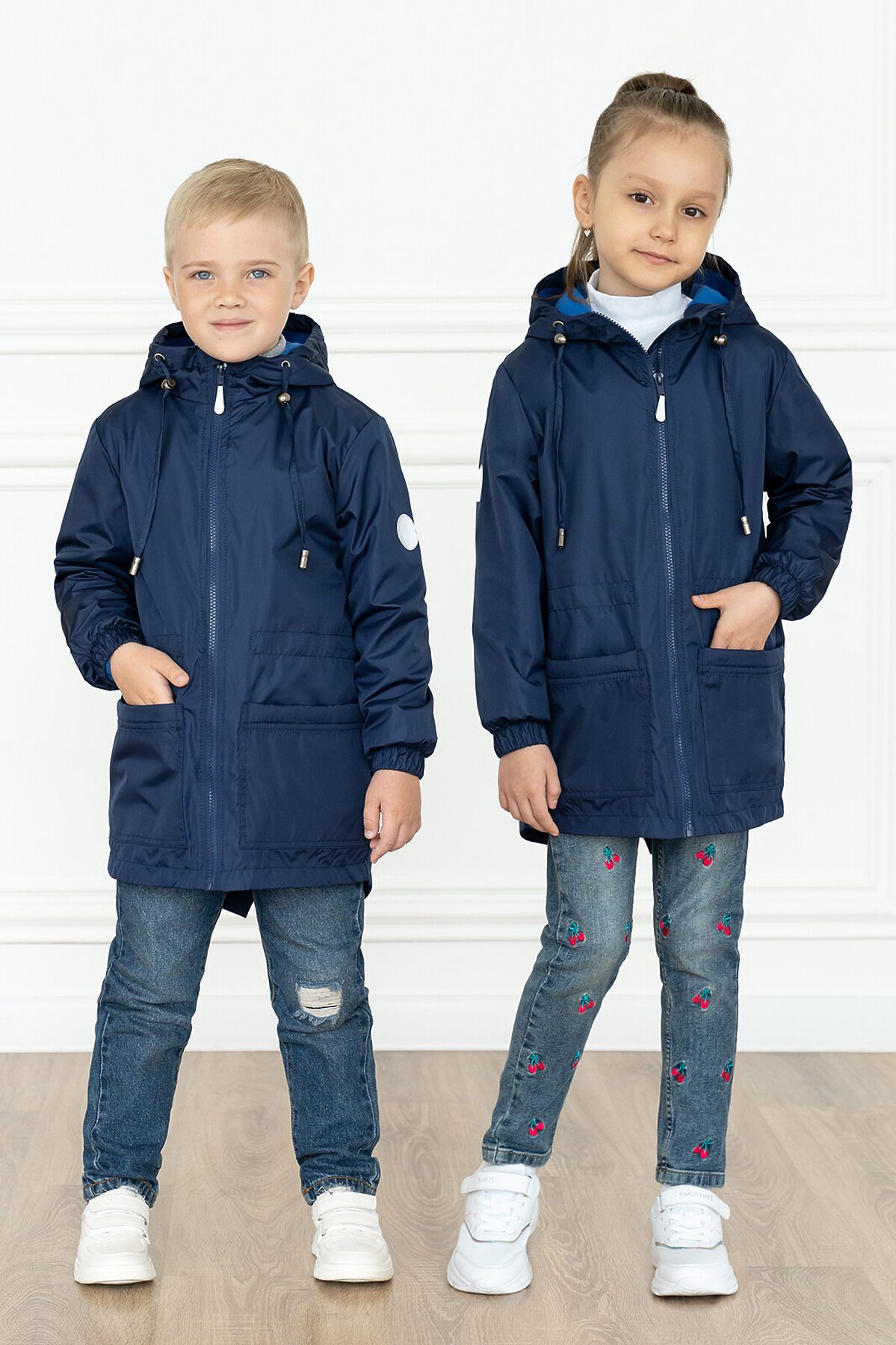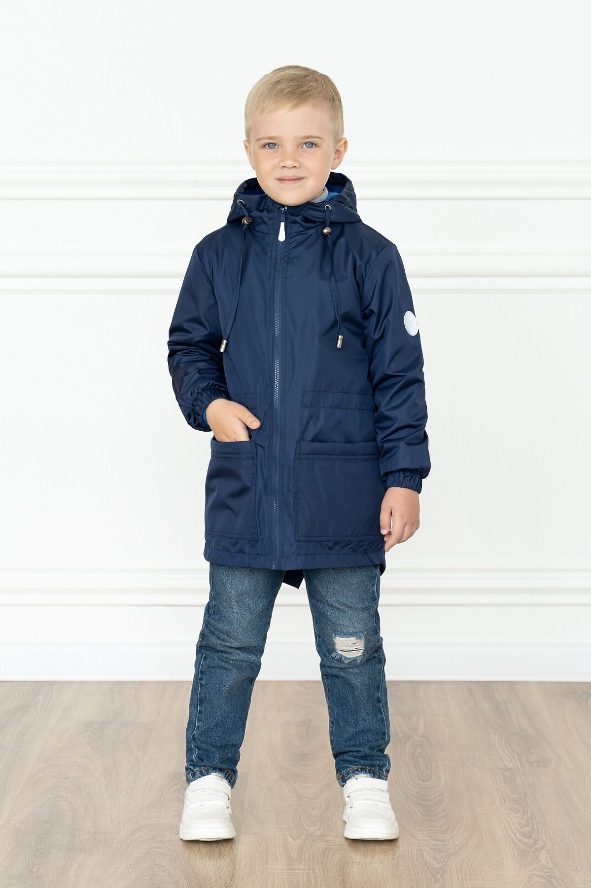 Детская ветровка свободного кроя на флисе для весны и лета синего цвета. Флисовая подкладка по всему изделию: в рукавах, и капюшоне. Застегивается на молнию. Высокий воротник, клапан для защиты от бегунка, внутренняя ветрозащитная планка. По талии кулиска для регулирования объема, фиксатор расположен на спине. Капюшон объемный, регулируется шнурком с фиксаторами. На рукаве светоотражающая нашивка, по низу резинка. >