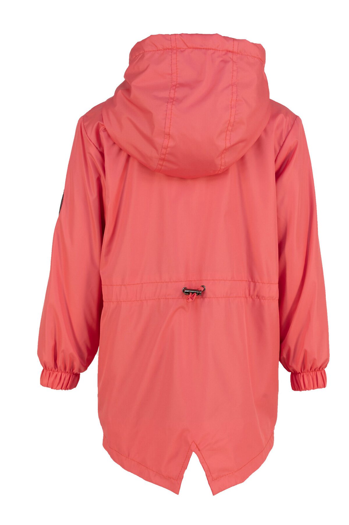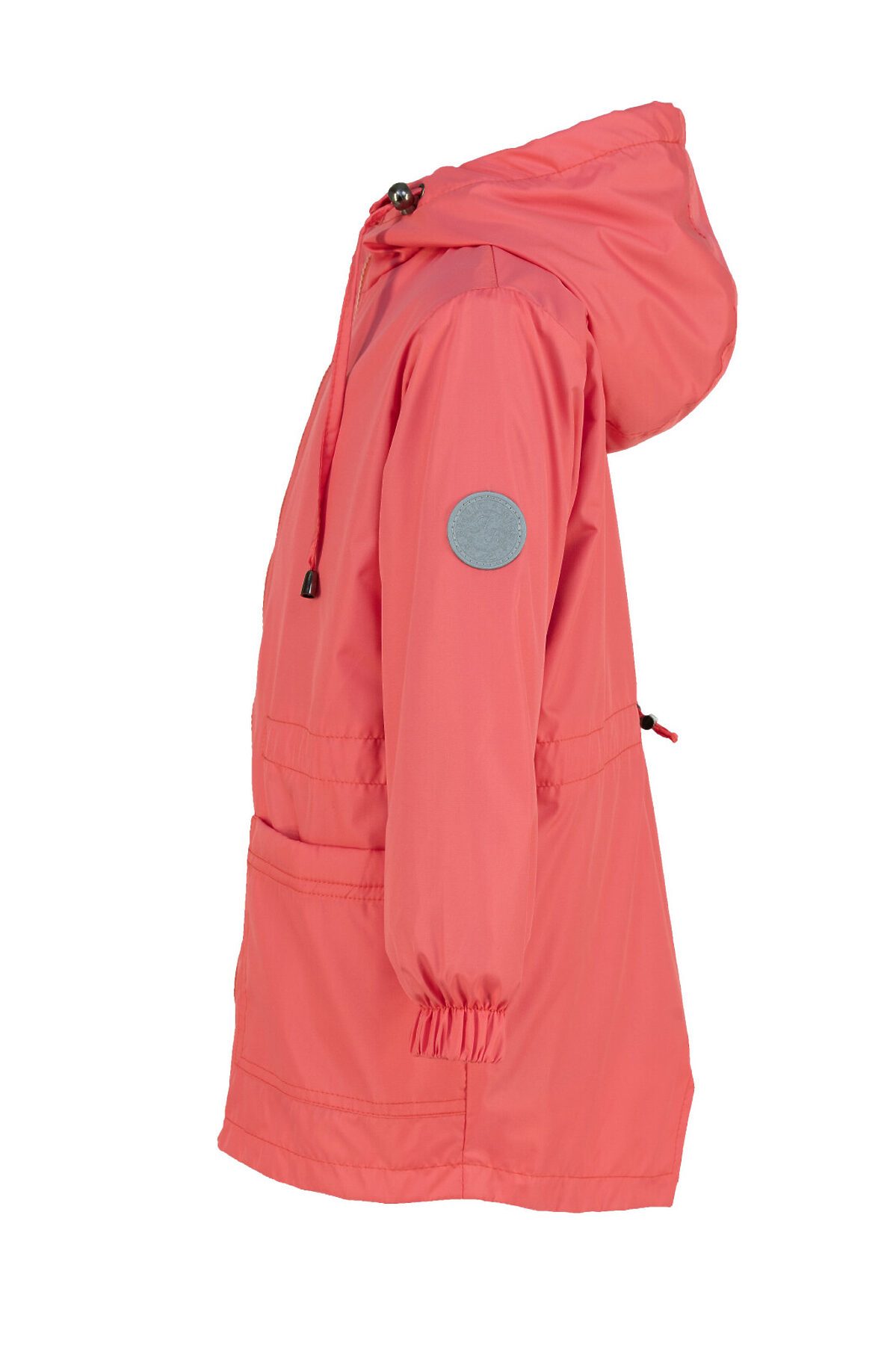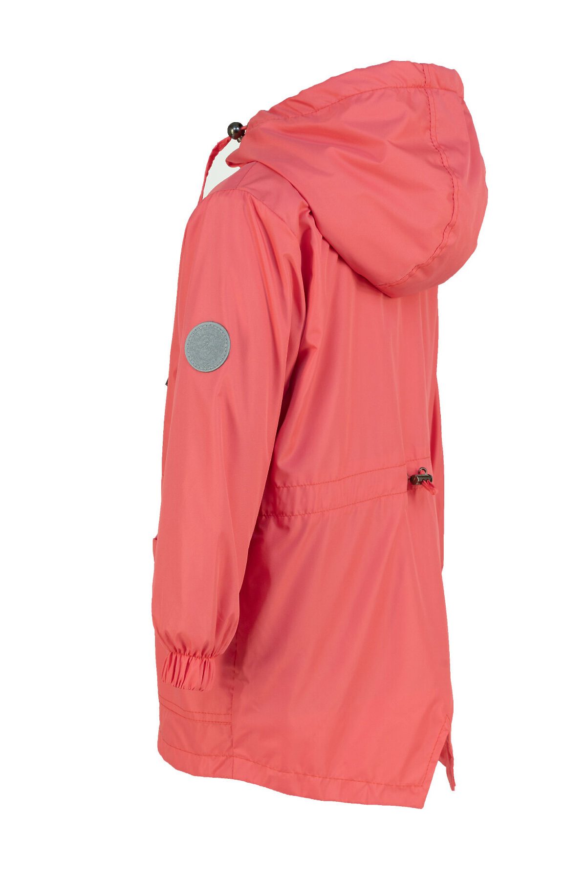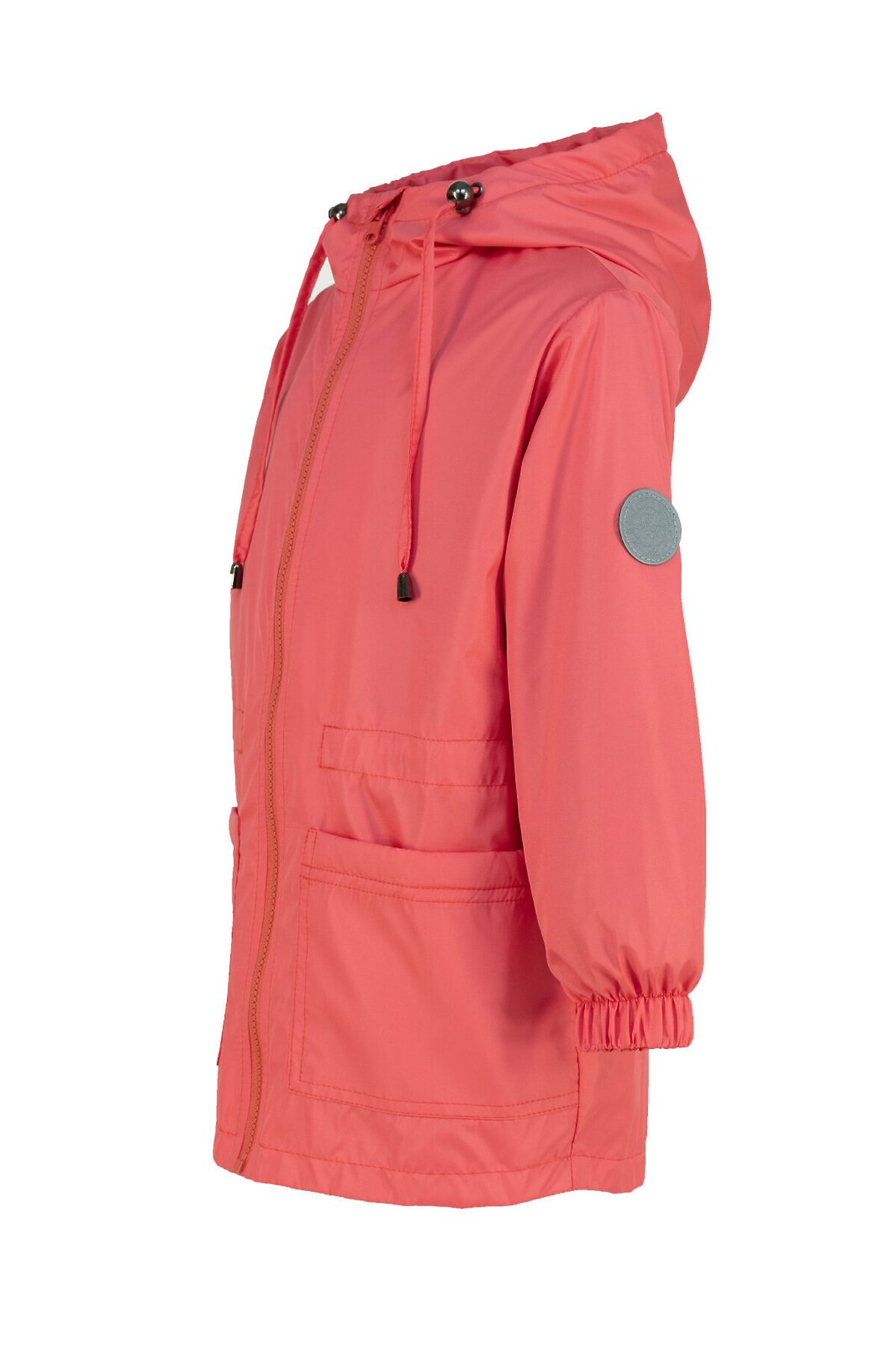 Детская ветровка свободного кроя на флисе для весны и лета кораллового цвета. Флисовая подкладка по всему изделию: в рукавах, и капюшоне. Застегивается на молнию. Высокий воротник, клапан для защиты от бегунка, внутренняя ветрозащитная планка. По талии кулиска для регулирования объема, фиксатор расположен на спине. Капюшон объемный, регулируется шнурком с фиксаторами. На рукаве светоотражающая нашивка, по низу резинка. >