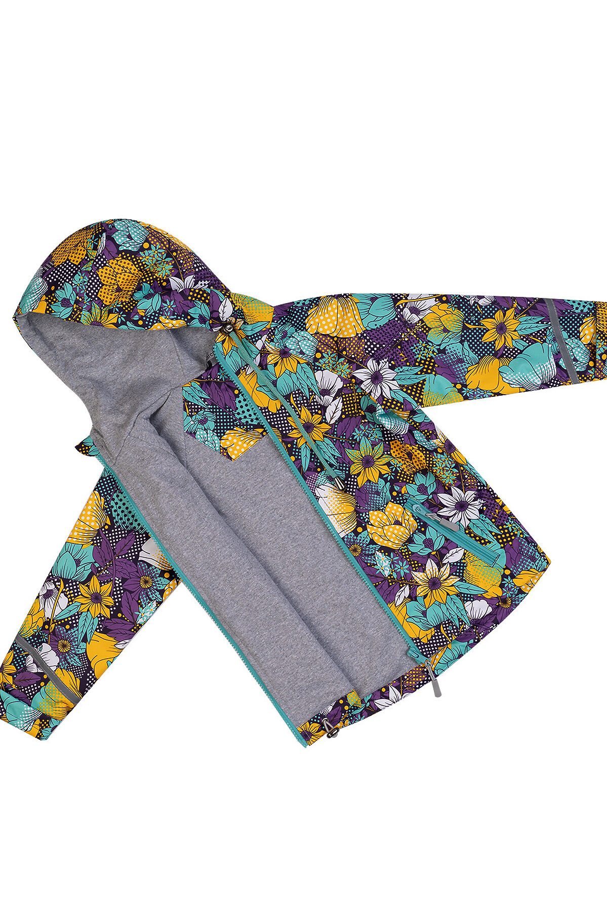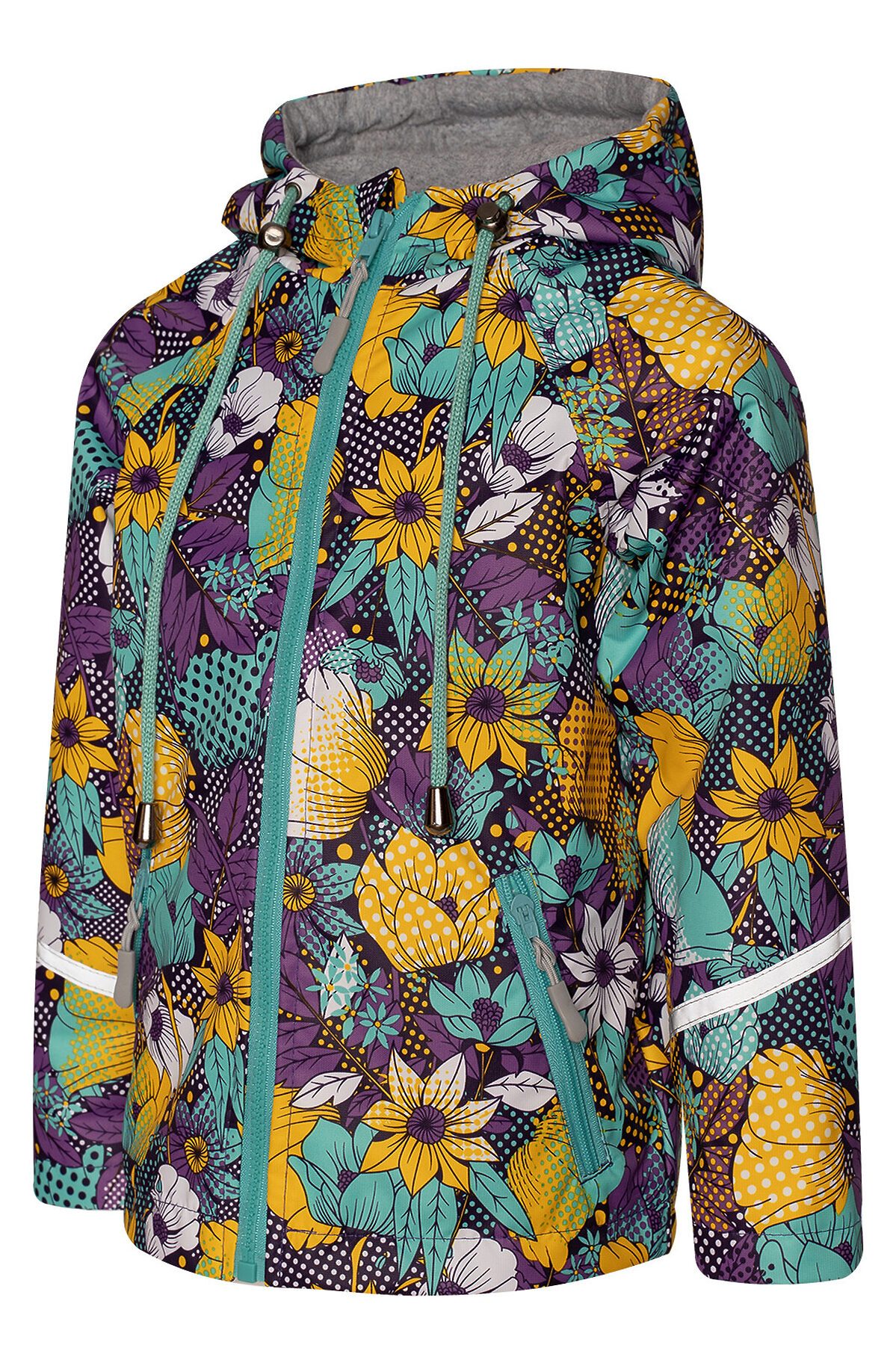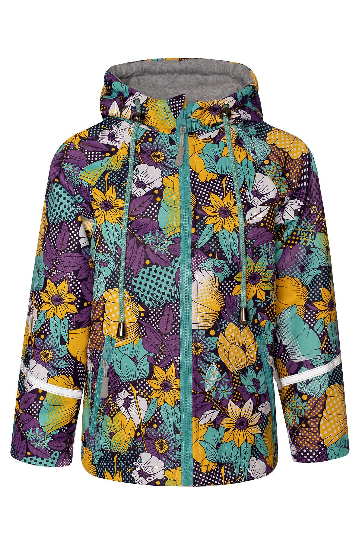 Детская ветровка с удлинённой спинкой из мембраны с принтом на молнии. На бегунке тканевый пуллер для удобства. Есть специальный защитный клапан для бегунка. Подкладка из хлопковой, мягкой дышащей кулирки. Капюшон несъёмный, регулируется шнурком с фиксаторами. Два косых врезных кармана на молнии по бокам. Рукава с отворотами и светоотражающими полосами. По низу вставлена резинка утяжка, которая регулируется фиксаторам >