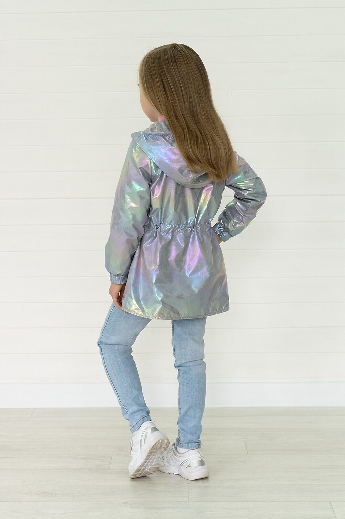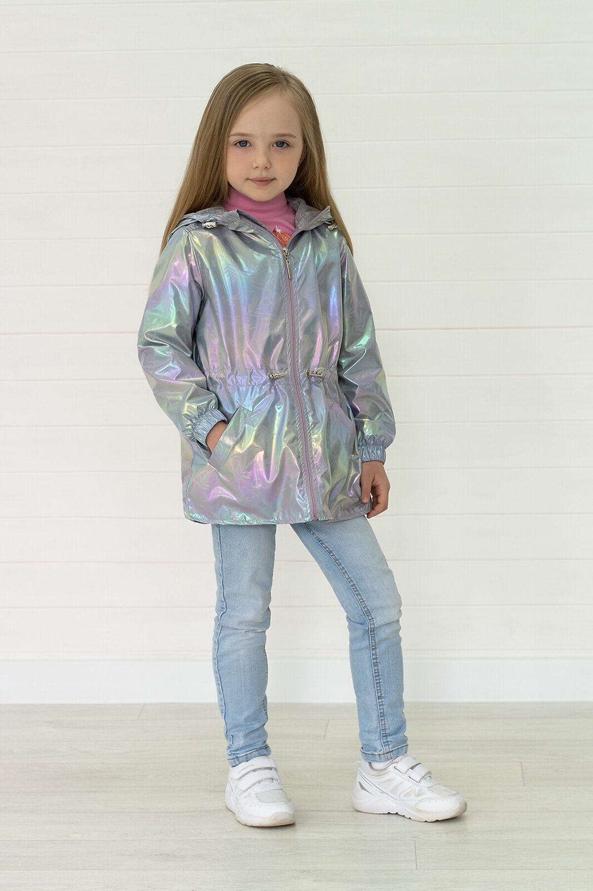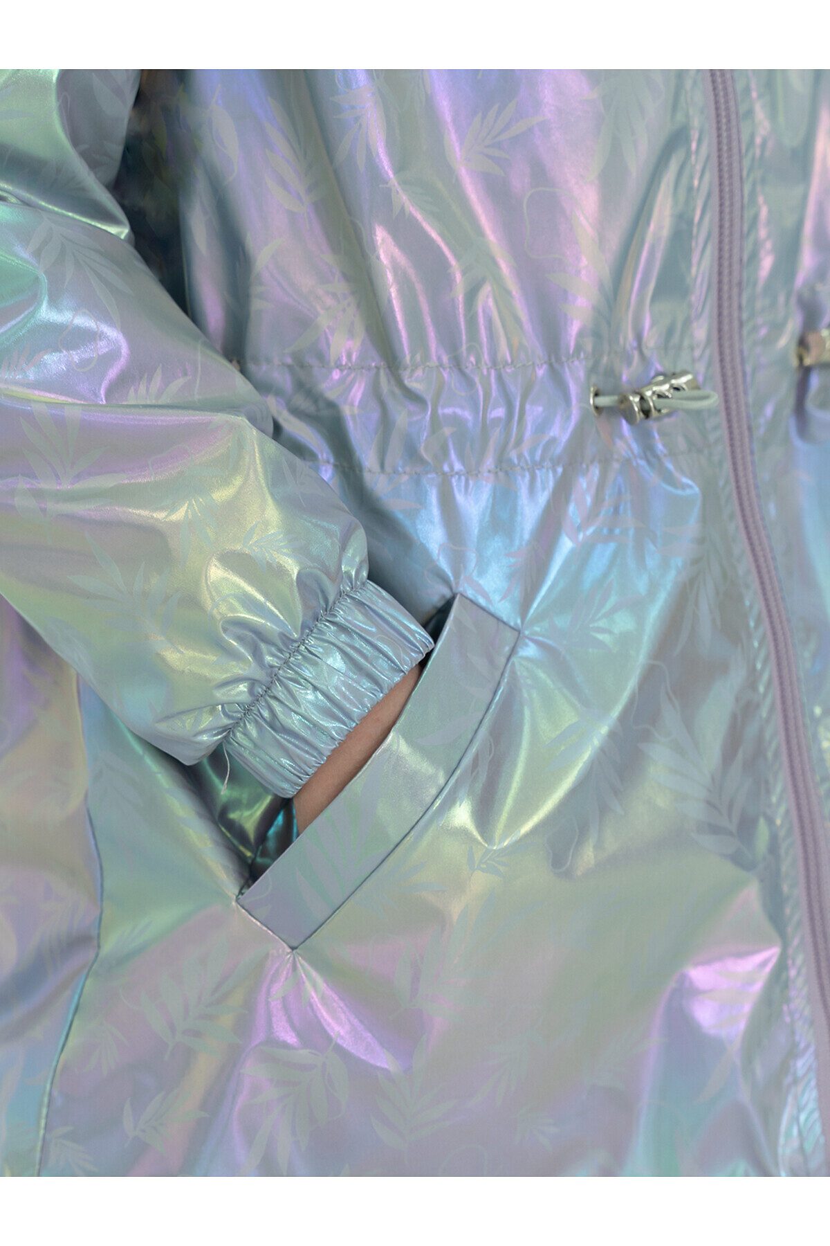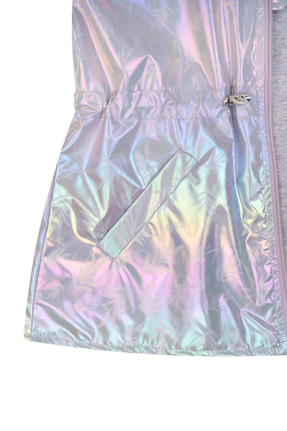 Верх ветровки изготовлен из 100 % полиэстера, а подкладка — из 100 % хлопка. Мембранная ткань верхнего слоя обеспечивает защиту от ветра и влаги, а мягкая хлопковая кулирка на внутренней стороне позволяет коже дышать. Эта ветровка идеально подходит для осени, весны и лета. Свободный крой, удобна для прогулок на свежем воздухе. Особенности модели включают несъемный капюшон, низ рукавов на резинке, застёжку на молнию, регулируемую утяжку на капюшоне и талии, а также косые врезные карманы на передней стороне. Ветровка сшита из мембраны серого цвета с голографическим эффектом. >
