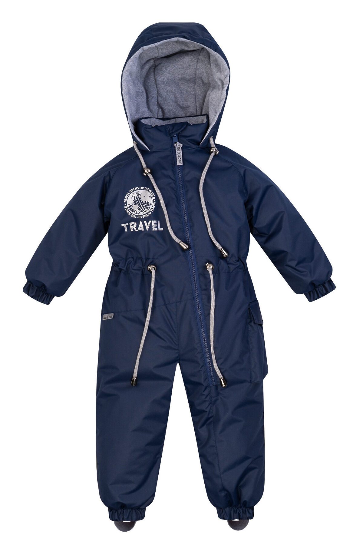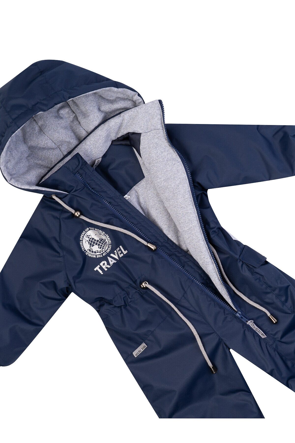 В непостоянную погоду межсезонья ребёнку будет комфортно в удобном комбинезоне – мембранный верх не пропустит внутрь ветер и влагу, а лёгкий утеплитель выдержит морозы до -12 градусов. Основной подклад выполнен из хлопка, лишь для нижней части рукавов и штанин использована таффета. На комбинезоне есть резинка на спине и утяжка в талии и в капюшоне, эластичные штрипки, косая молния, защитный клапан для бегунка, накладной карман на левой штанине. Модель синего цвета.>
