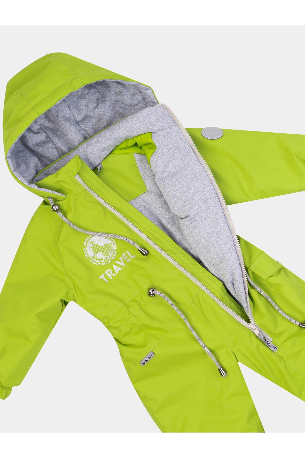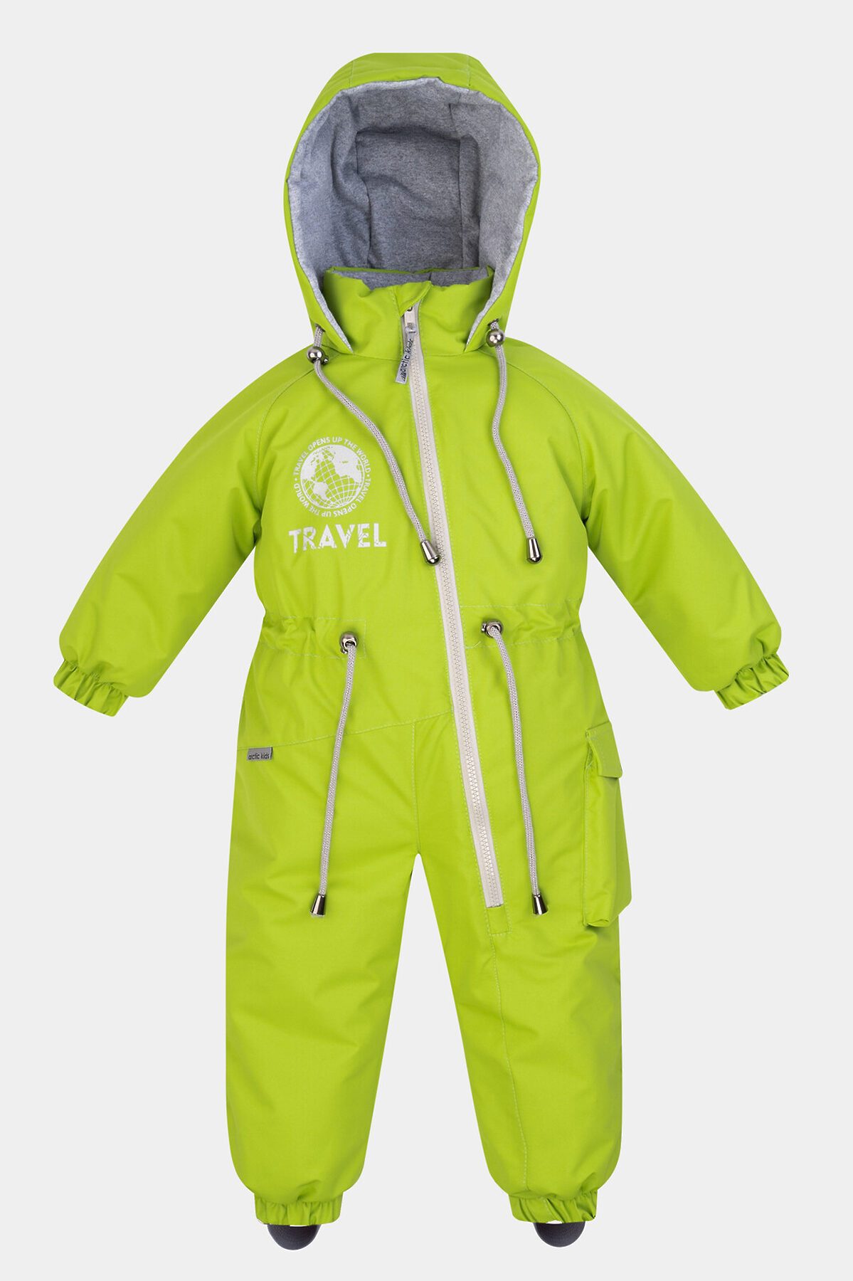 В непостоянную погоду межсезонья ребёнку будет комфортно в удобном комбинезоне – мембранный верх не пропустит внутрь ветер и влагу, а лёгкий утеплитель выдержит морозы до -12 градусов. Основной подклад выполнен из хлопка, лишь для нижней части рукавов и штанин использована таффета. На комбинезоне есть резинка на спине и утяжка в талии и в капюшоне, эластичные штрипки, косая молния, защитный клапан для бегунка, накладной карман на левой штанине. Выполнен в однотонном салатовом цвете.>
