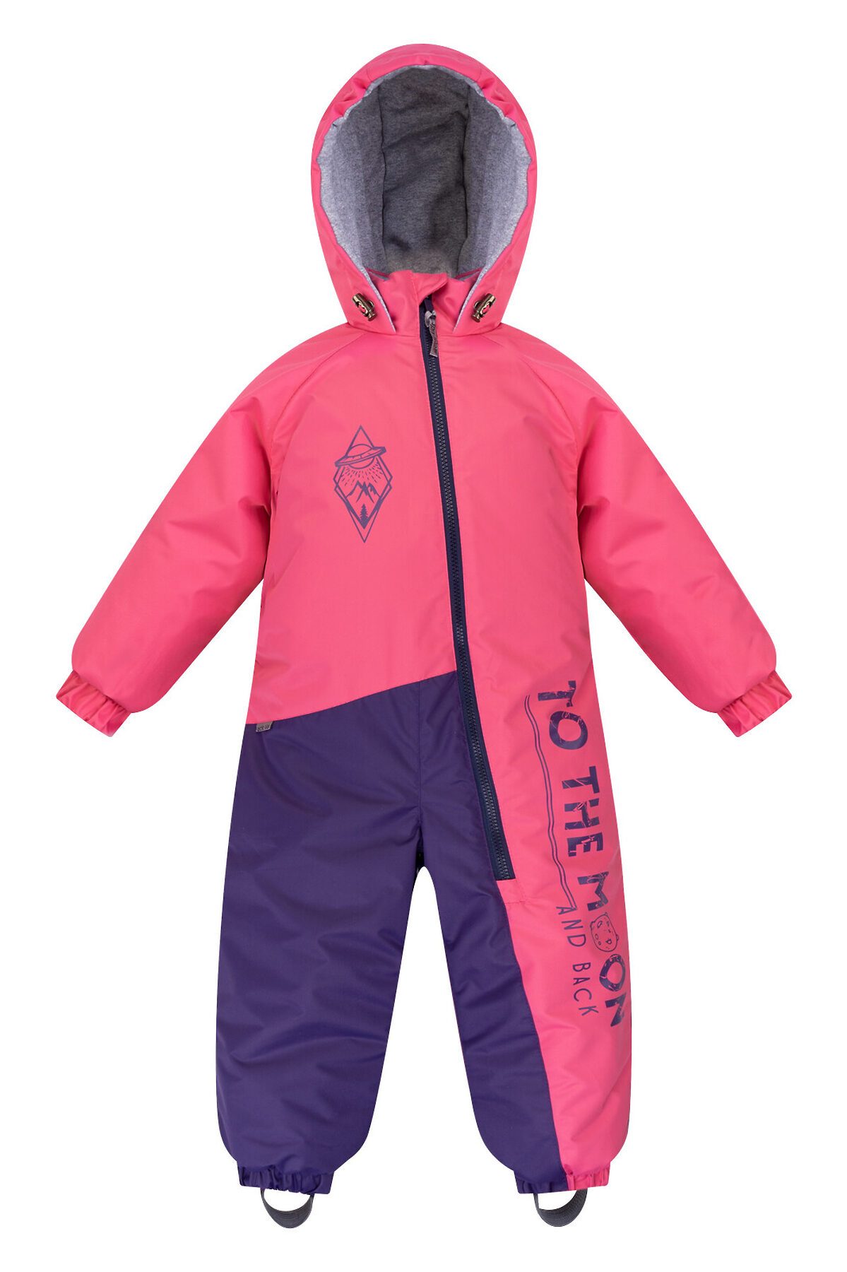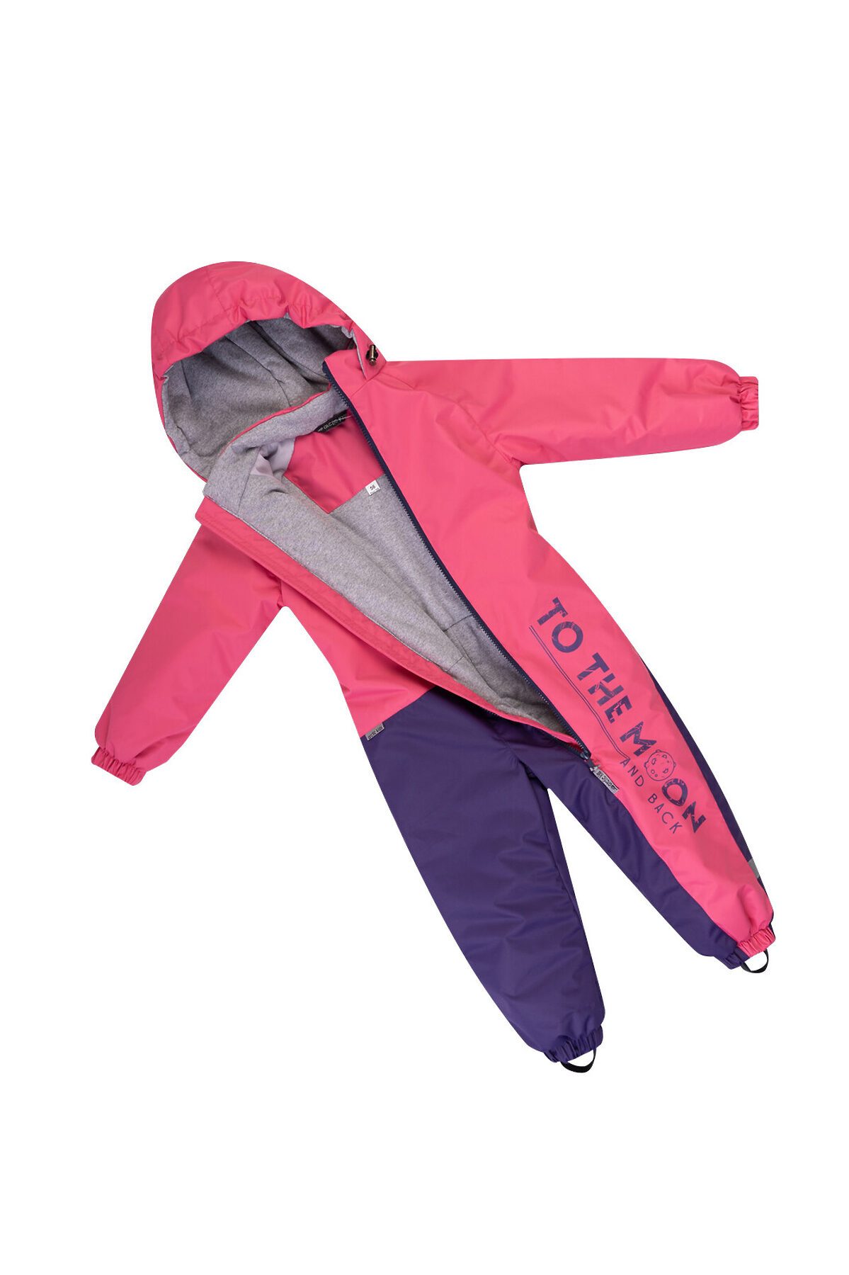 Детский демисезонный мембранный комбинезон розового цвета в комбинации с черничным. Ассиметричная молния застежка, которая уходит в ножку, внутренняя ветрозащитная планка, клапан для защиты от бегунка. Утеплитель тинсулейн 100 гр. Хлопковый подклад в основной части комбинезона в ножках и рукавах таффета. Манжеты на резинке. По низу штанин эластичные штрипки для надежной фиксации. По талии на спинке резинка для лучшего прилегания комбинезона к телу. Сверху небольшой рисунок, по ножке текстовый принт.>