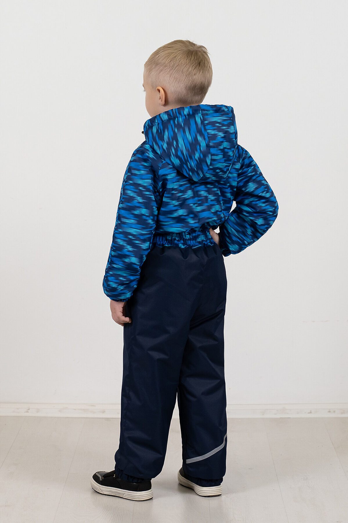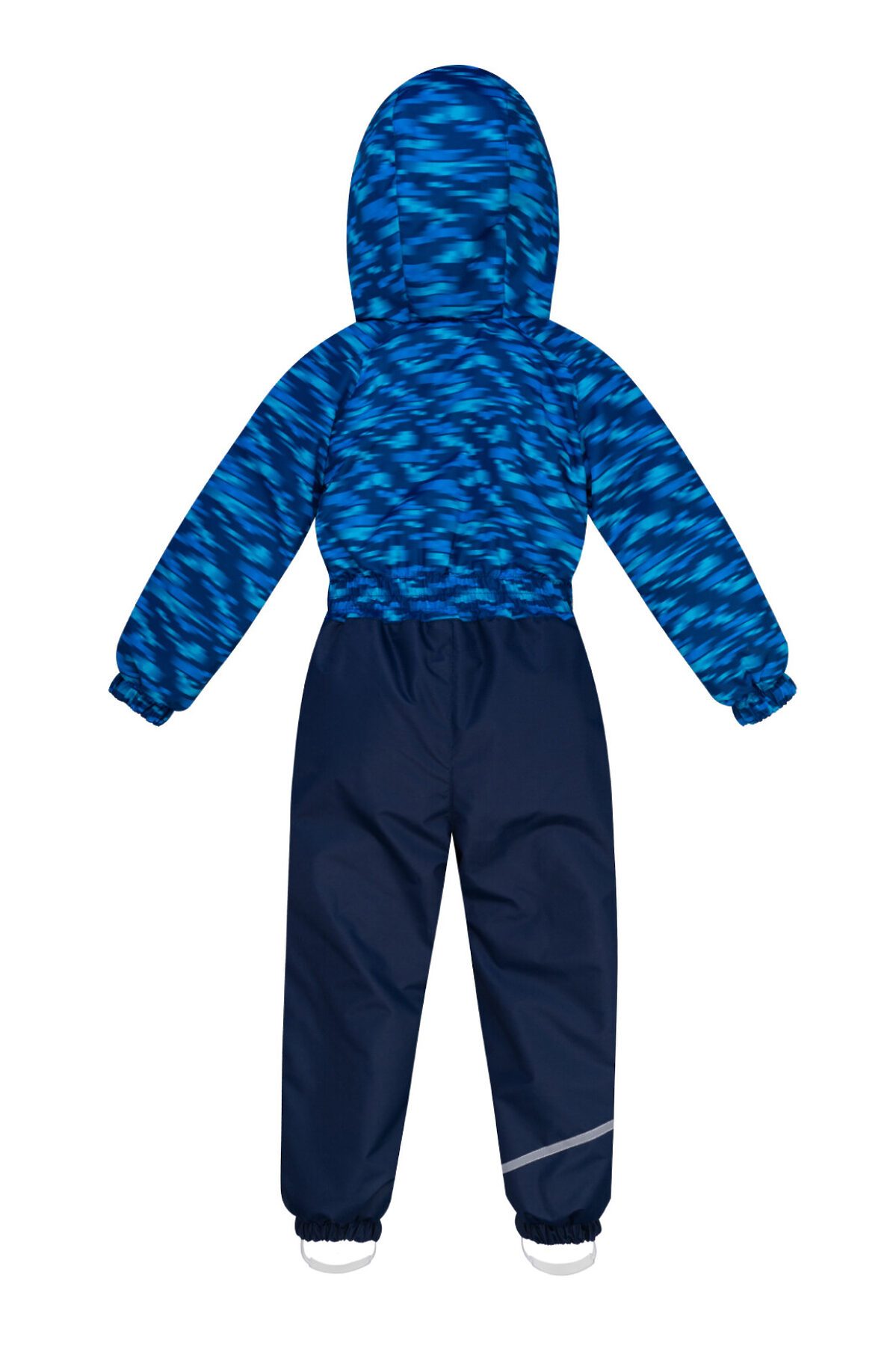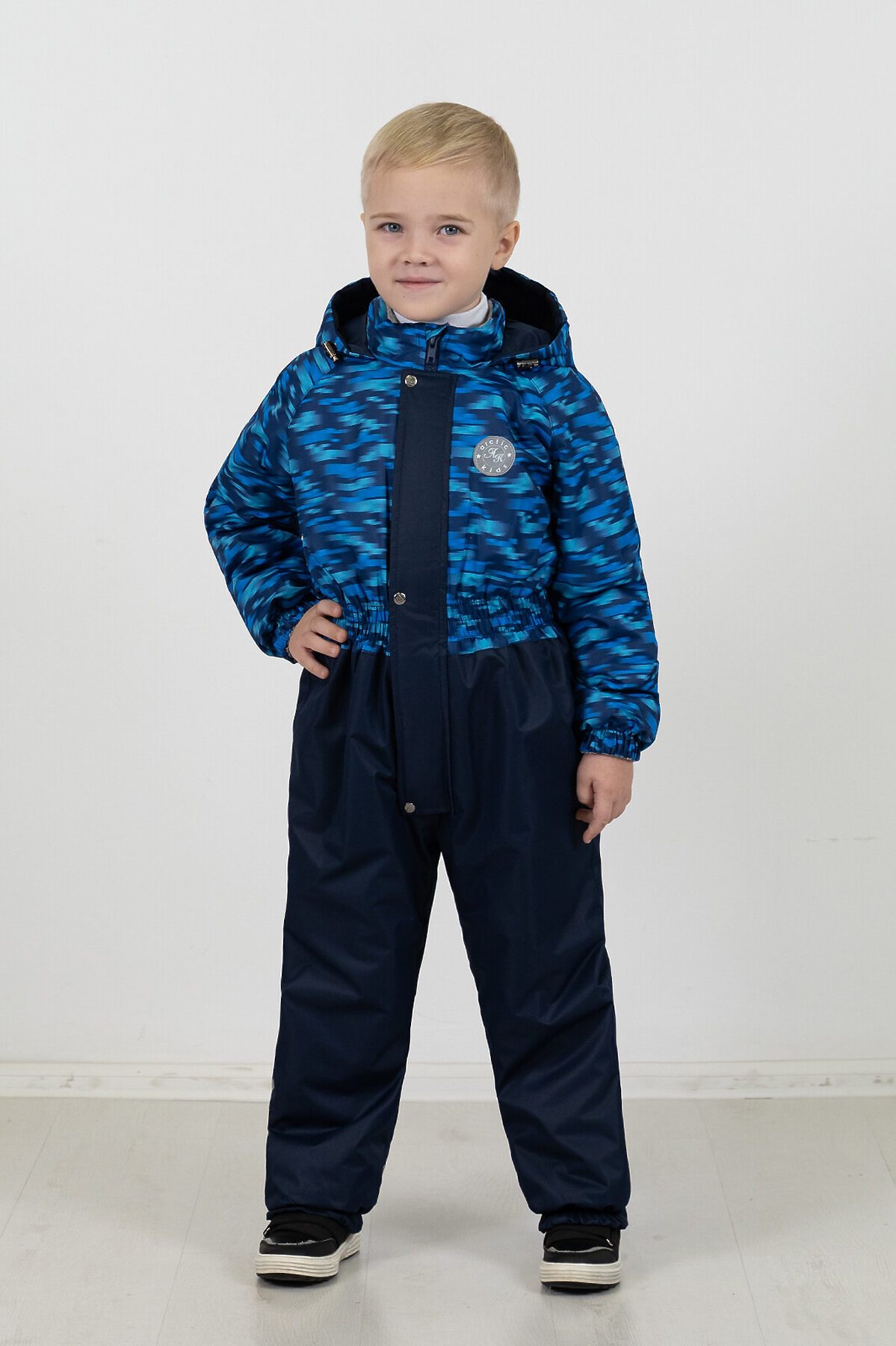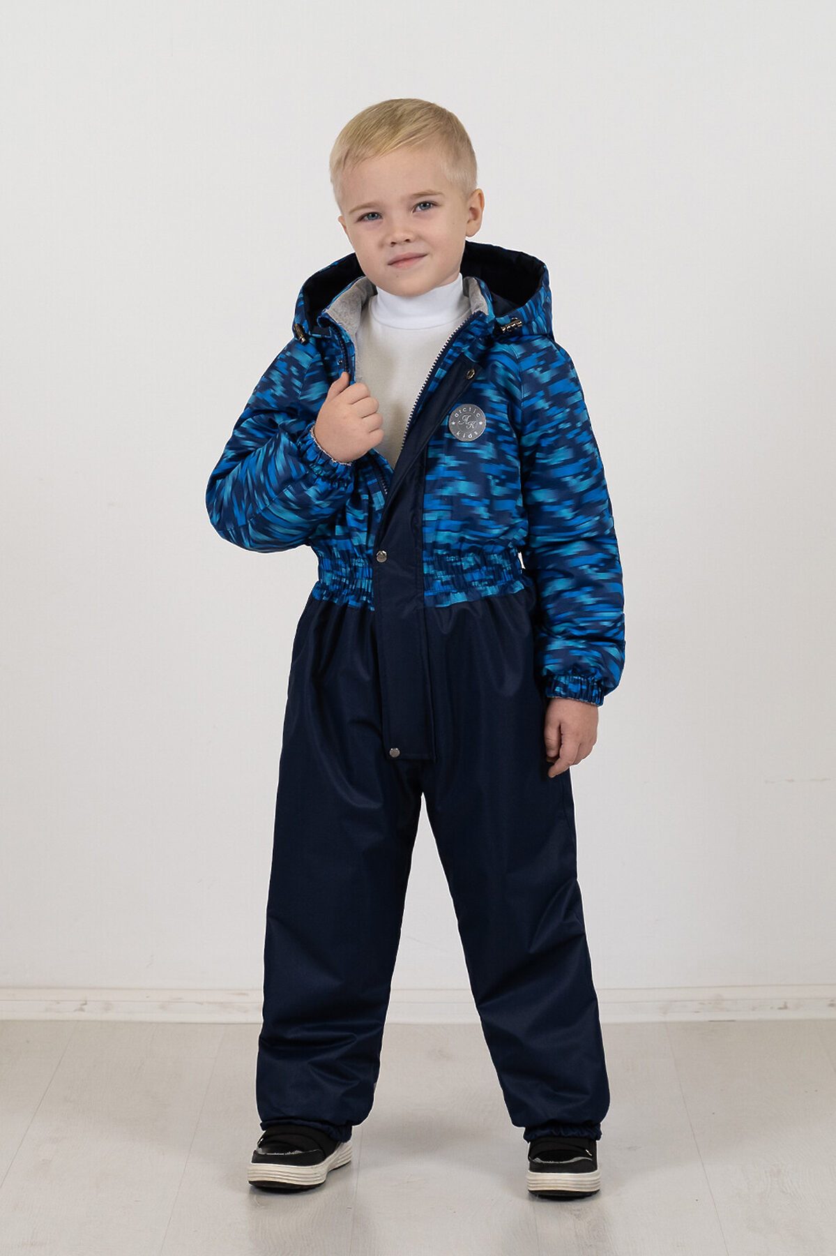 Демисезонный детский мембранный комбинезон комбинированный: одноцветный и с рисунком. Утеплитель – тинсулейн 100 гр, подкладка – трикотажная кулирка. Комбинезон свободного силуэта, на талии резинка. Капюшон несъемный. Манжеты на резинке на рукавах и штанинах. Съемные штрипки. Молния прямая, переходящая в небольшой воротничок стойку с клапаном для бегунка. Внутренняя и внешняя ветрозащитная планка на кнопках. Спереди небольшая светоотражающая нашивка. Сзади на одной из штанин светоотражающая полоса.>