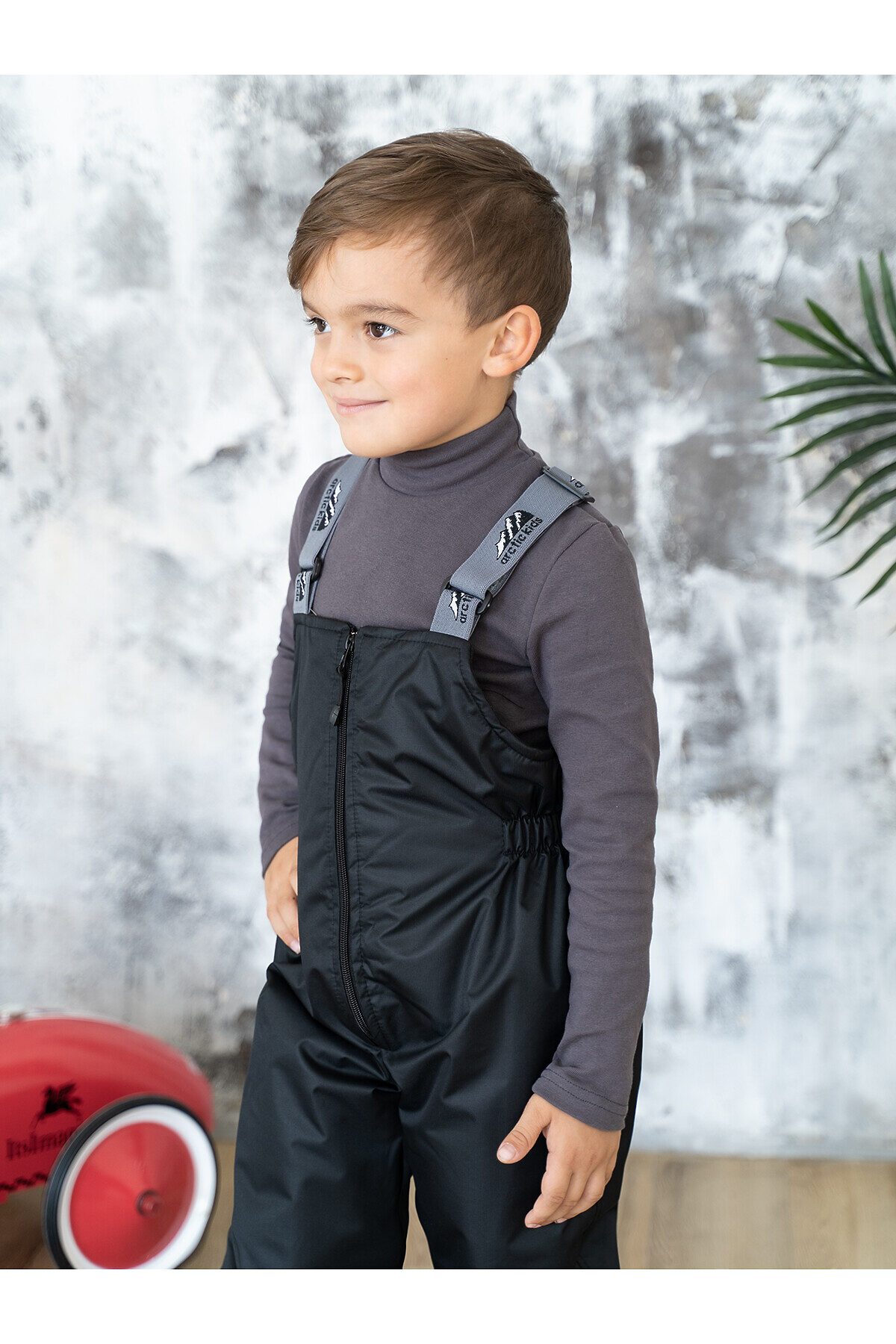 Демисезонный полукомбинезон черного цвета понравится носить девочке и мальчику на улице в холодную погоду. Модель выпускается из ветро- и влагозащитной мембраны с утеплителем тинсулейном внутри. В верхней части подклада использован тёплый флис, в нижней – таффета. Изделие имеет регулируемые лямки и резинку в зоне поясницы. Низ штанин посажен на резинку.>