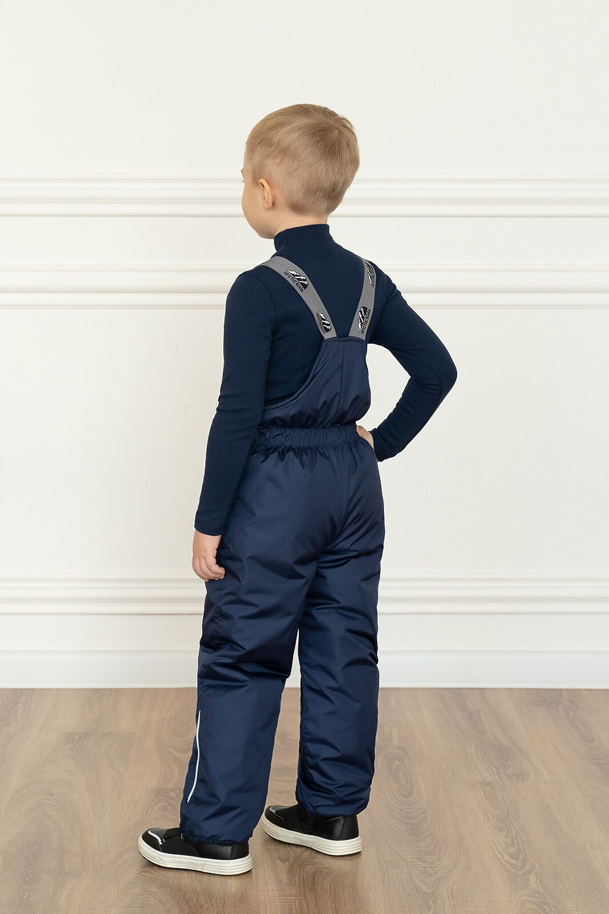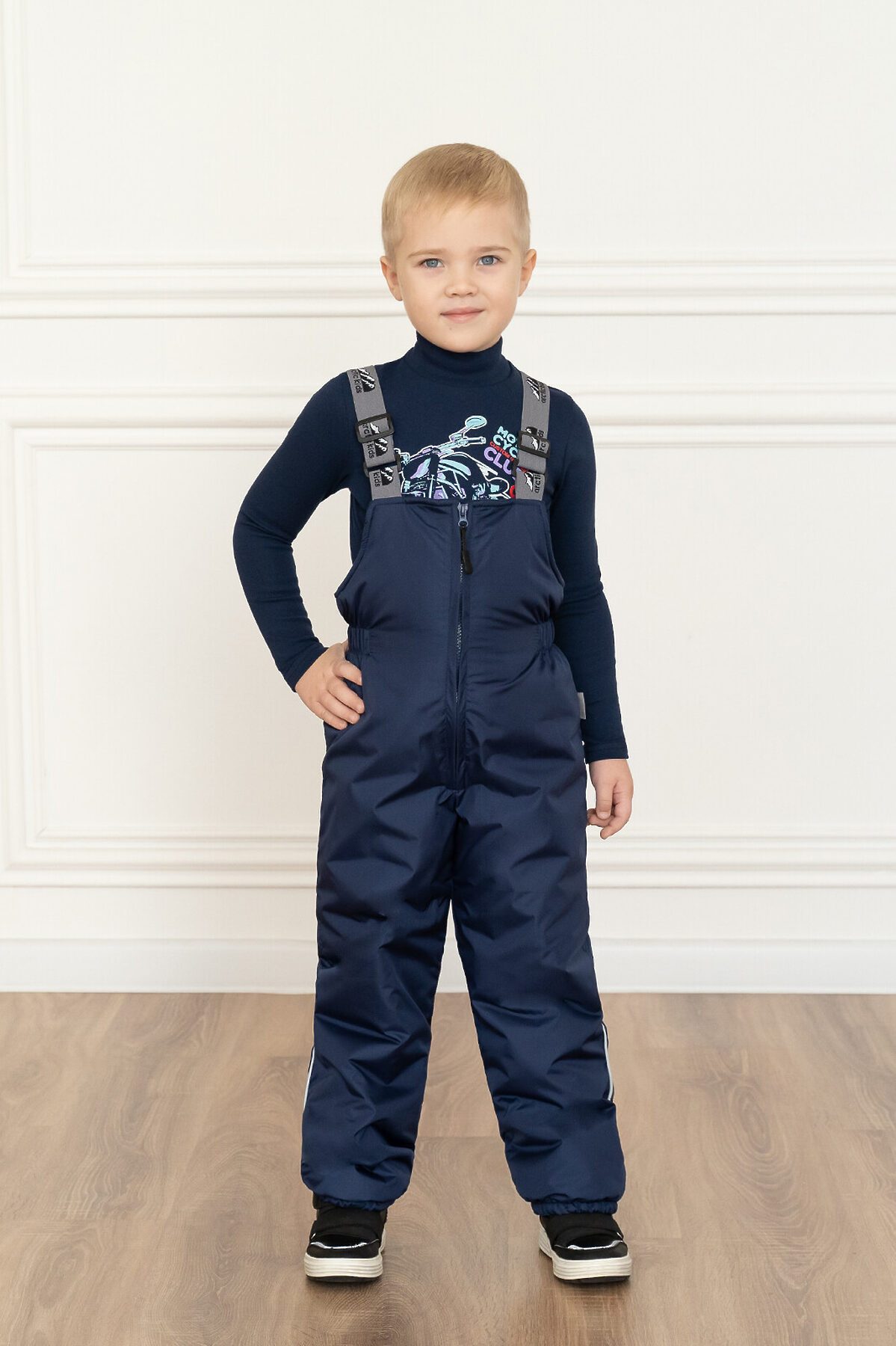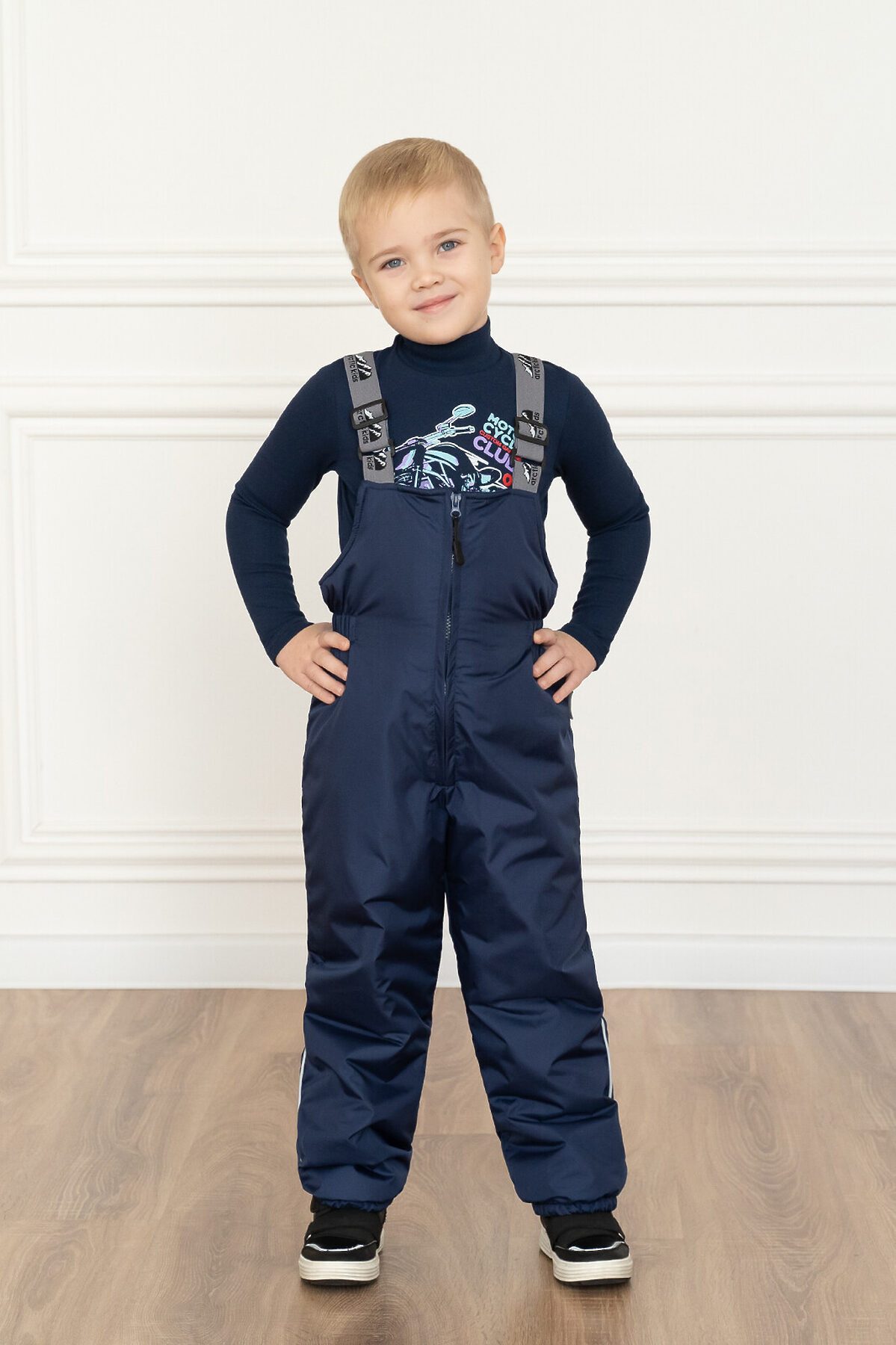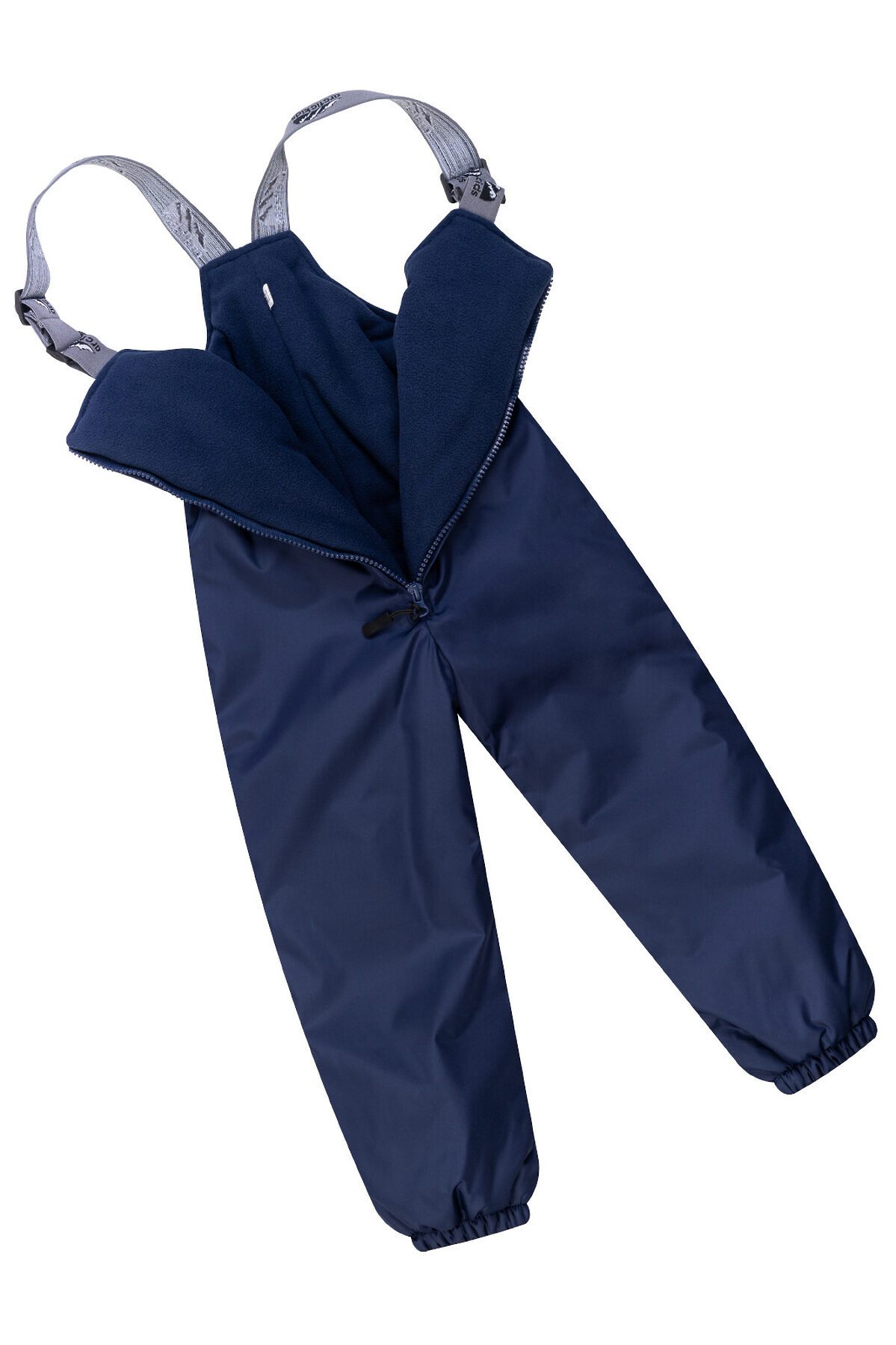 Зимой ребёнку будет комфортно гулять на улице в тёплом комбинезоне. Изделие имеет регулируемые лямки-резинки и молнию-застёжку на груди. В зону поясницы и в низ штанин вставлены резинки. Верх полукомбинезона выполнен из ветрозащитного дюспо синего цвета. Подклад сшит из мягкого флиса и таффеты, в качестве утеплителя использован тинсулейн термо. >