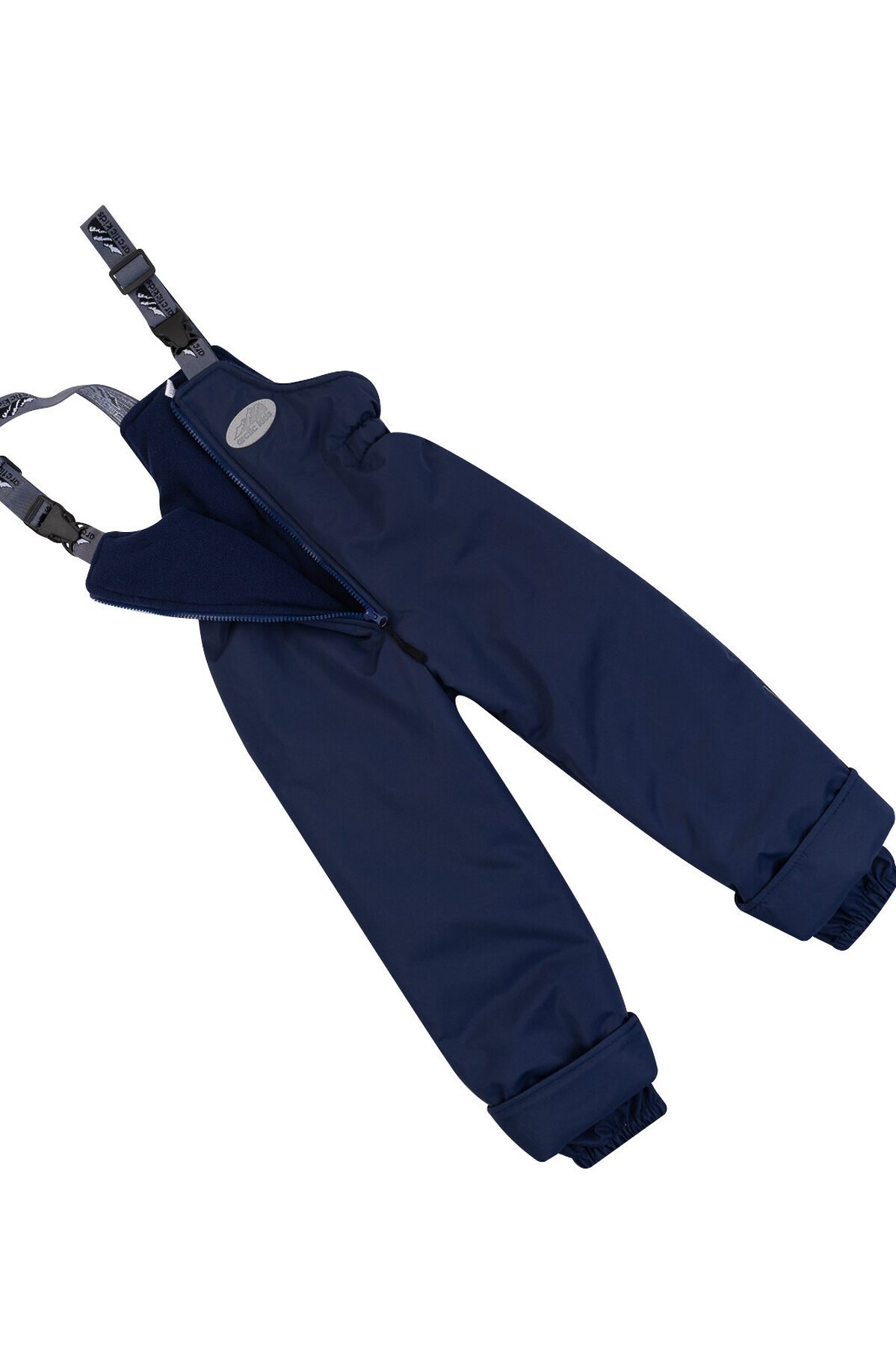 Тёплый полукомбинезон синего цвета пригодится девочке и мальчику для прогулок зимой. Верхняя сторона выполнена из непродуваемой мембраны, подклад из флиса и таффеты. Утеплителем в полукомбинезоне служит синтепон 200гр/кв.м. Изделие имеет резинку в области поясницы, регулируемые лямки на фиксаторах, манжеты на резинке и отвороты внизу штанин, молнию-застёжку. >