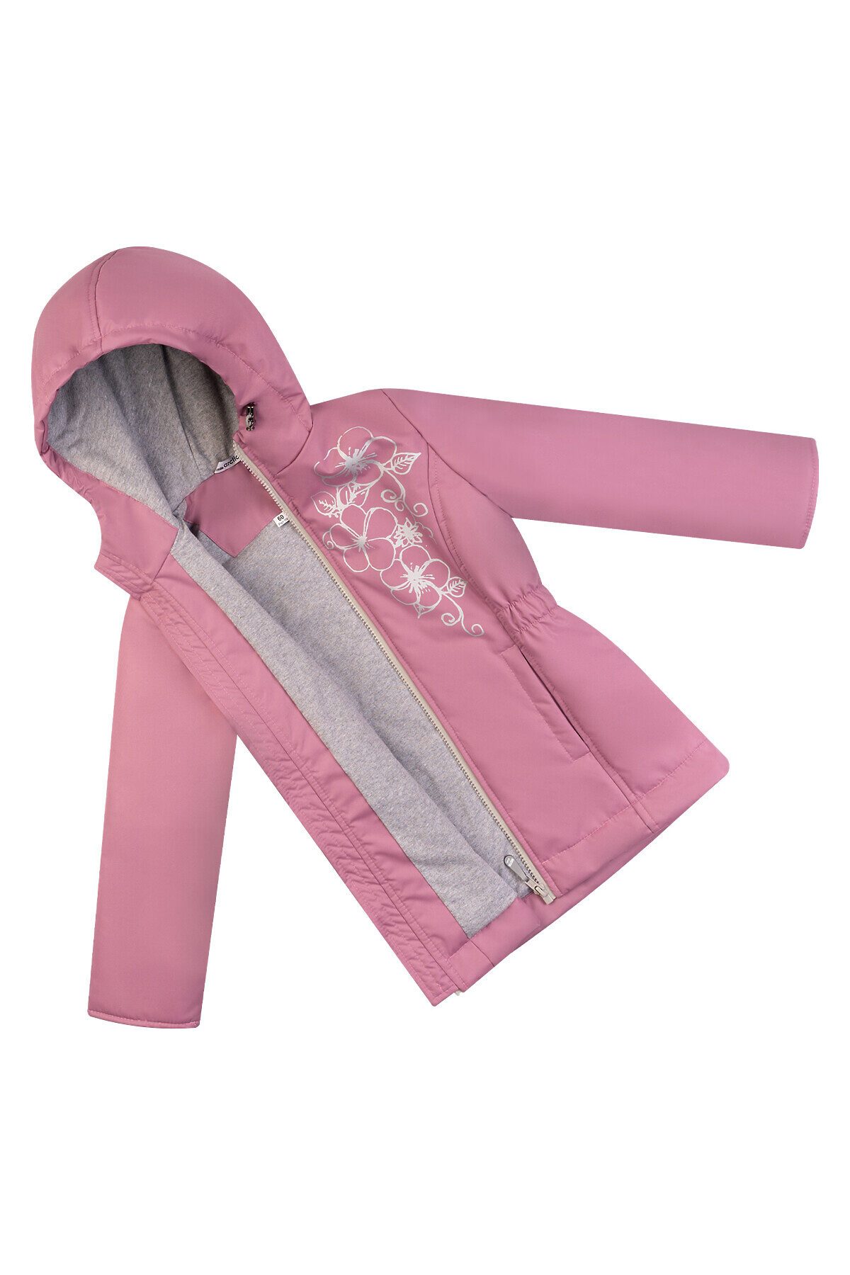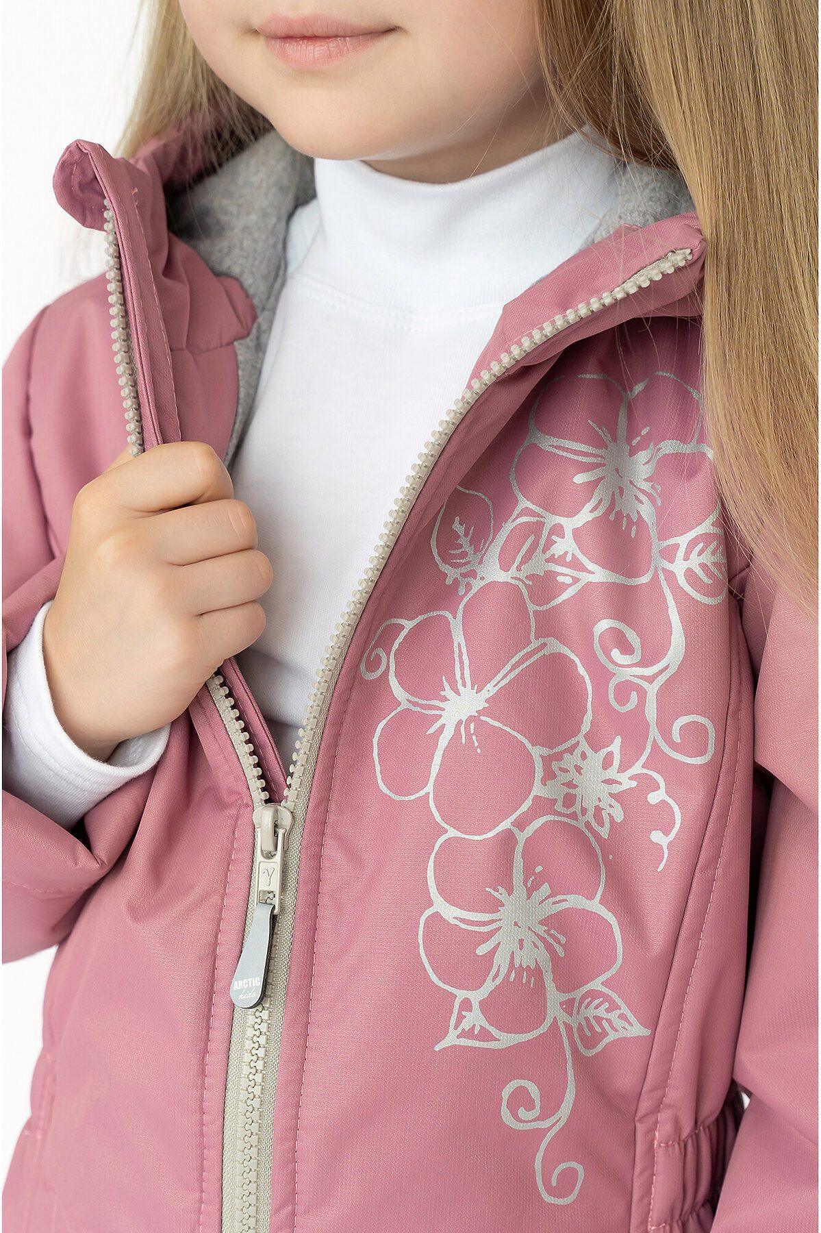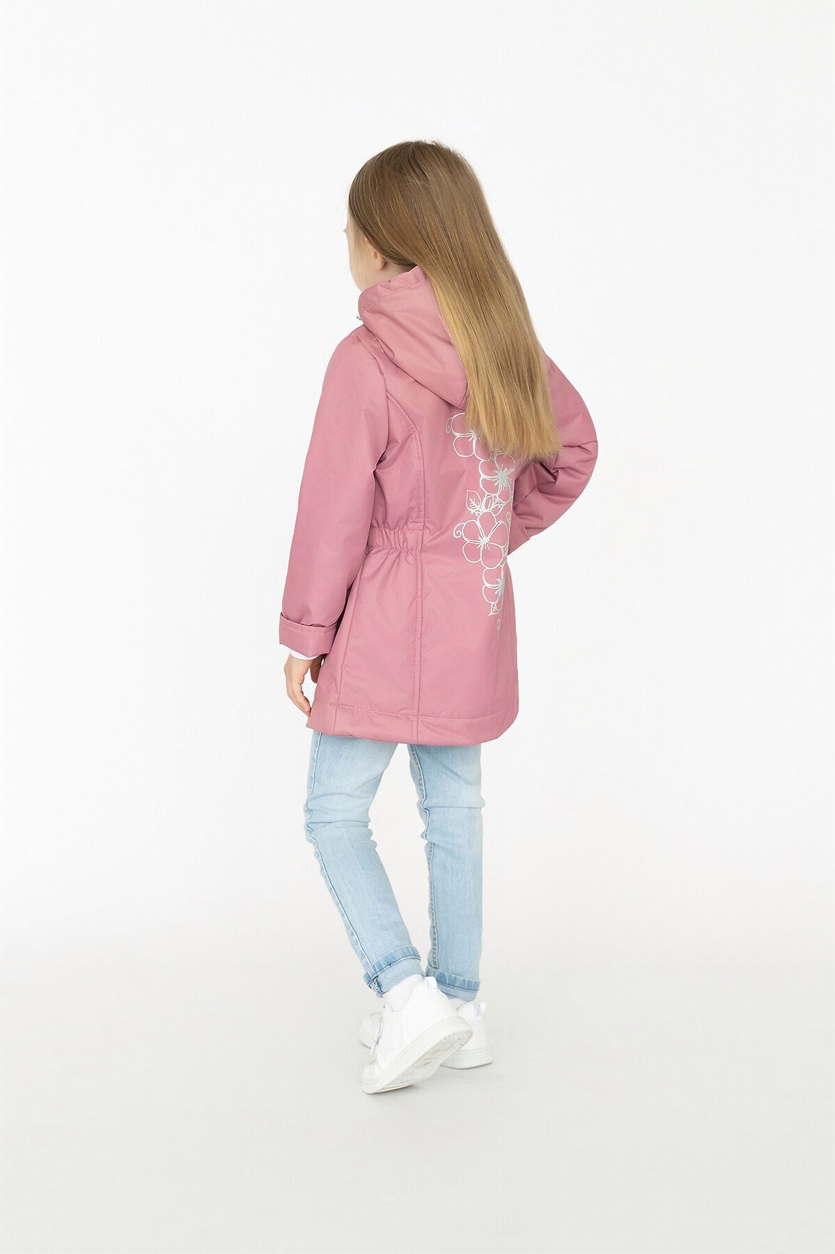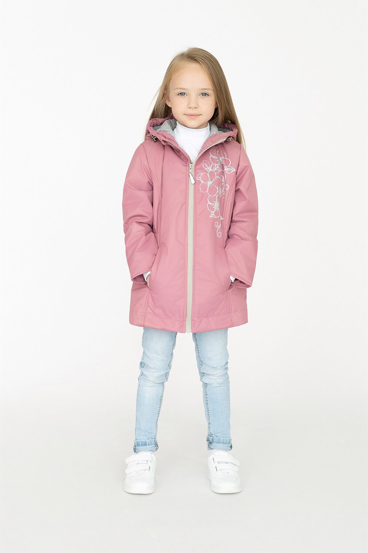 Детская демисезонная куртка для девочки пыльно-розового цвета. Несъемный капюшон, приталенный силуэт. Выполнена из однотонной мембраны. Утеплитель – тинсулейн 100гр/м2, хлопковая подкладка основной части, гладкая таффета в рукавах. Застежка молния, внутренняя ветрозащитная планка, высокий воротник с клапаном для бегунка. Капюшон регулируется фиксаторами. По бокам два кармана. Спереди и на спинке рисунок. >