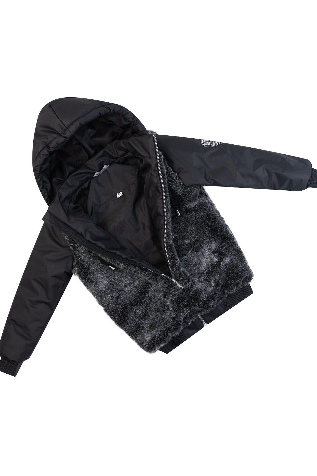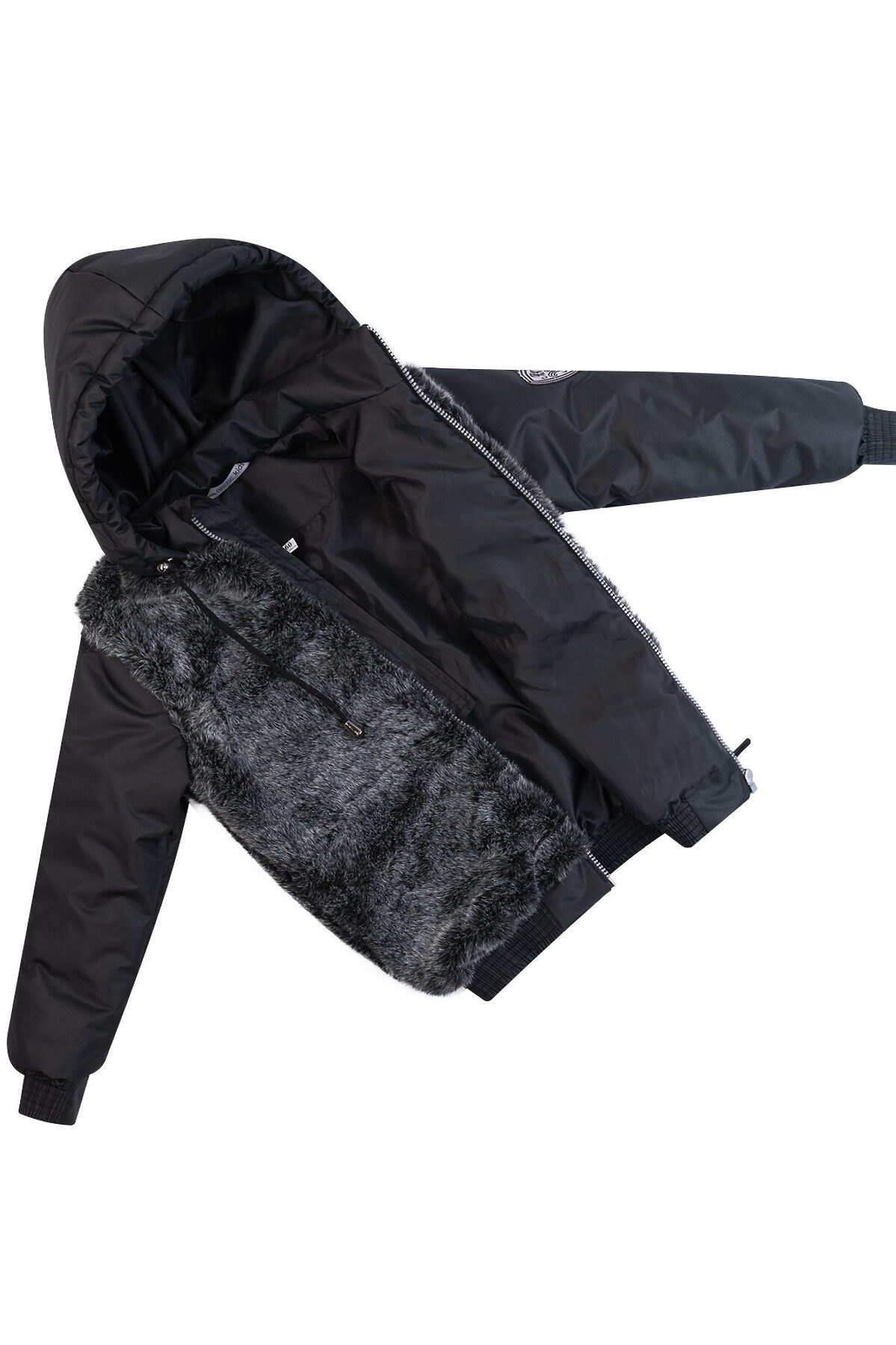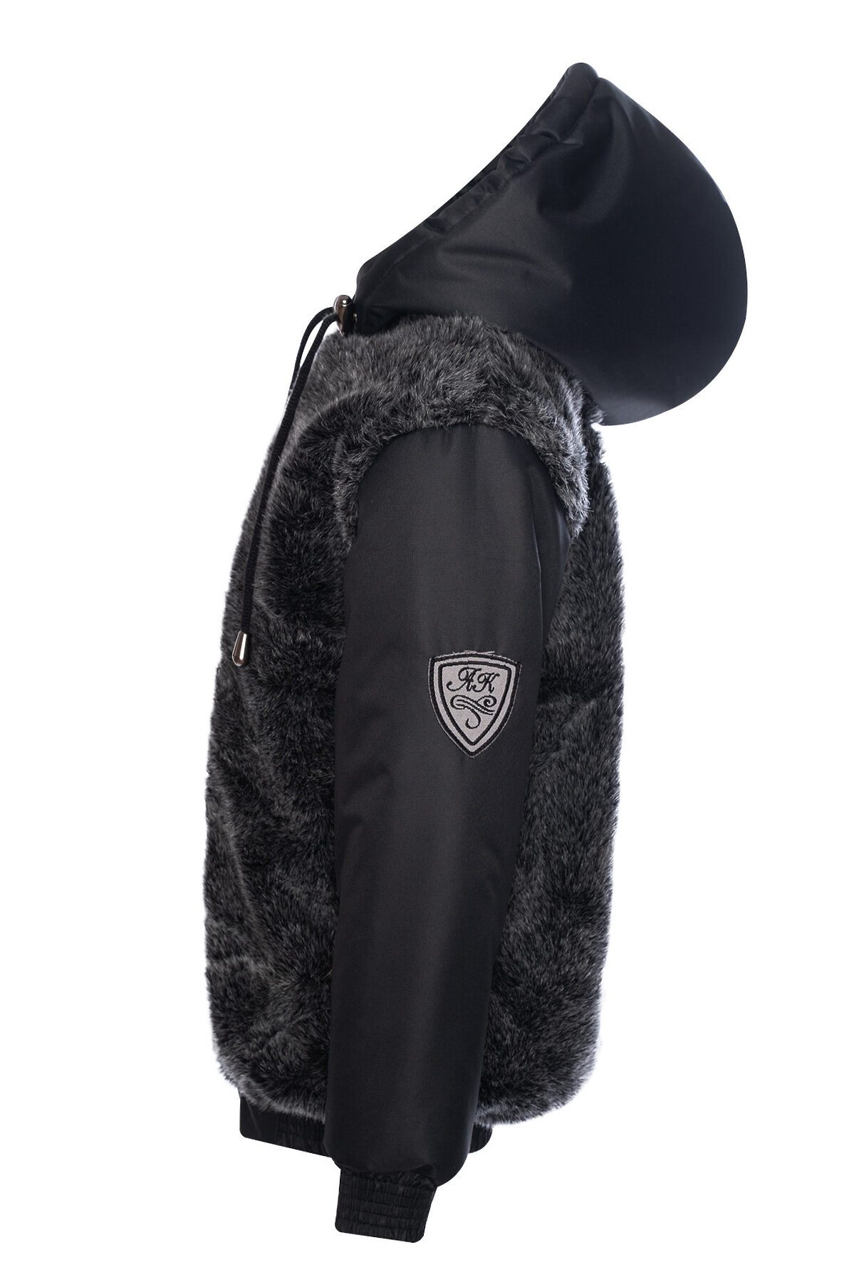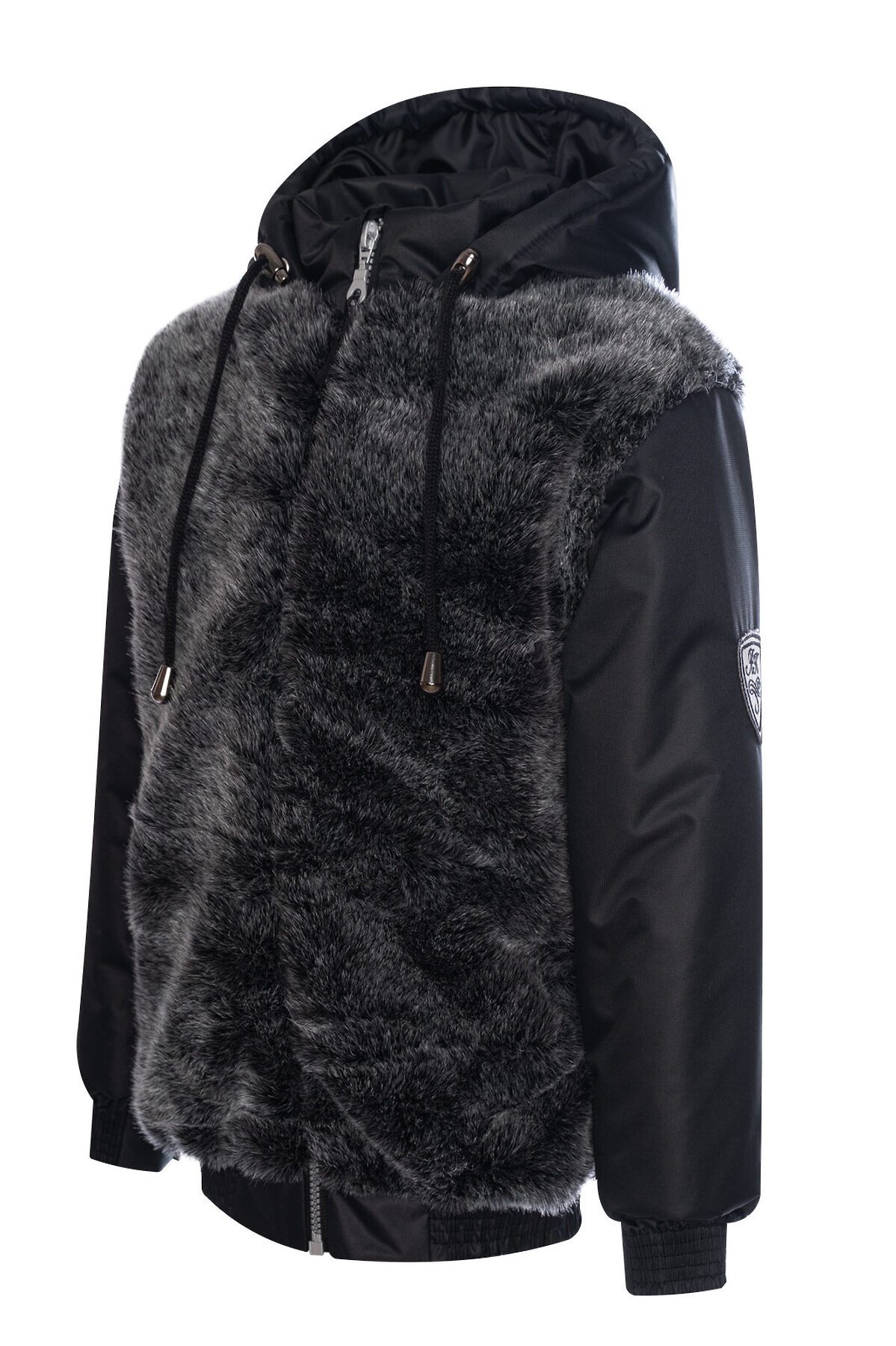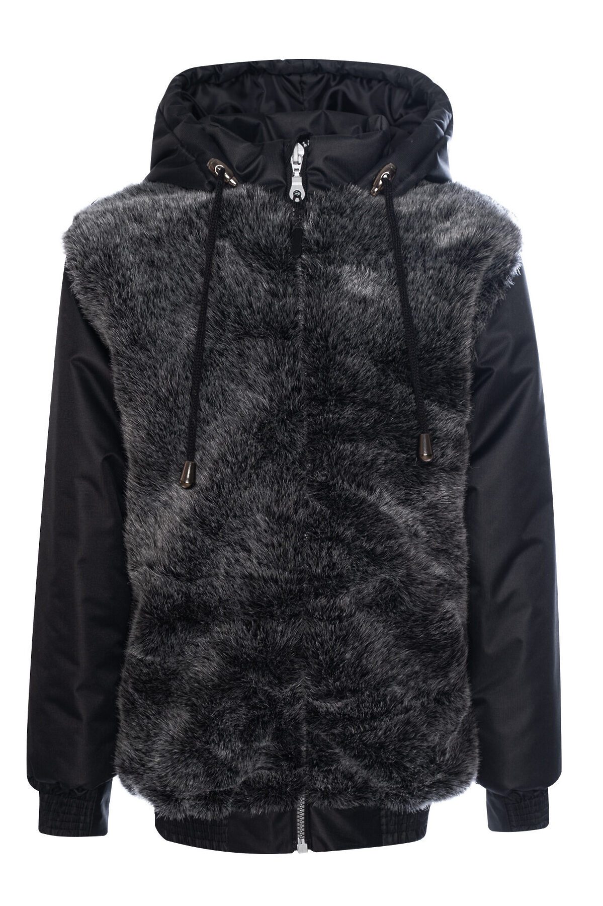 Эффектная детская меховая черная куртка пригодится ребёнку в демисезонный период. Модель имеет прочную молнию, внутреннюю ветрозащитную планку, чехол для бегунка на воротнике и удобный капюшон на утяжке с фиксаторами. В манжеты и в подол вставлены эластичные резинки для лучшего прилегания изделия к телу. В качестве утеплителя в рукавах использован синтепон. Глубокие карманы расположены в швах сбоку. Рукав украшен небольшой нашивкой. Пушистый черный мех основной части куртки смотрится стильно и необычно. >