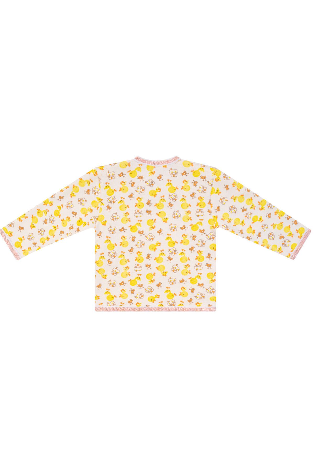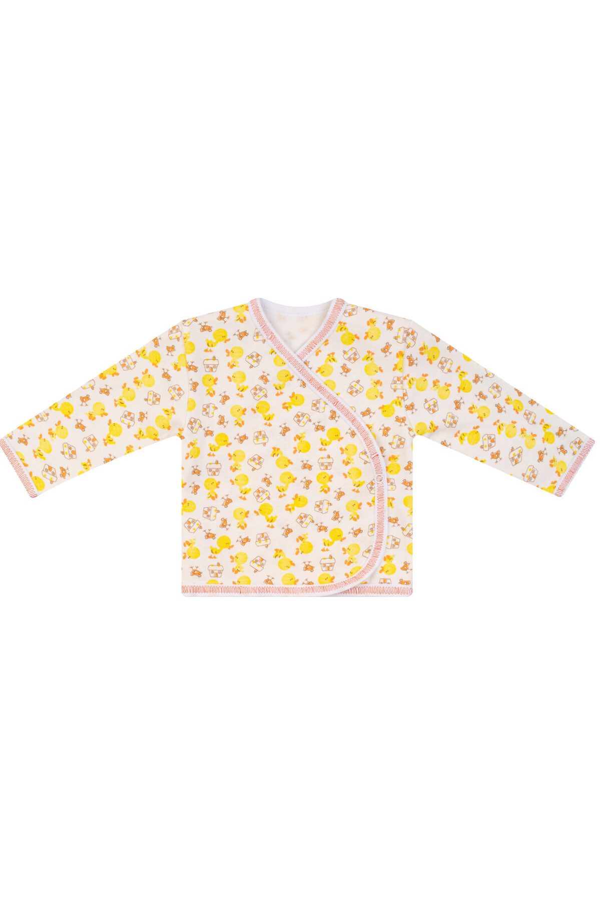 Кофточка-распашонка ясельная из бежевого футера с принтом утенок. Ручки открытые. Застёжка спереди на кнопку, край обработан трикотажной бейкой. Сшита из мягкого теплого, плотного трикотажа. Подходит для частой стирки и носки. >