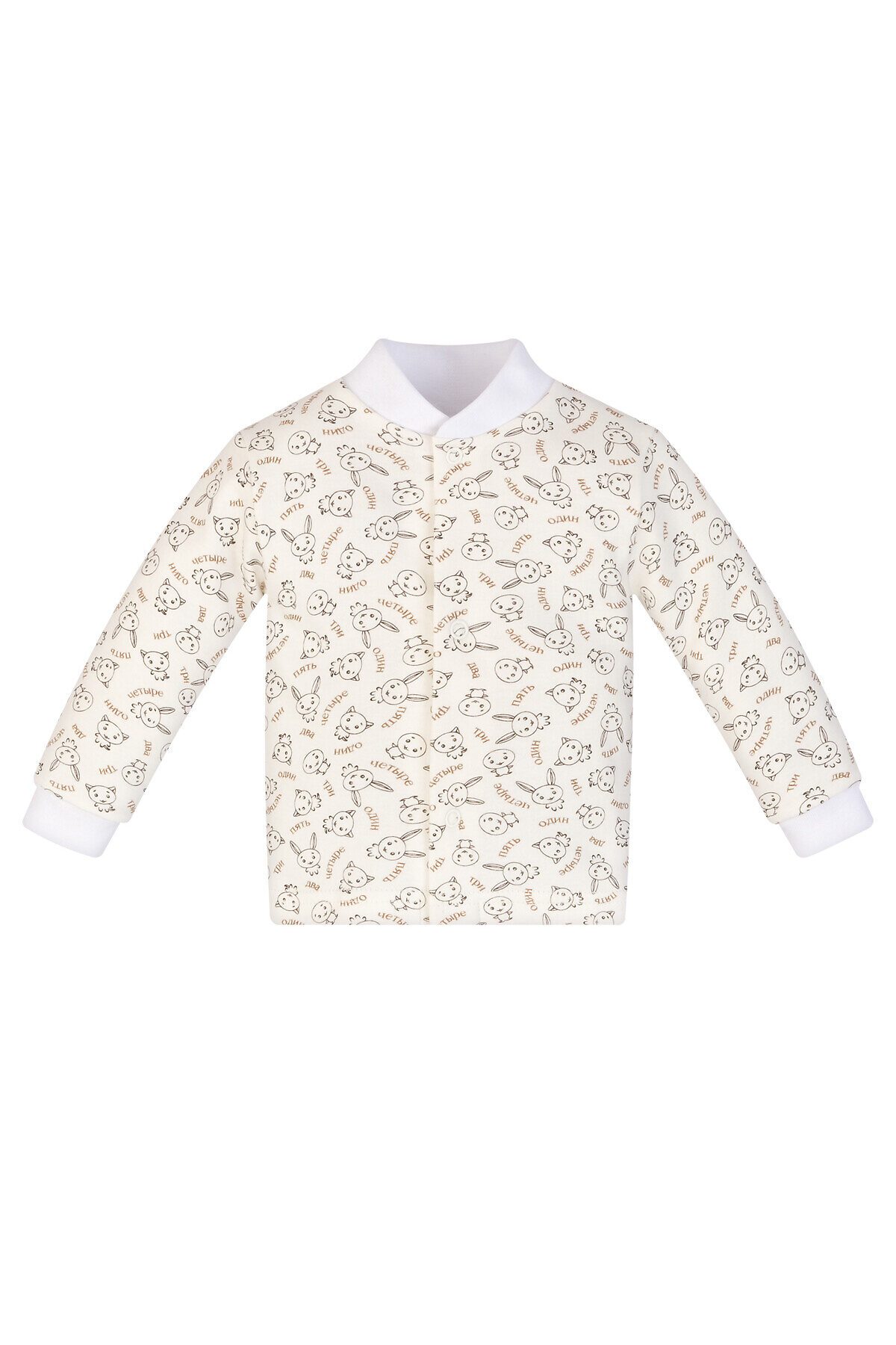 Ясельная кофточка с длинными рукавами на манжете из износостойкого, мягкого и приятного к телу трикотажа молочного цвета с принтом зайки и счёт. Воротник-стойка. Застёжка спереди на кнопки.>