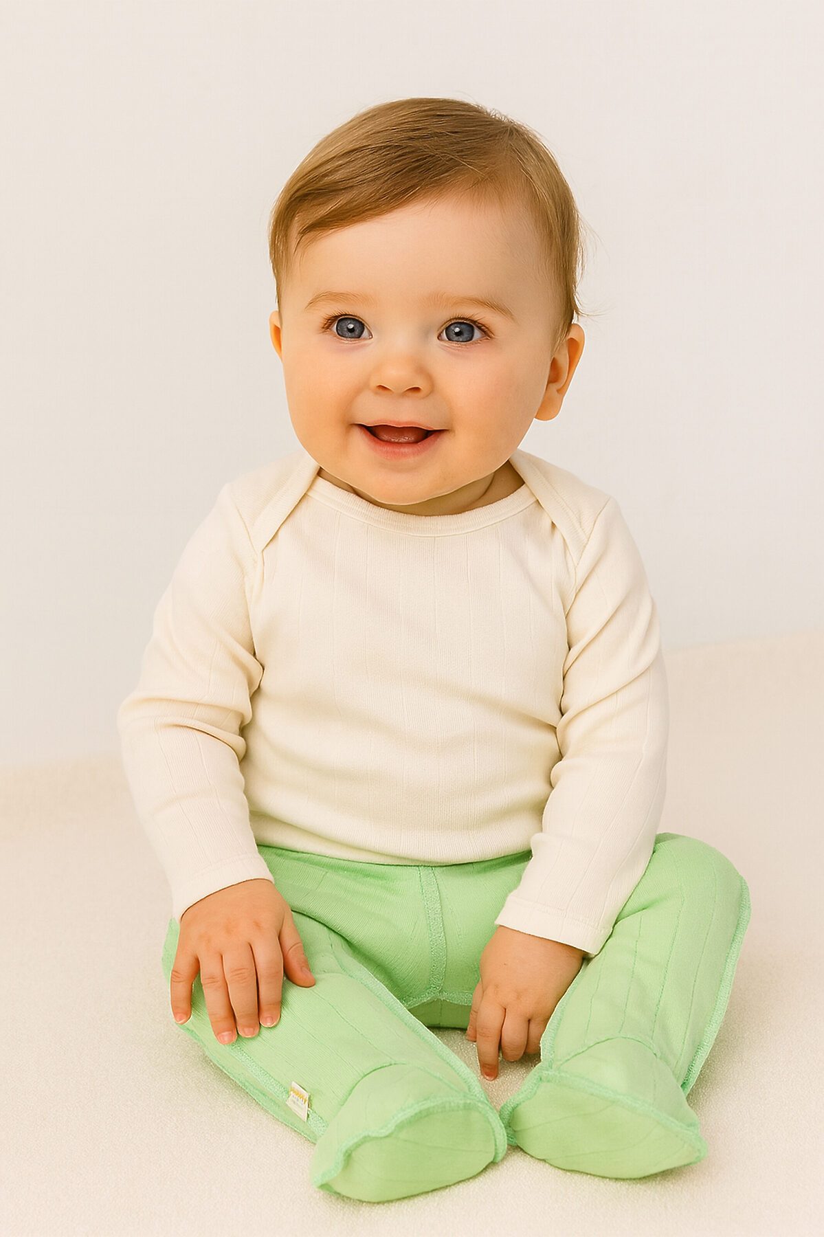 Короткие трикотажные ползунки с закрытой стопой не стеснят активных движений малютки и подарят нежные ощущения во время носки. Изделие выпускается из приятного интерлока салатового цвета: отличной хлопковой материи, гладкой, мягкой и прочной. Ползунки сшиты внешними швами, которые аккуратно оверложены. В поясочек вдета свободная тонкая резиночка, не причиняющая дискомфорта животику малыша. >