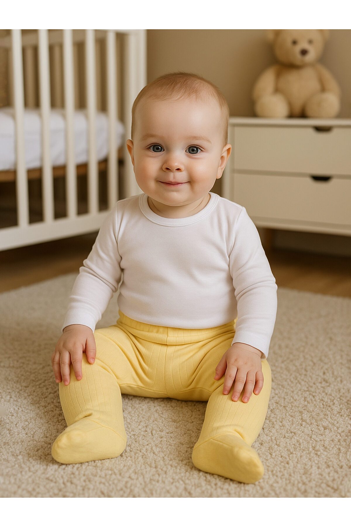 Трикотажные ползунки с закрытой стопой – необходимая вещь для новорождённого ребёнка. Изделие изготовлено из гладкого, “дышащего” и приятного на ощупь интерлока желтого цвета. Ползунки прошиты аккуратными внутренними швами. В пояс вставлена хорошо тянущаяся резинка. >