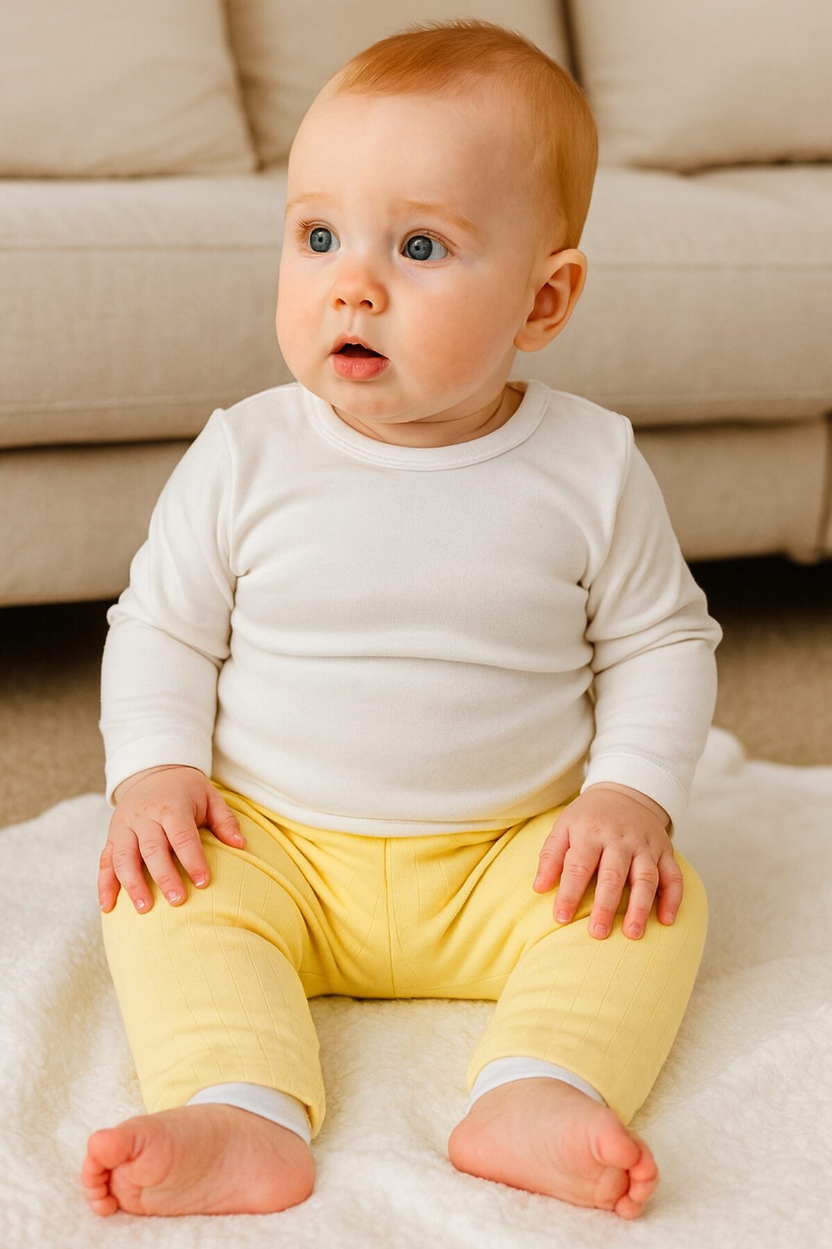 Мягкое на ощупь, приятное к телу, эластичное, практичное трикотажное полотно. Особенности модели: удобные трикотажные ползунки-штанишки желтые. В поясе на резинке. Низ на манжете. >