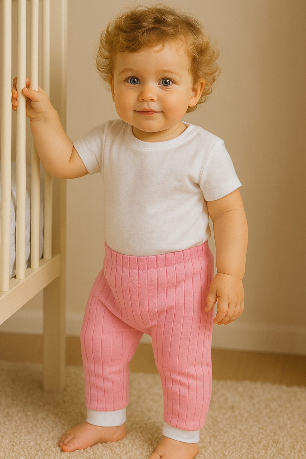Милые штанишки из хлопка на поясе-манжете и на манжетах у щиколотки. За день многое случается, а в них крохе будет исключительно удобно и даже самый наполненный подгузник будет не в тягость. Выполнены в розовом цвете. >