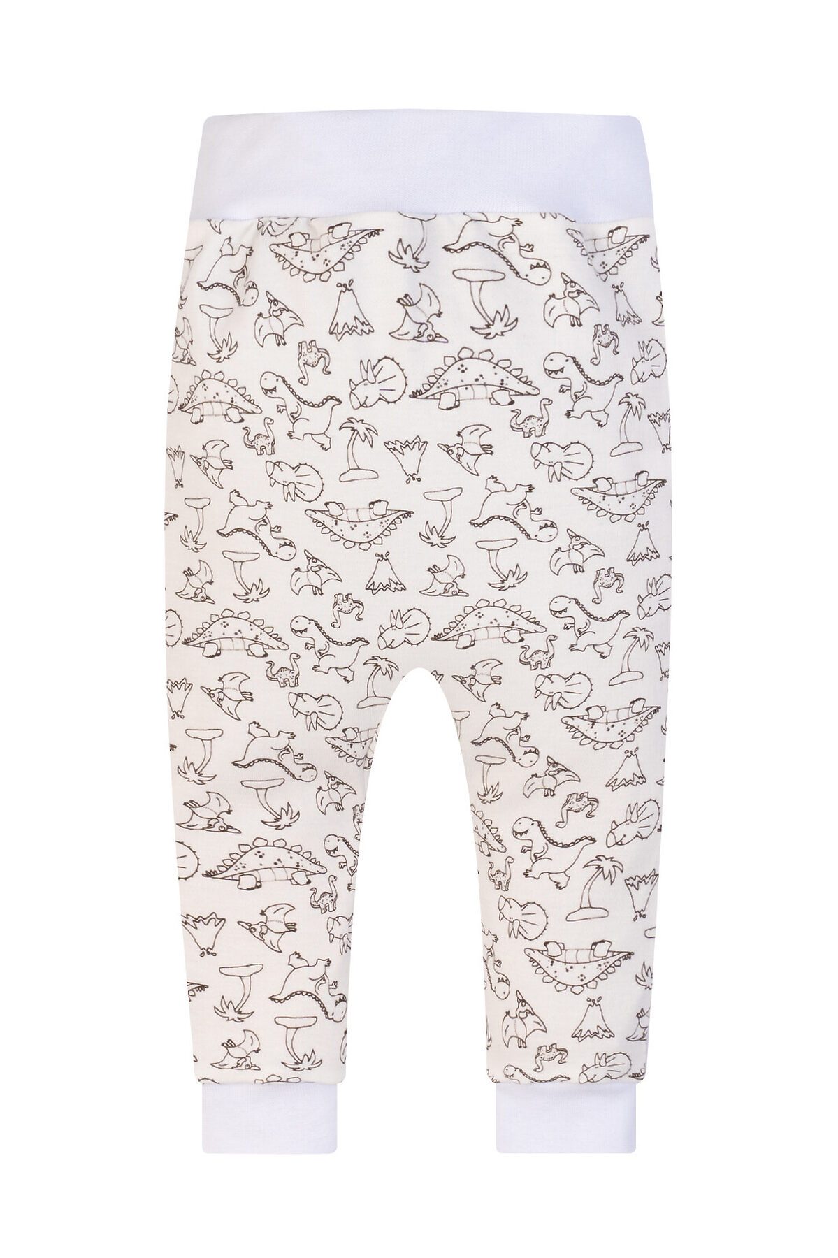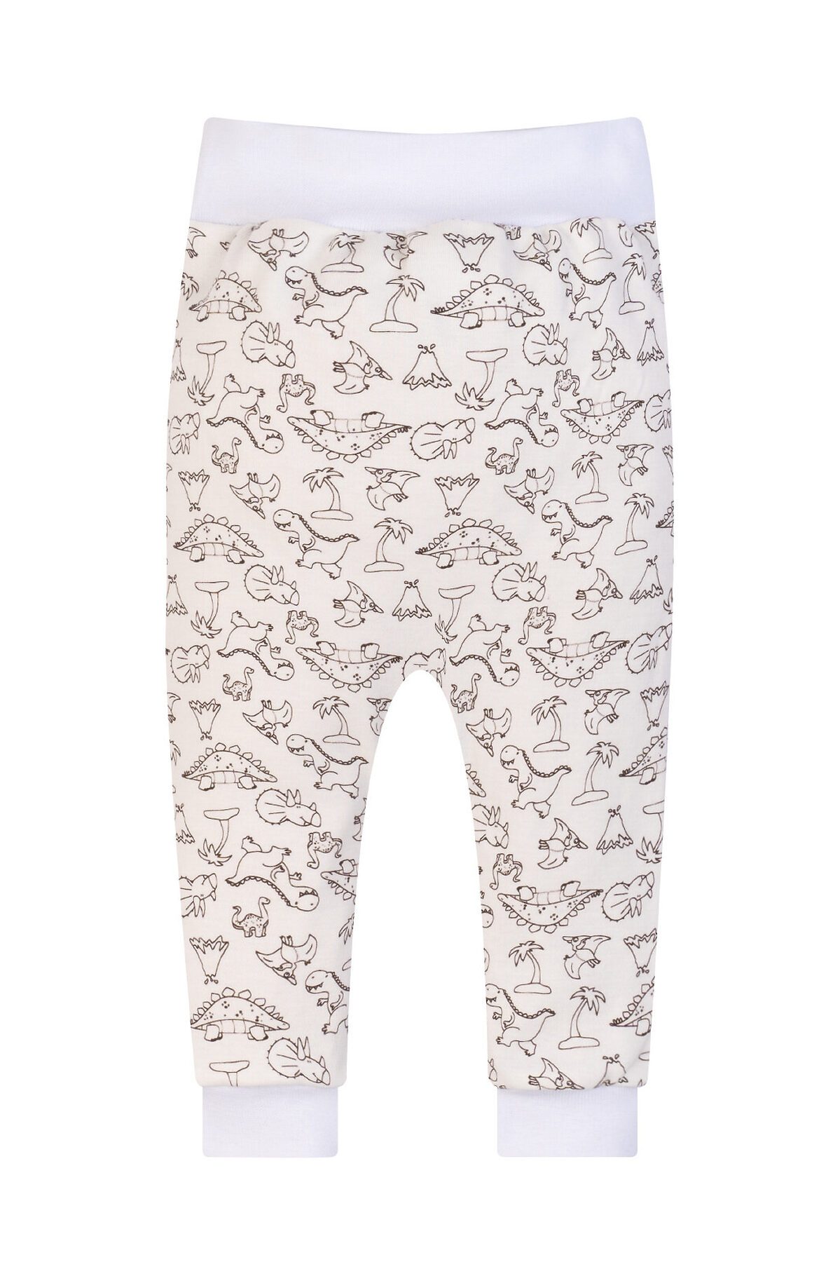 Нежный к телу, дышащий, эластичный трикотаж. Удобные ползунки с открытой ножкой. Пояс из эластичного мягкого трикотажа (на еврорезинке). Манжеты на штанинах. Выпускаются из трикотажа молочного цвета с рисунком динозавры.>