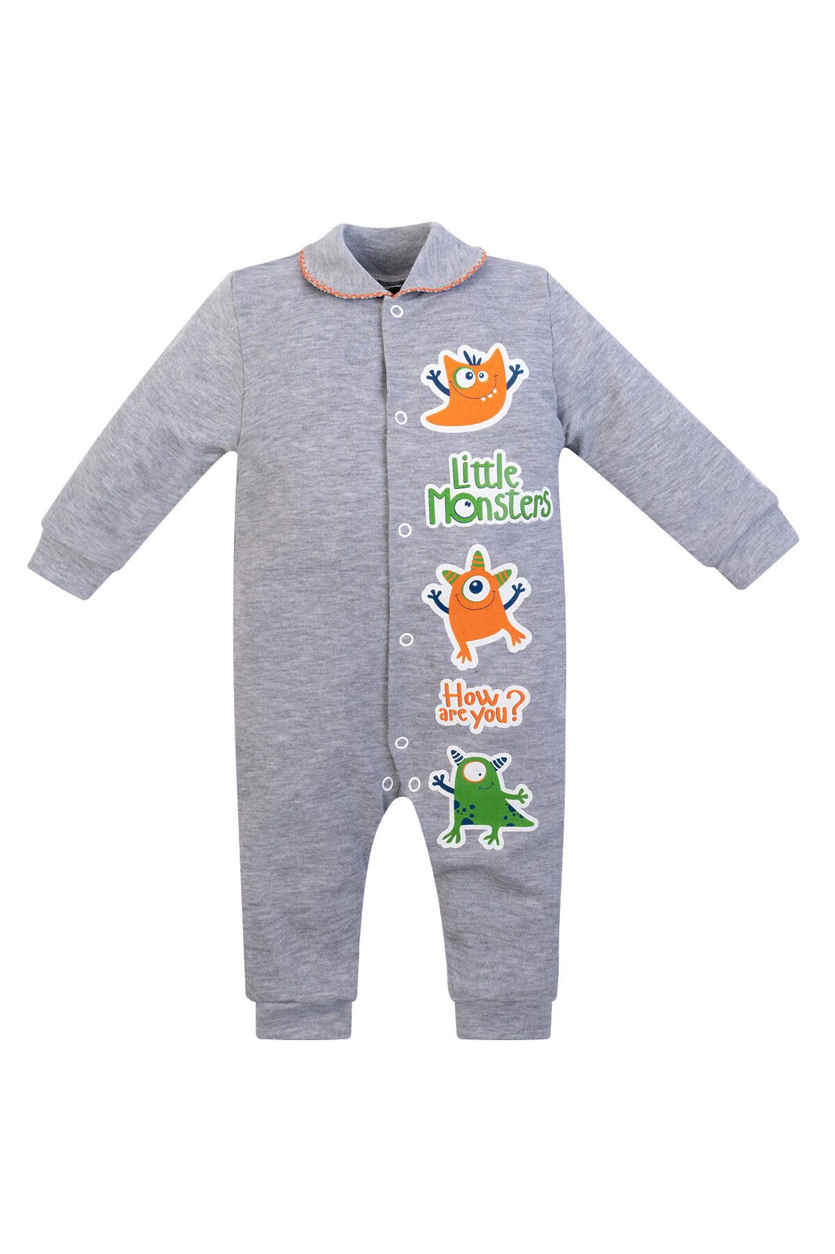 Трикотажный ясельный комбинезон пригодится малышам для носки в прохладные дни. Модель выпускается из гладкого и мягкого на ощупь интерлока. Изделие имеет отложной округлый воротничок, закрытые стопы на штанинах и манжеты на рукавах. Прочные кнопки-застёжки проходят по передней стороне комбинезона. >