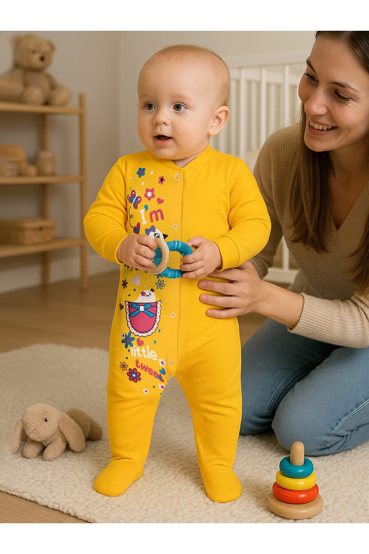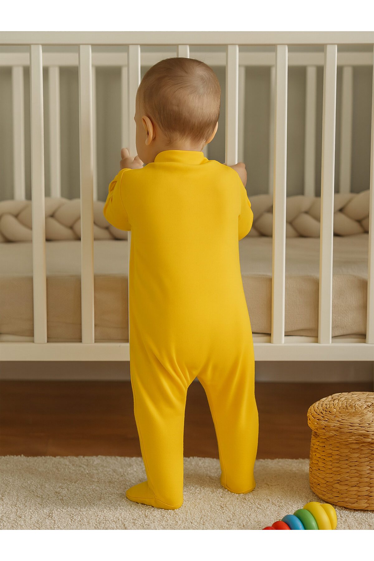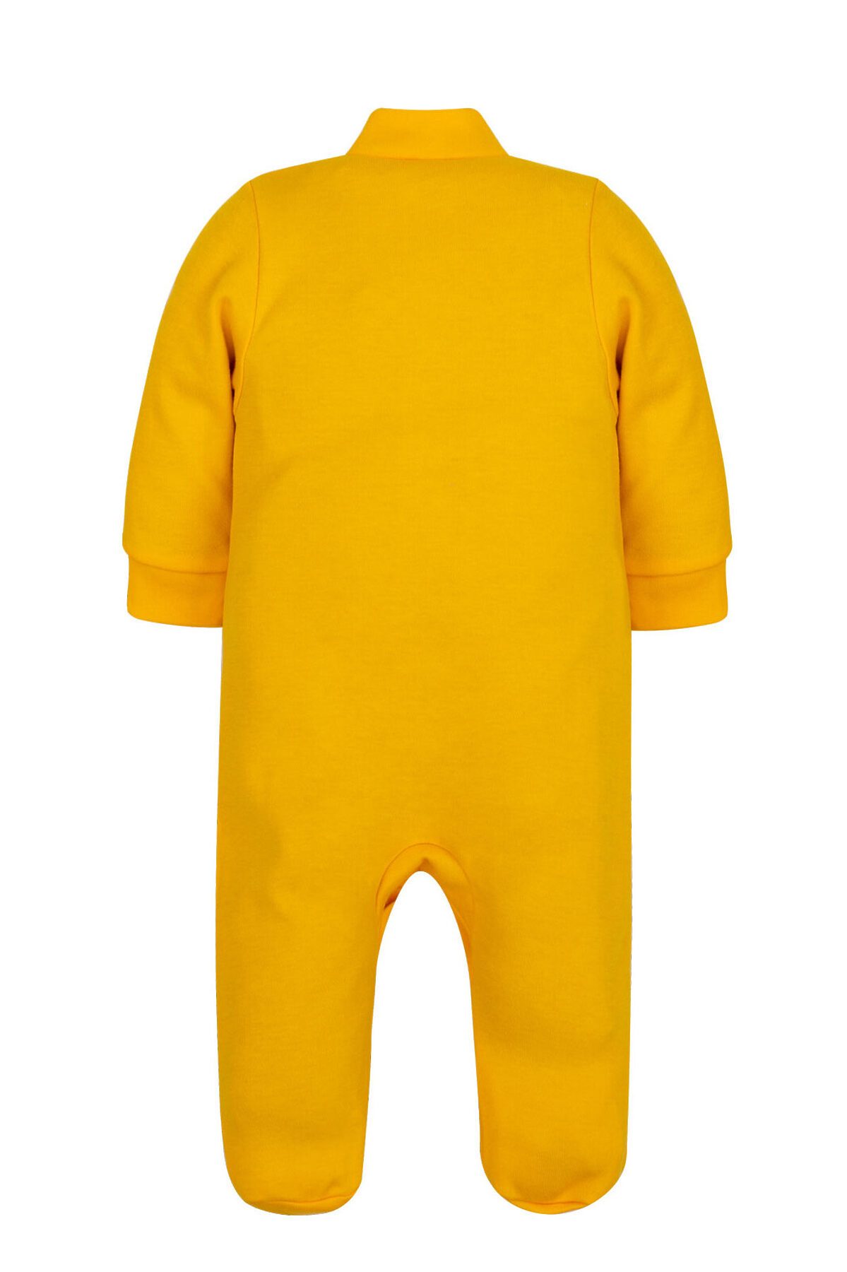 Превосходный трикотажный комбинезон с закрытыми ножками очень удобно использовать в нежаркие деньки. Комбинезончик выполнен из высококачественного хлопкового интерлока желтого цвета, весьма нежненького, приятного и мягкого. Открытые длинные рукава оформлены эластичными манжетами, а воротничок-стойка изготовлен из такого же материала. От горловины и до проймы ножек проходит удобная застёжка в виде кнопочек. Спереди принт поющие птички. >
