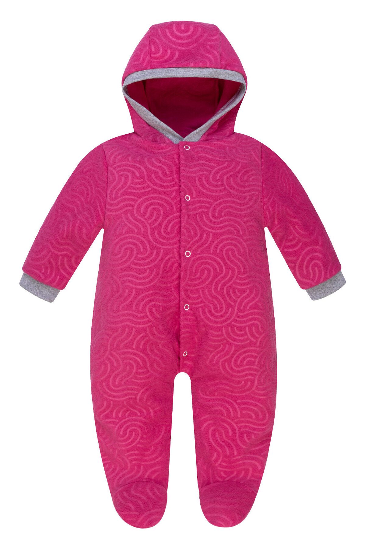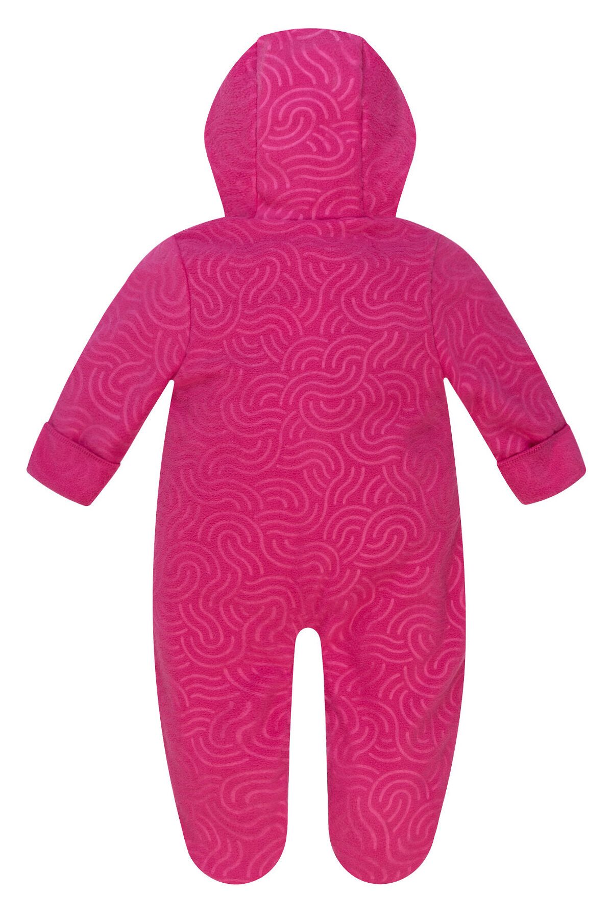 Мягкий, комфортный, тёплый и приятный к телу флис, обработан антистатическим и антипиллинговым составами. Особенности модели: практичный комбинезон с закрытыми ножками и с капюшоном. Край капюшона и рукавов обработаны эластичным трикотажем. Рукава с клапанами для открытого или закрытого положения рук. Ластовица между ножек. Кнопки-застёжки спереди. Выполнен в цвете фуксия с тиснением завитки. >