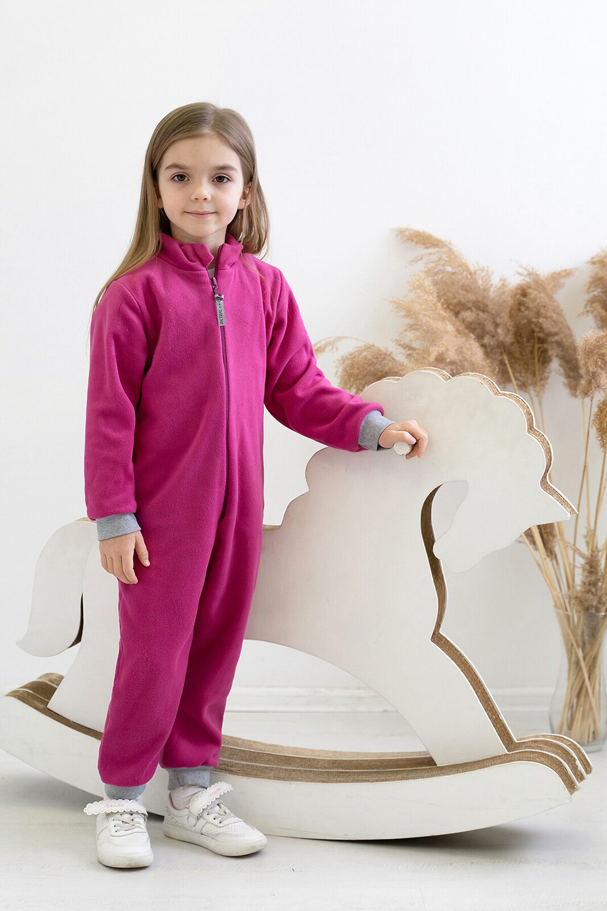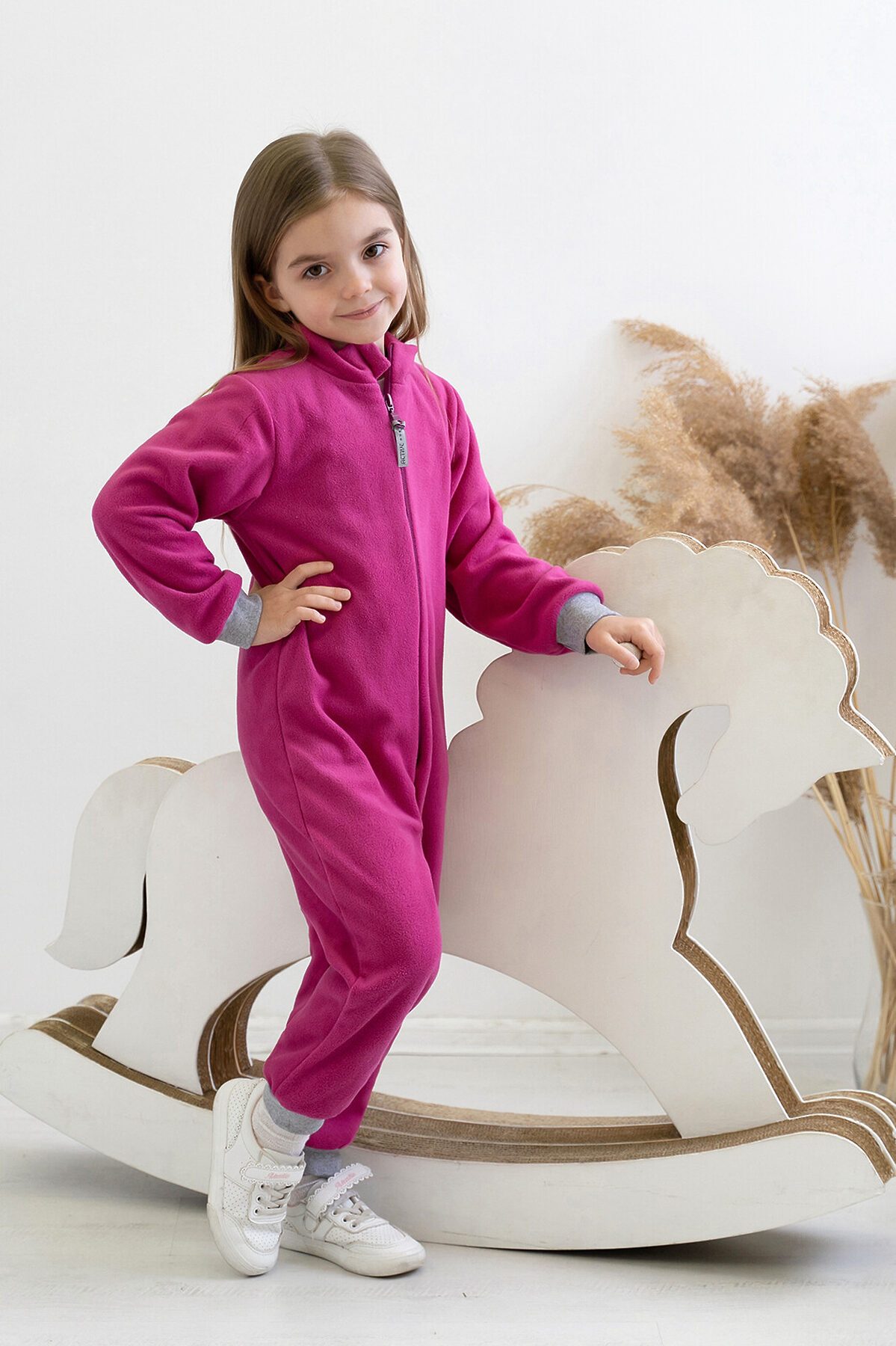Детский комбинезон выполнен из флиса SHELYS тёплого и мягкого полотна нового поколения. Сшит комбинезон аккуратными внутренними швами очень крепкими и прочными. Прямая молния-застёжка проходит по центру передней части. Цвет молнии гармонирует с цветом комбинезона. Плоская форма слайдера удобно ложится в детскую руку малыш сможет сам застегнуть комбинезон. На бегунок прикреплен прямоугольный пуллер с логотипом бренда. Воротник-стойка хорошо прикрывает шею от ветра. Специальный клапан прячет бегунок молнии, не давая ему травмировать нежную кожу ребёнка. Трикотажные эластичные манжеты на рукавах и штанинах не пропускают холодный воздух к телу. Комбинезон можно носить отдельно или в качестве нижней поддёвы под мембранную одежду. Выпускается модель в ярком цвете фуксия.>