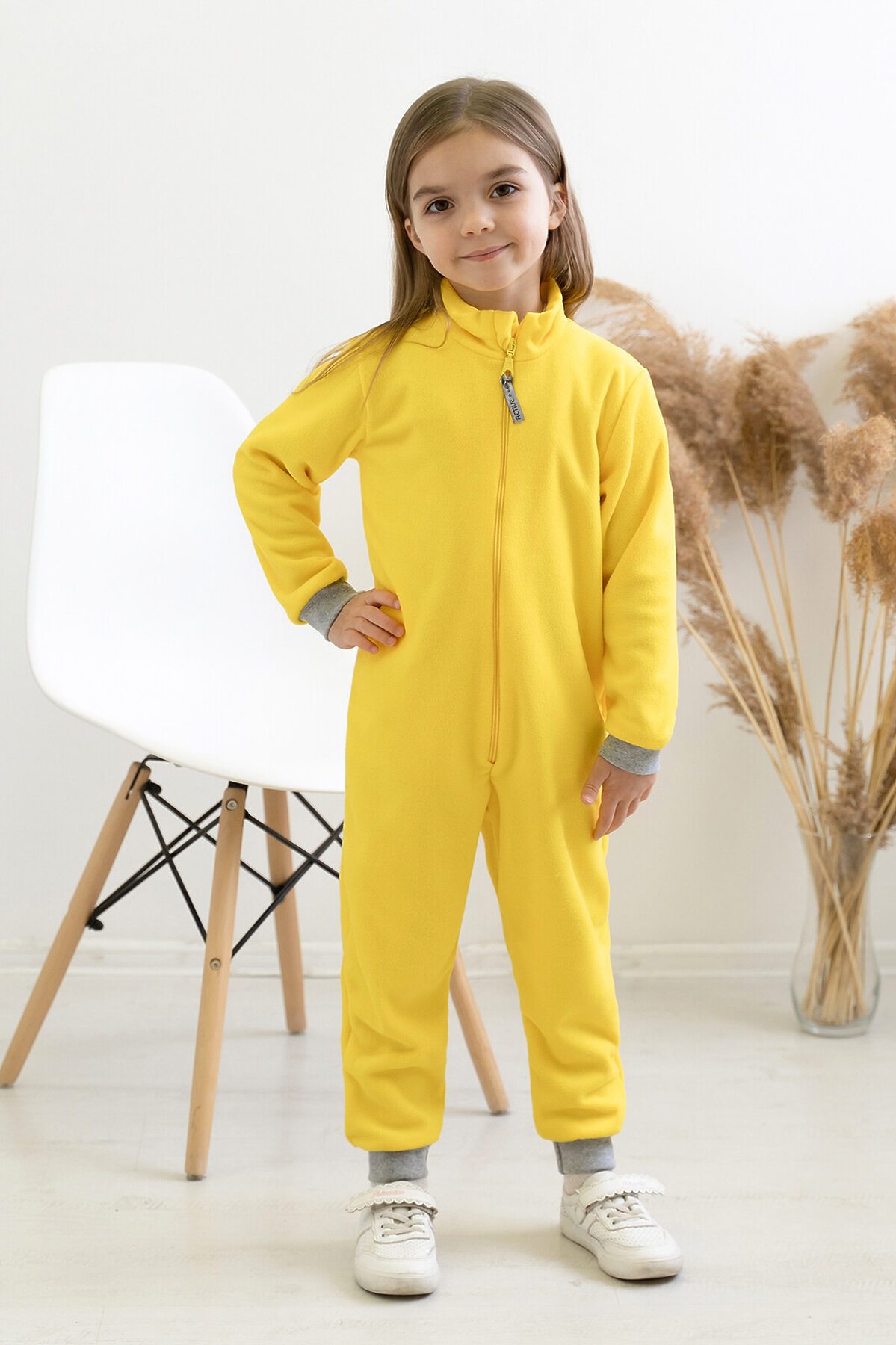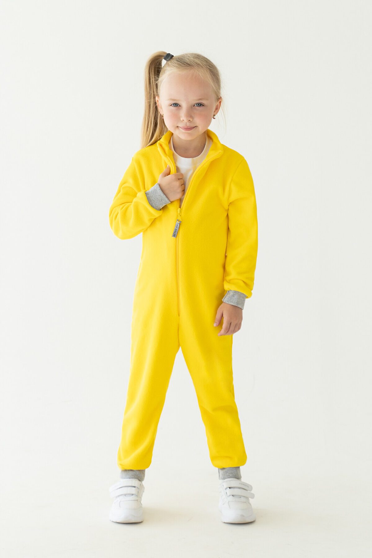 Детский комбинезон выполнен из флиса SHELYS тёплого и мягкого полотна нового поколения. Сшит комбинезон аккуратными внутренними швами очень крепкими и прочными. Прямая молния-застёжка проходит по центру передней части. Цвет молнии гармонирует с цветом комбинезона. Плоская форма слайдера удобно ложится в детскую руку малыш сможет сам застегнуть комбинезон. На бегунок прикреплен прямоугольный пуллер с логотипом бренда. Воротник-стойка хорошо прикрывает шею от ветра. Специальный клапан прячет бегунок молнии, не давая ему травмировать нежную кожу ребёнка. Трикотажные эластичные манжеты на рукавах и штанинах не пропускают холодный воздух к телу. Комбинезон можно носить отдельно или в качестве нижней поддёвы под мембранную одежду. Выпускается модель в ярком желтом цвете.>