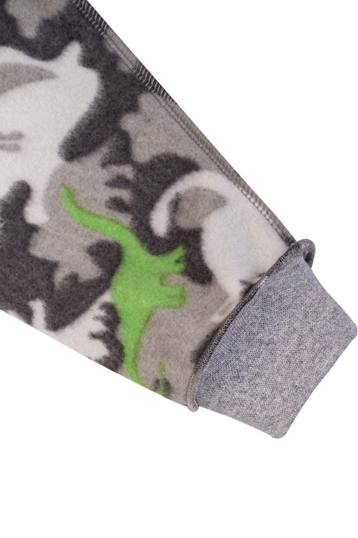 Простой и удобный флисовый комбинезон пригодится Вашему малышу и прохладным летом, и студёной зимой. Мягкий дышащий флис SHELYS, из которого сшит комбинезон, отлично держит тепло. Благодаря специальной обработке флис не скатывается и не электризуется. Комбинезон застёгивается на центральную молнию. Специальный клапан защищает подбородок от натирания. Эластичные манжеты не дадут рукавам и штанинам сползать. Воротничок-стоечка укроет горло от сквозняков. Выпускается в сером цвете с рисунком динозавры и зеленая вспышка.>