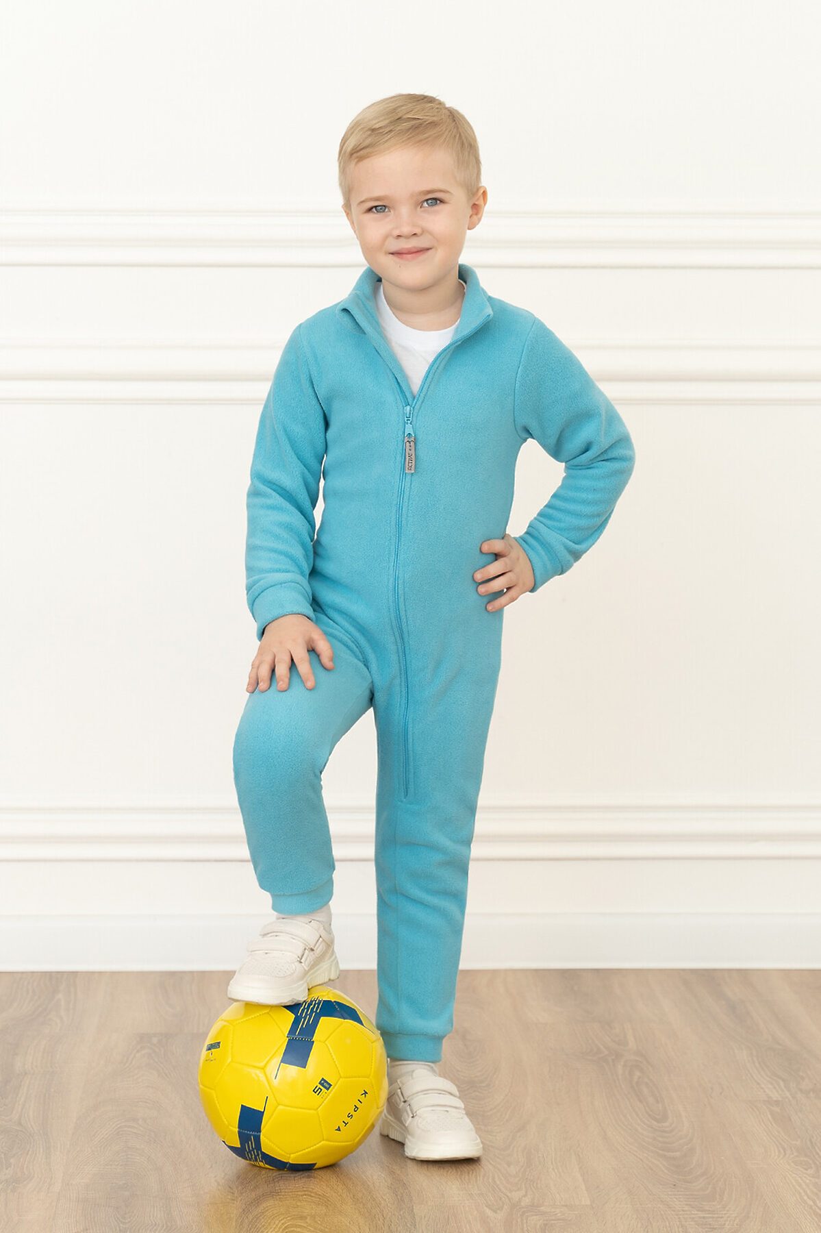 Малышу будет комфортно и удобно в тёплом комбинезоне-поддёве. Модель выполнена из флиса нового поколения Shelys бирюзового цвета. Флис Shelys не электризуется, приятен на ощупь, отлично удерживает тепло. Комбинезон имеет удобный воротник-стойку, манжеты на рукавах и штанинах, внутреннюю ветрозащитную планку. Для лучшего прилегания к телу в области поясницы пришита резинка. Комбинезон застёгивается на косую молнию, к бегунку которой прикреплён серебристый пуллер. >