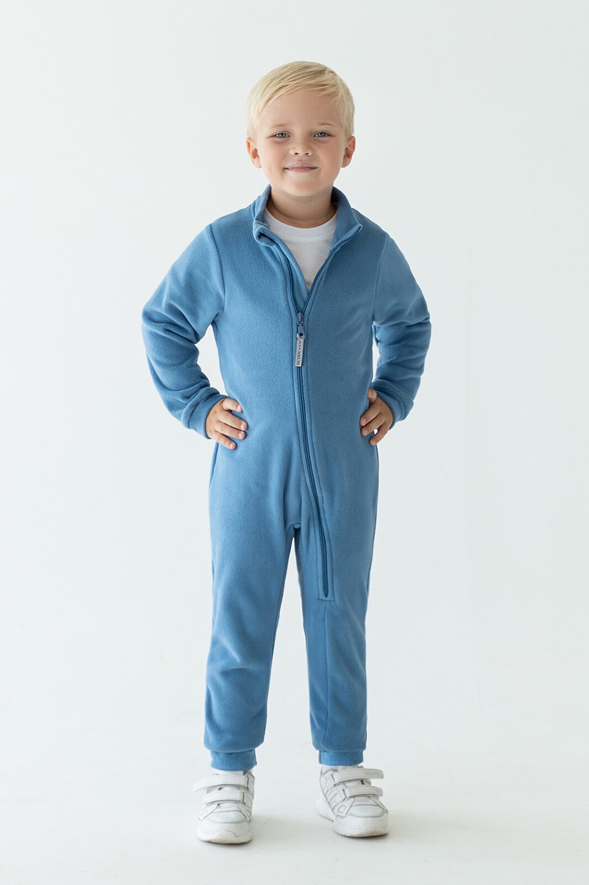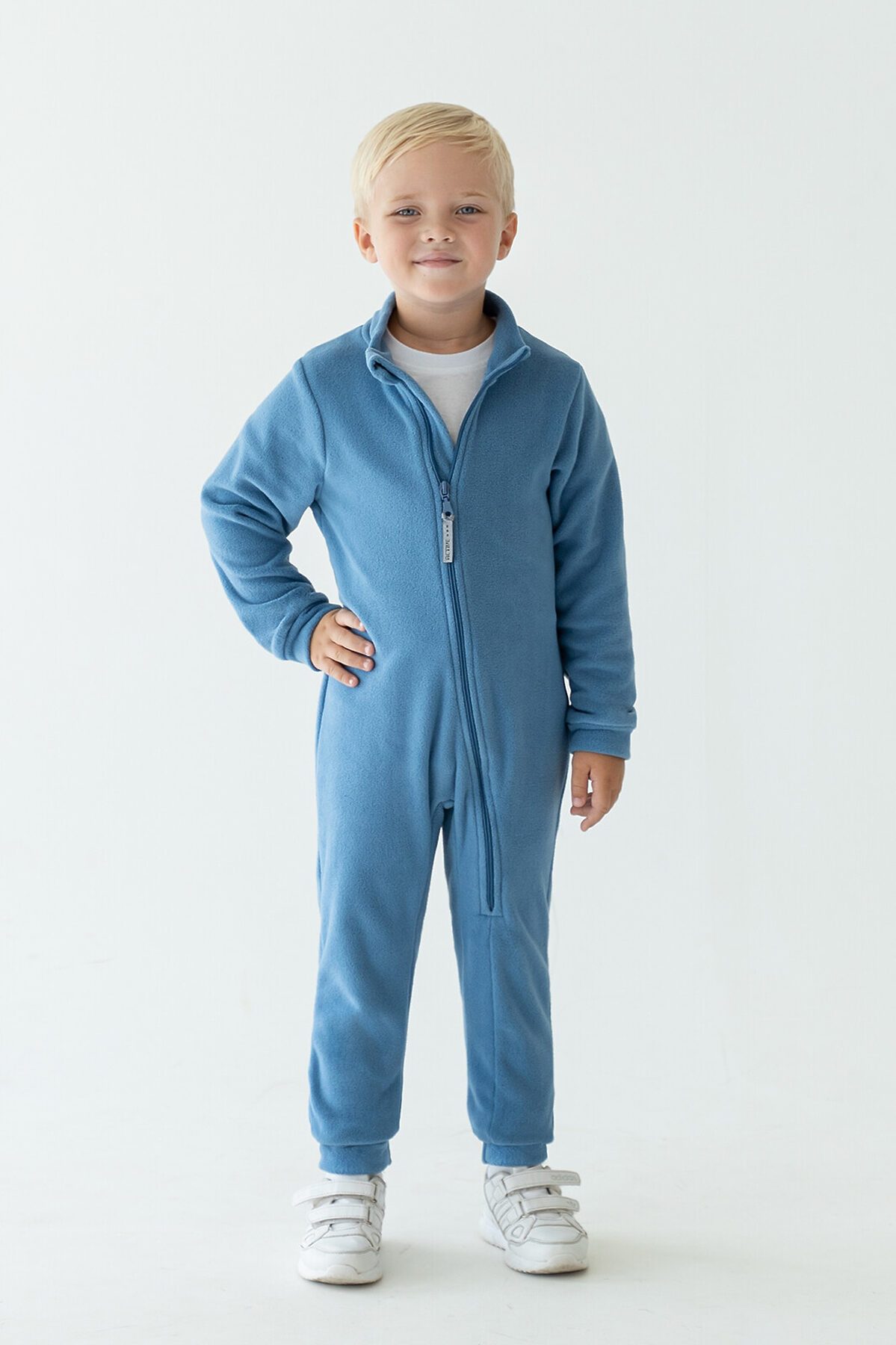 Малышу будет комфортно и удобно в тёплом комбинезоне-поддёве. Модель выполнена из флиса нового поколения Shelys цвета джинс. Флис Shelys не электризуется, приятен на ощупь, отлично удерживает тепло. Комбинезон имеет удобный воротник-стойку, манжеты на рукавах и штанинах, внутреннюю ветрозащитную планку. Для лучшего прилегания к телу в области поясницы пришита резинка. Комбинезон застёгивается на косую молнию, к бегунку которой прикреплён серебристый пуллер.>