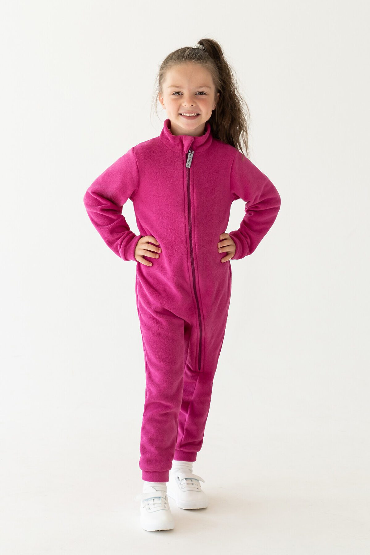 Малышу будет комфортно и удобно в тёплом комбинезоне-поддёве. Модель выполнена из флиса нового поколения Shelys однотонного цвета фуксии. Флис Shelys не электризуется, приятен на ощупь, отлично удерживает тепло. Комбинезон имеет удобный воротник-стойку, манжеты на рукавах и штанинах, внутреннюю ветрозащитную планку. Для лучшего прилегания к телу в области поясницы пришита резинка. Комбинезон застёгивается на косую молнию, к бегунку которой прикреплён серебристый пуллер.>