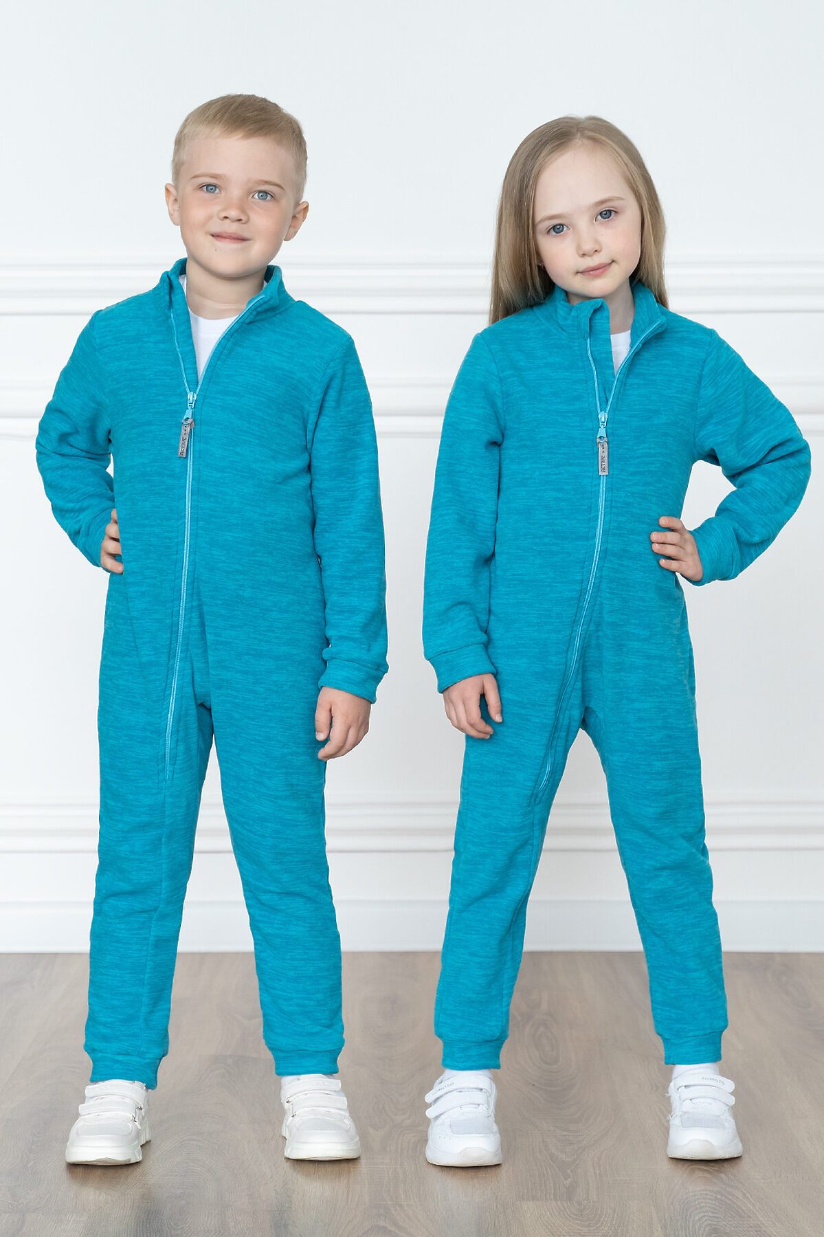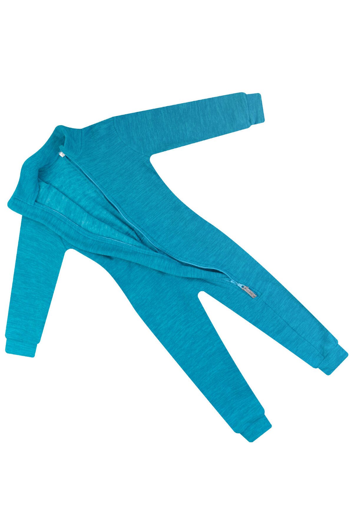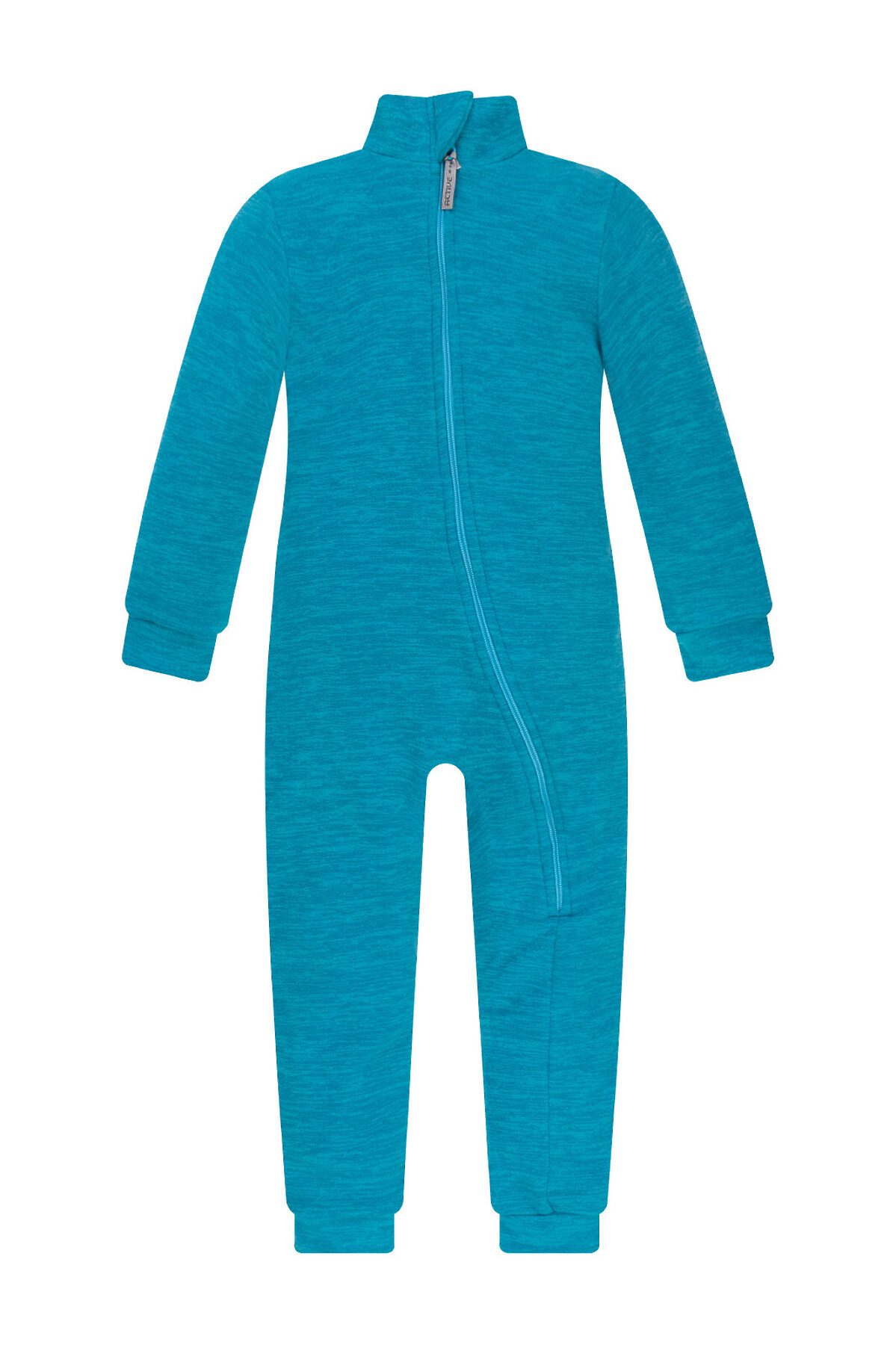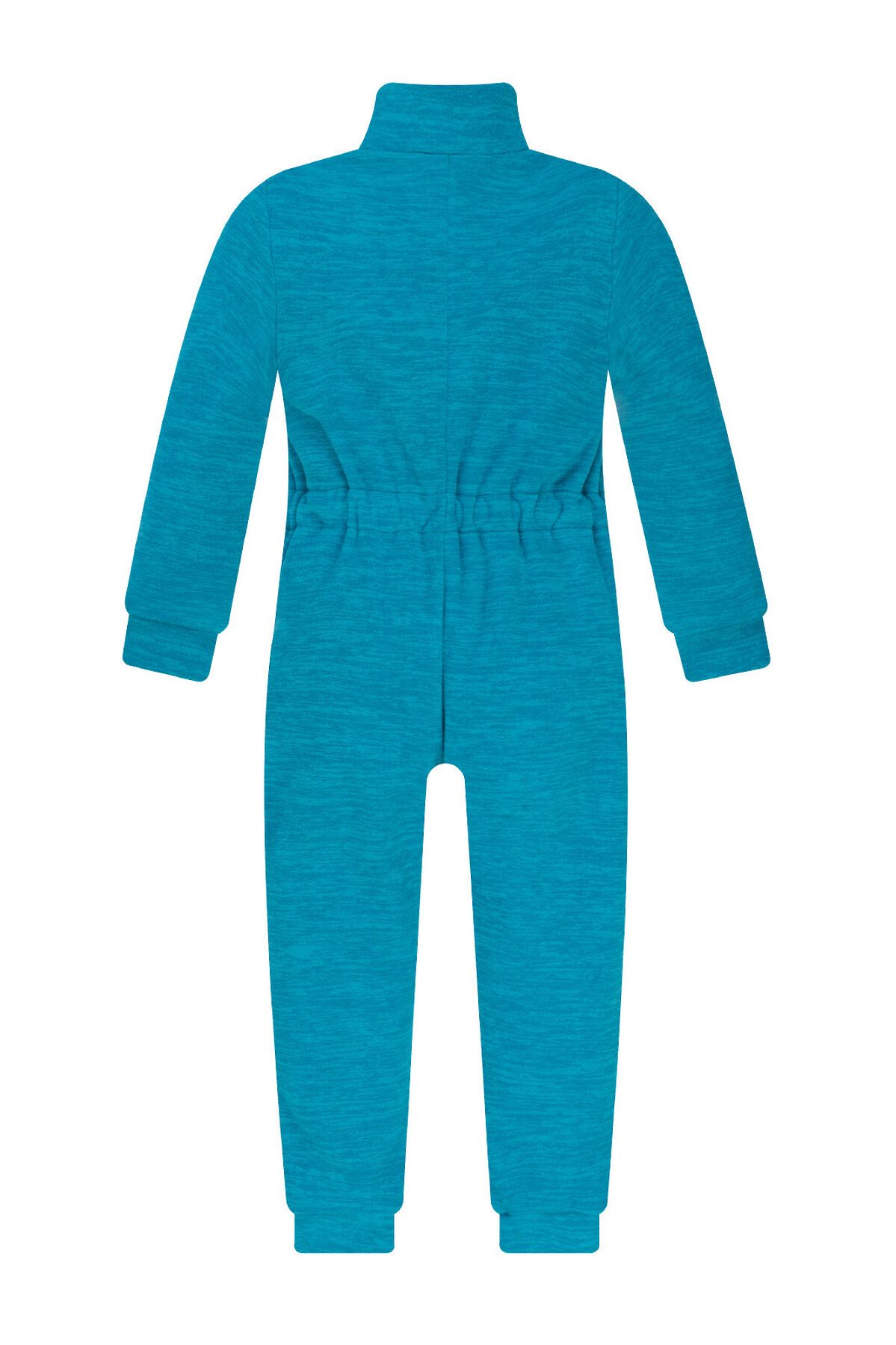 Мягкий и тёплый флис с меланжевым эффектом бирюзового цвета, хорошо сохраняет тепло, не электризуется. Особенности модели: комбинезон однотонного цвета. Высокий воротник, клапан для бегунка молнии. Манжеты на рукавах и штанинах. На спине резинка для лучшего прилегания. Ассиметричная застёжка-молния уходит в ножку.>