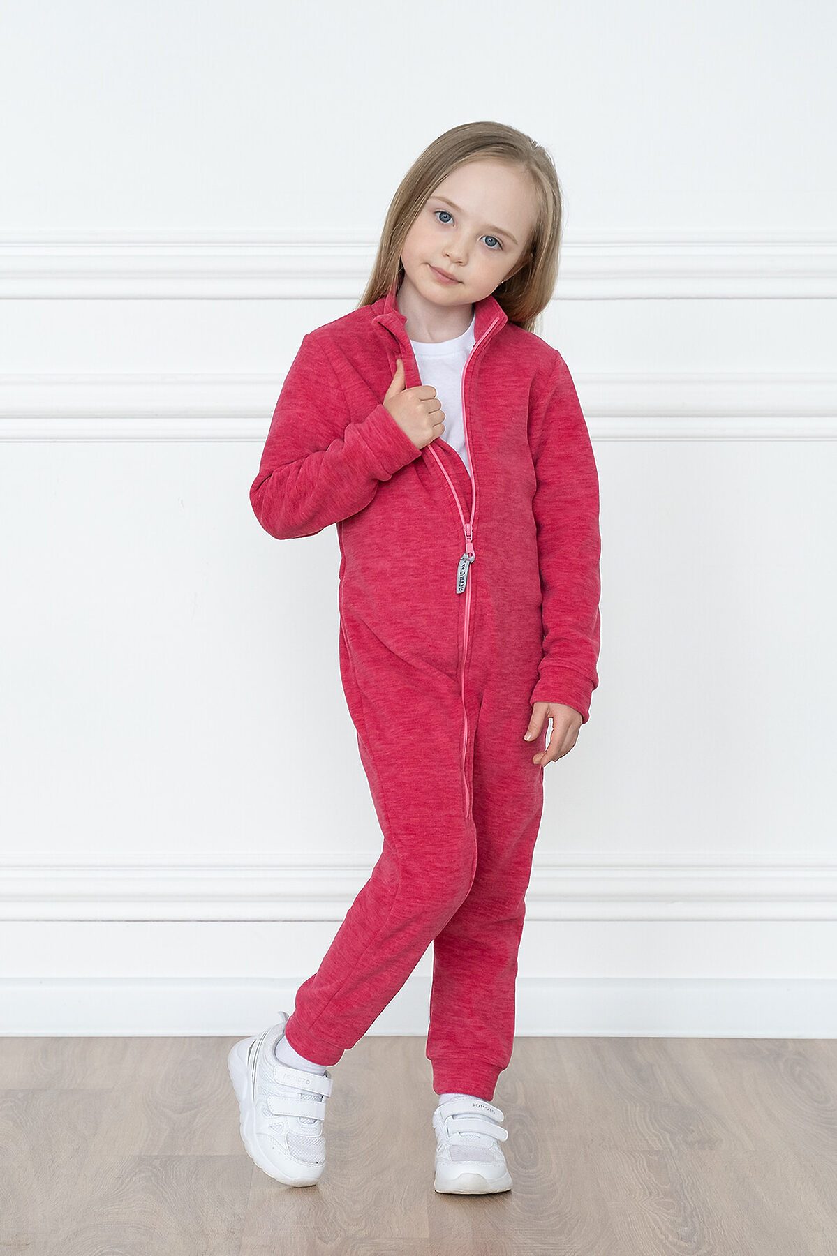 Мягкий и тёплый флис с меланжевым эффектом, хорошо сохраняет тепло, не электризуется. Особенности модели: комбинезон однотонного розового цвета. Высокий воротник, клапан для бегунка молнии. Манжеты на рукавах и штанинах. На спине резинка для лучшего прилегания. Ассиметричная застёжка-молния уходит в ножку.>