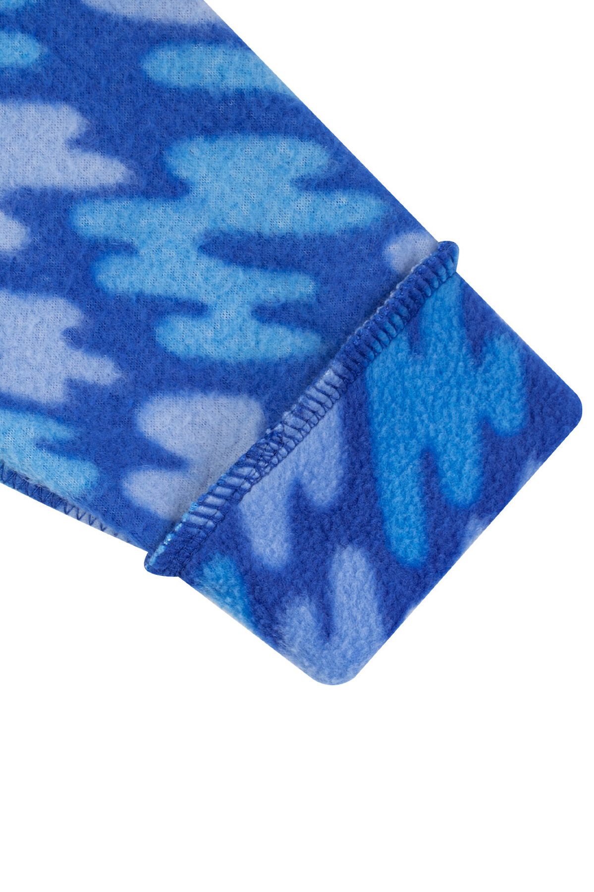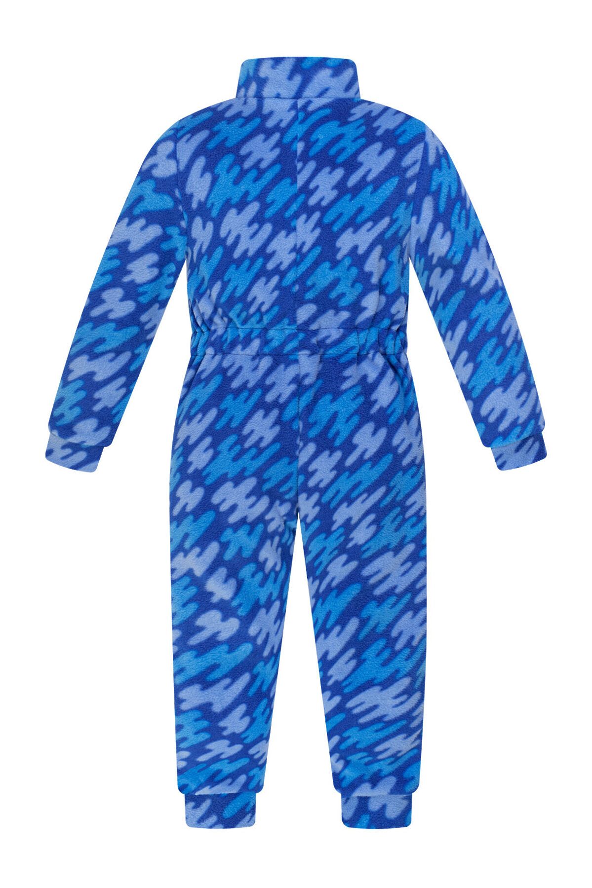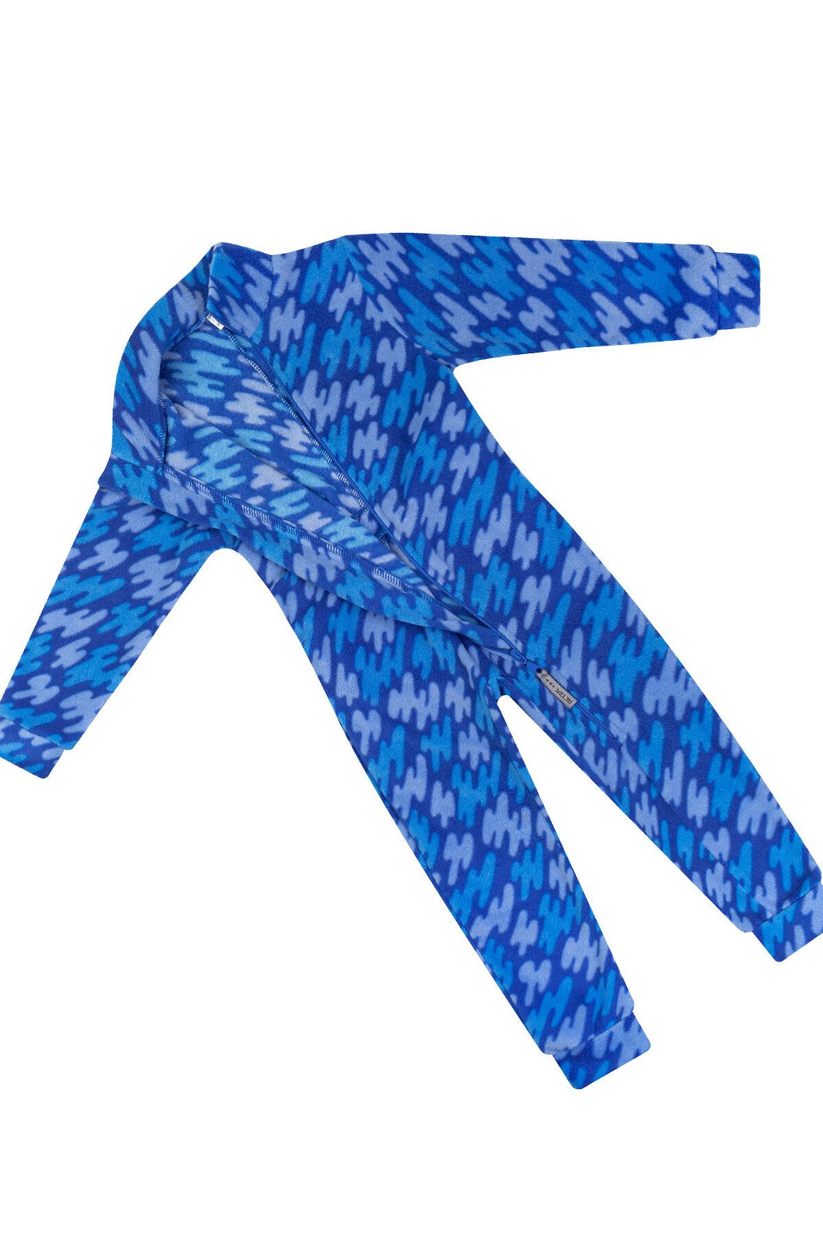 Флисовый комбинезон-поддёва с высоким воротником подойдёт детям для носки под верхнюю одежду. Модель выпускается из мягкого и нежного на ощупь флиса SHELYS плотностью 240 гр/кв.м. Для недопуска холодного воздуха внутрь рукава и штанины обработаны манжетами, а в области поясницы пришита резинка. Для удобного надевания молния-застёжка расположена по косой до середины ножки. На воротнике-стойке есть клапан для бегунка молнии для защиты подбородка. Комбинезон яркого синего (василек) цвета с принтом штрихи. >