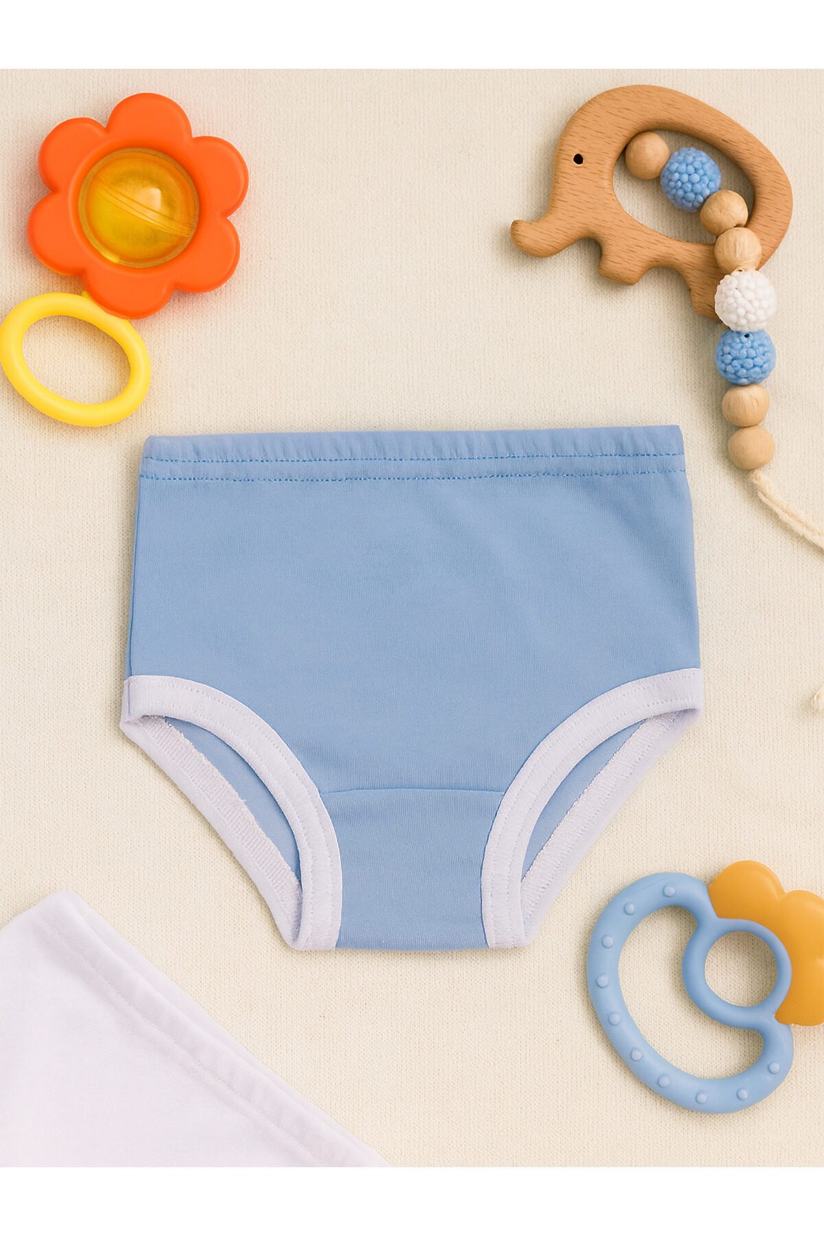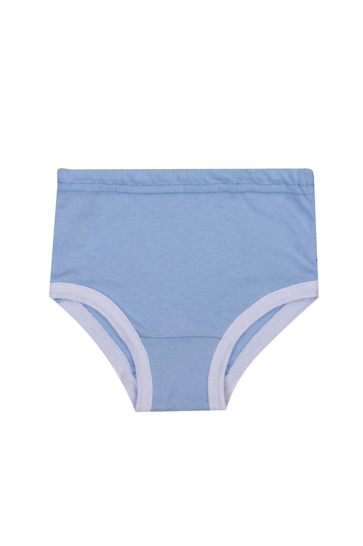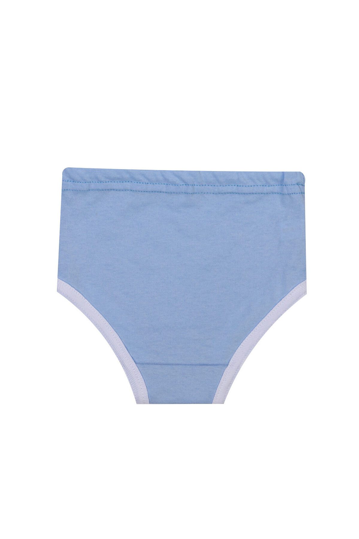 Детские трикотажные хлопковые высокие трусики комфортной посадки. Пояс на эластичной резиночке. Вырезы для ножек обработаны эластичной трикотажной бейкой. Ластовица двойная. Подходят для девочек. Выпускаются в однотонном голубом цвете. >