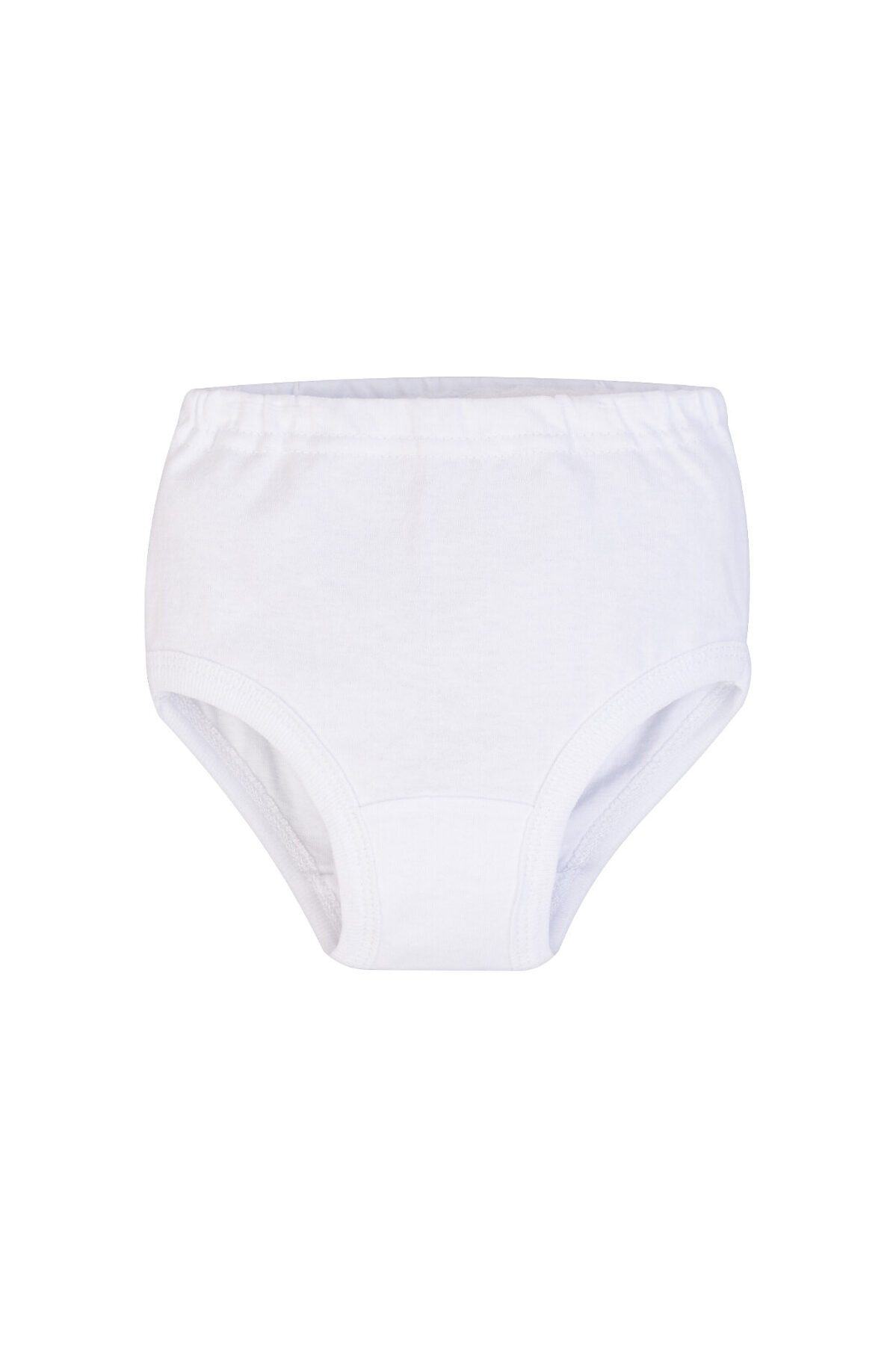 Детские трикотажные хлопковые высокие трусики комфортной посадки. Пояс на эластичной резиночке. Вырезы для ножек обработаны эластичной трикотажной бейкой. Ластовица двойная. Подходят для девочек. Выпускаются в однотонном белом цвете. >