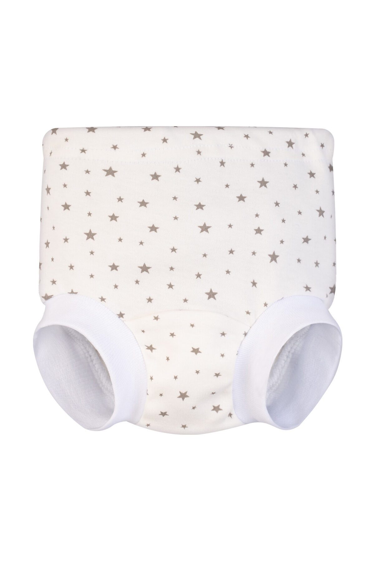 Детские трусики под памперс для мальчика и девочки в милой расцветке с принтом звездочки. Прилегающий силуэт. Ластовица двойная. На ножках эластичные мягкие манжеты. Пояс с регулируемой резиночкой. Сшиты из хлопкового гипоаллергенного набивного интерлока. >