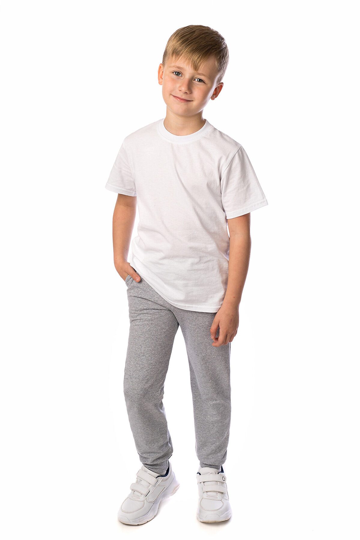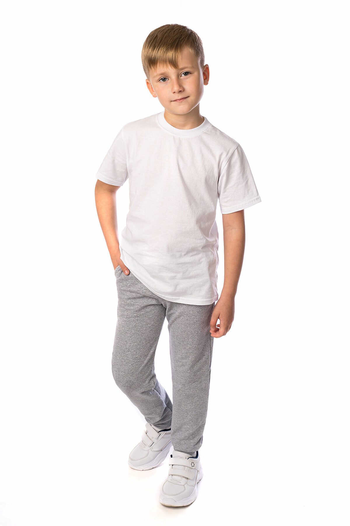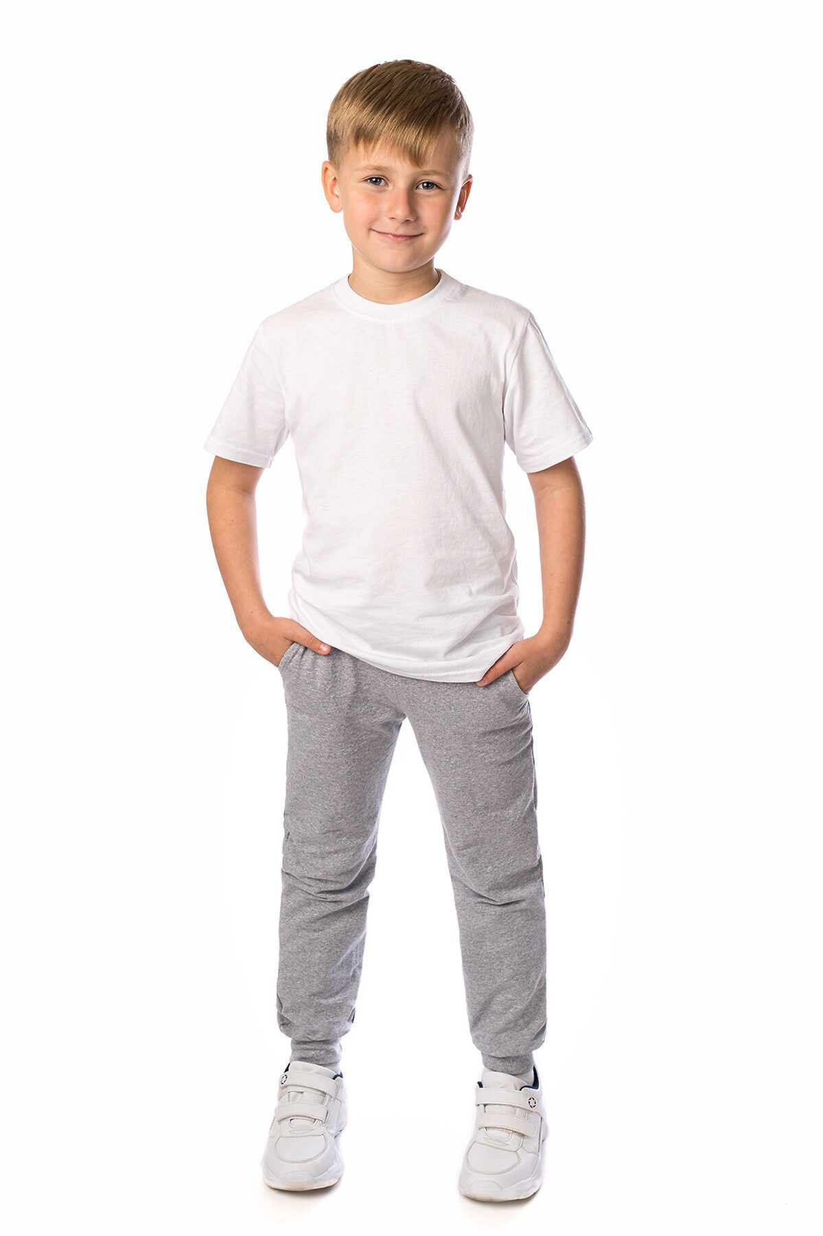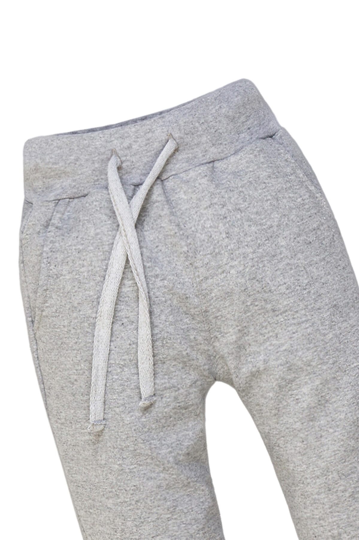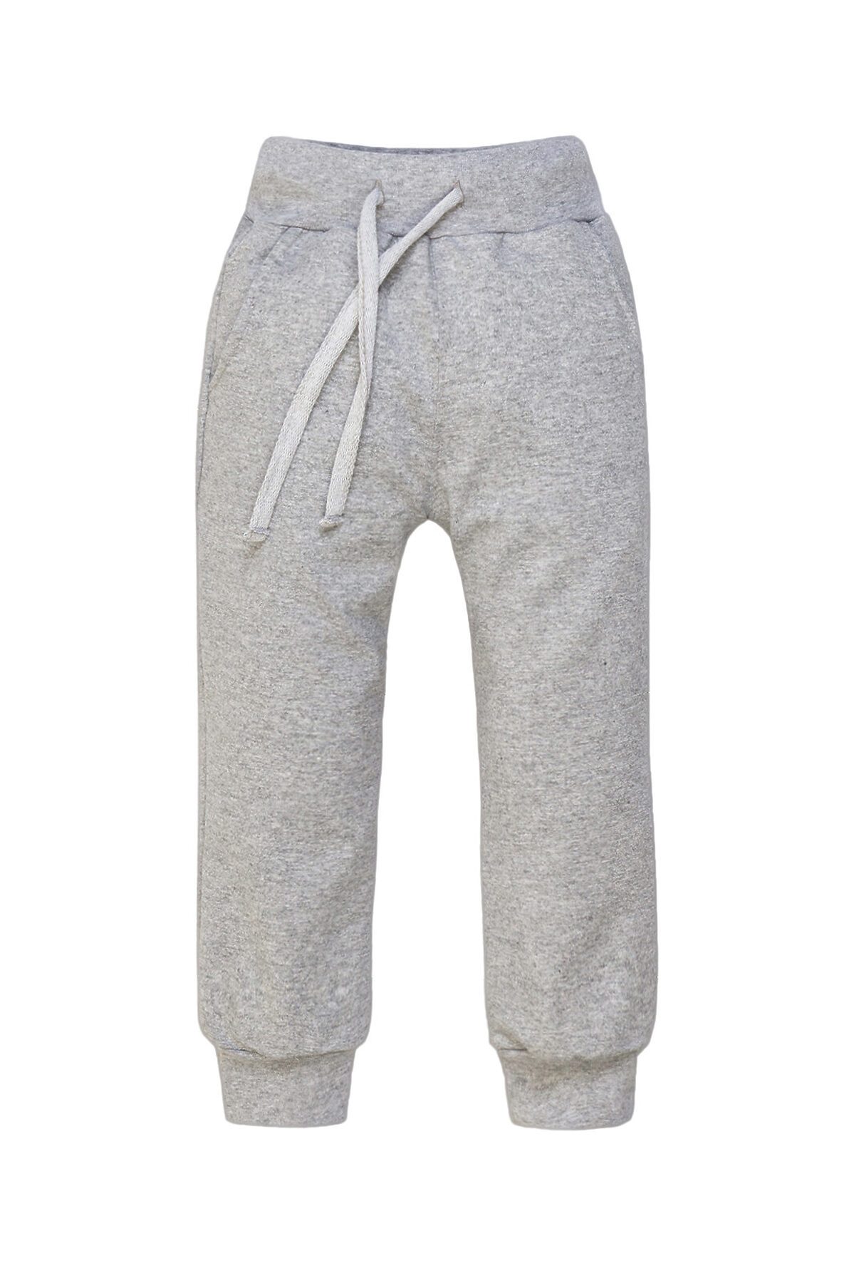 Трикотажные брюки серого меланжевого цвета свободного кроя пригодятся ребёнку для активных прогулок или занятий спортом. Модель выпускается из практичного и нежного на ощупь футера с добавлением лайкры. Брюки имеют глубокие карманы по бокам, широкий пояс, шнур для утяжки по размеру, манжеты внизу штанин.>