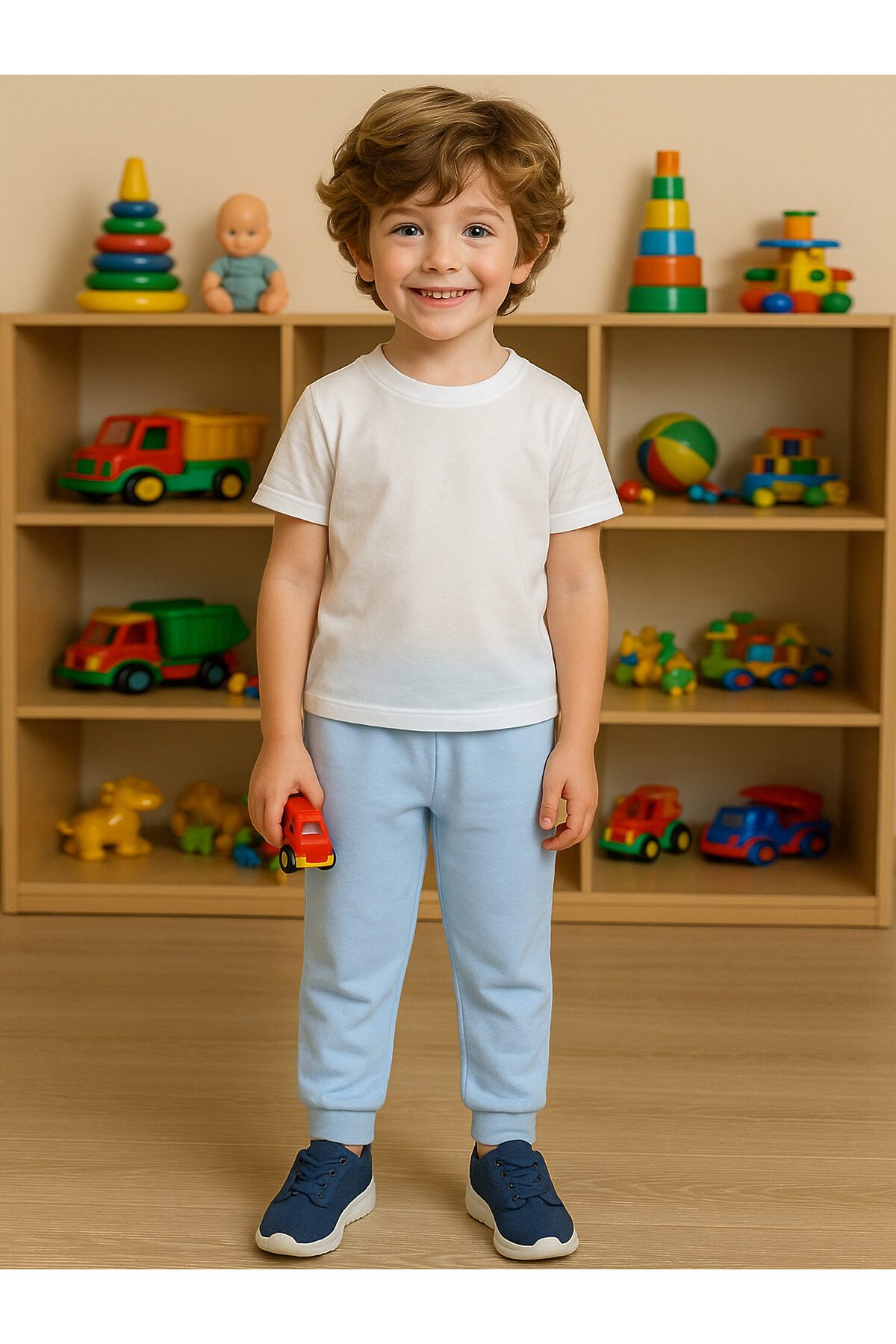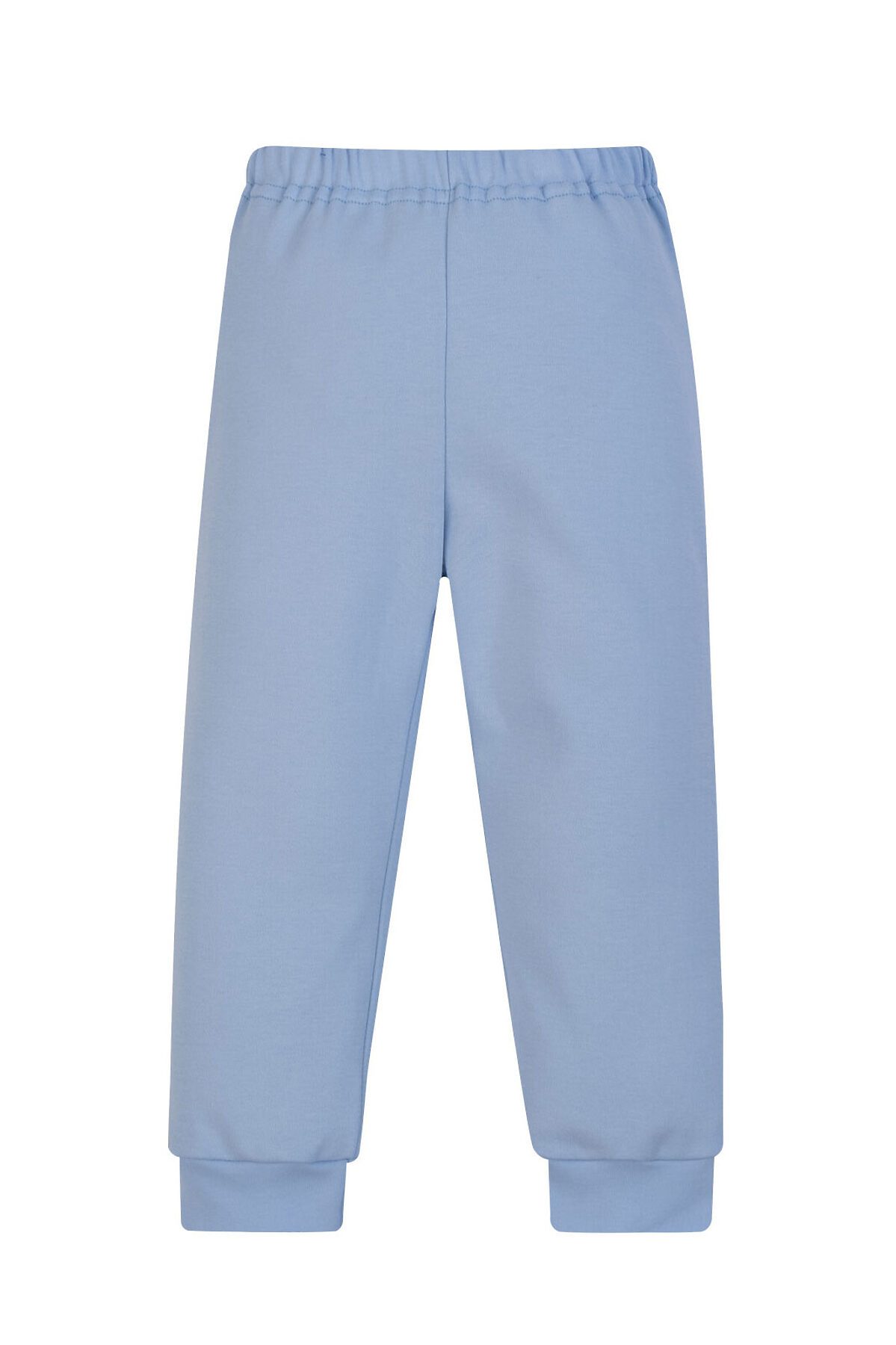 Для повседневной носки мальчикам и девочкам пригодятся комфортные трикотажные штанишки. Модель выпускается из мягкого, приятного и нежного на ощупь хлопкового интерлока голубого цвета. Брюки имеют широкую резинку в поясе и двуслойные манжеты внизу штанин. >