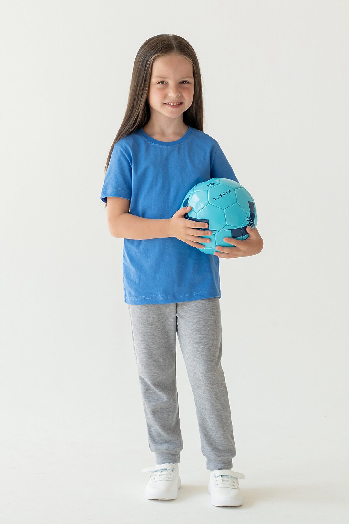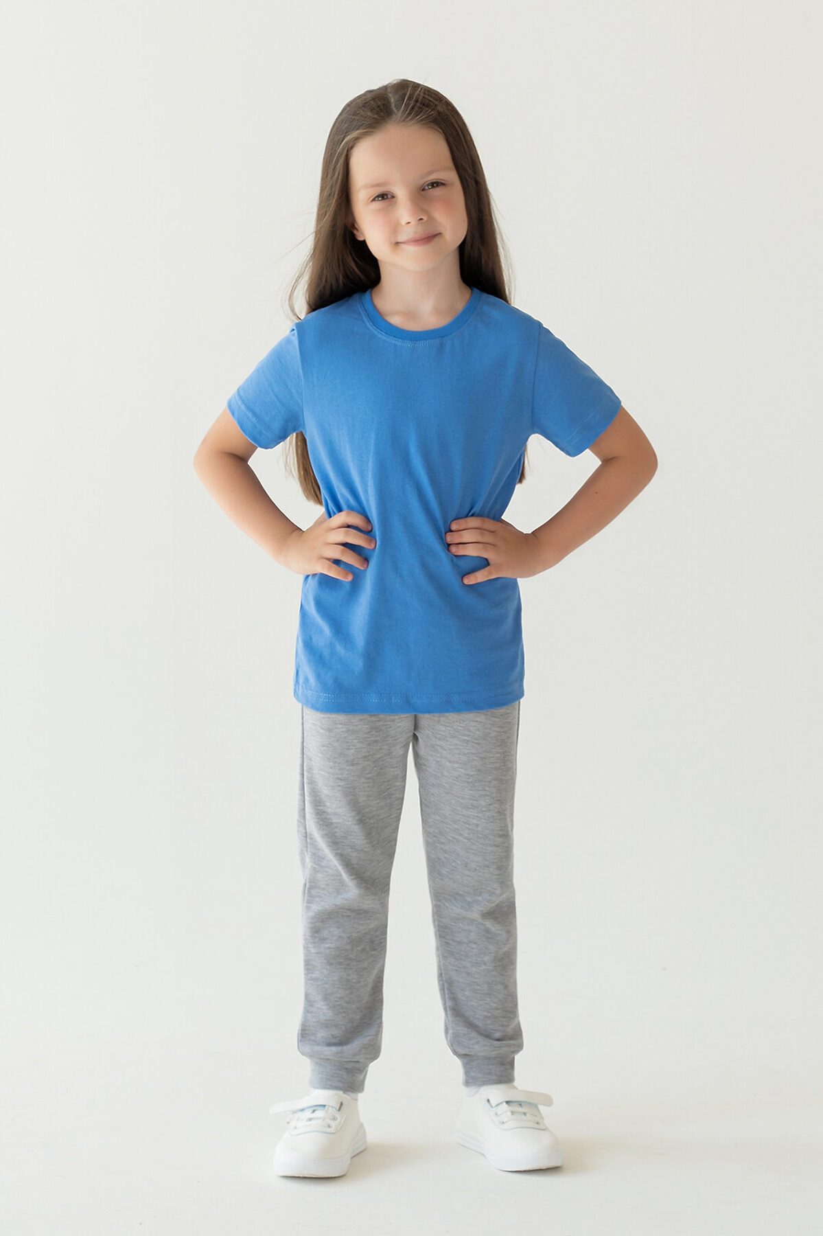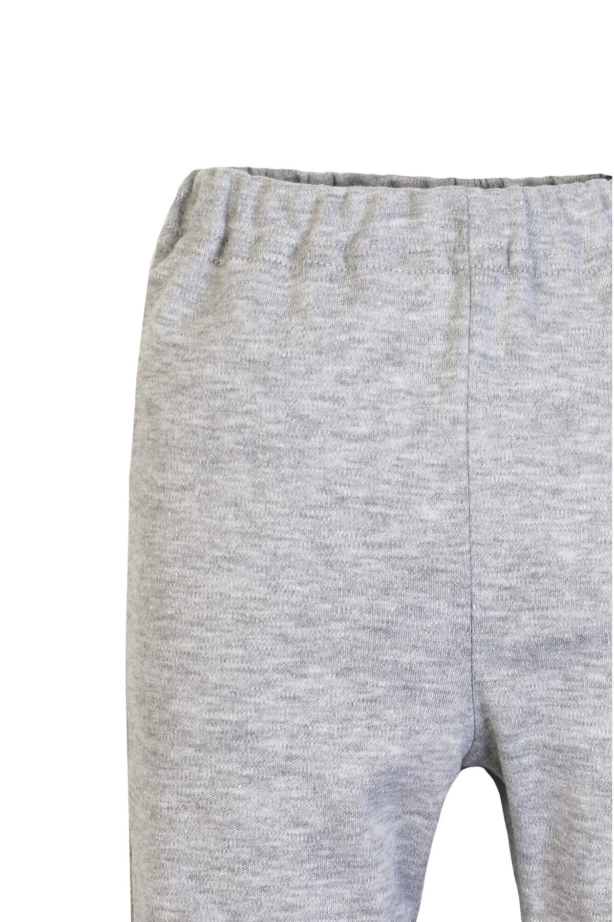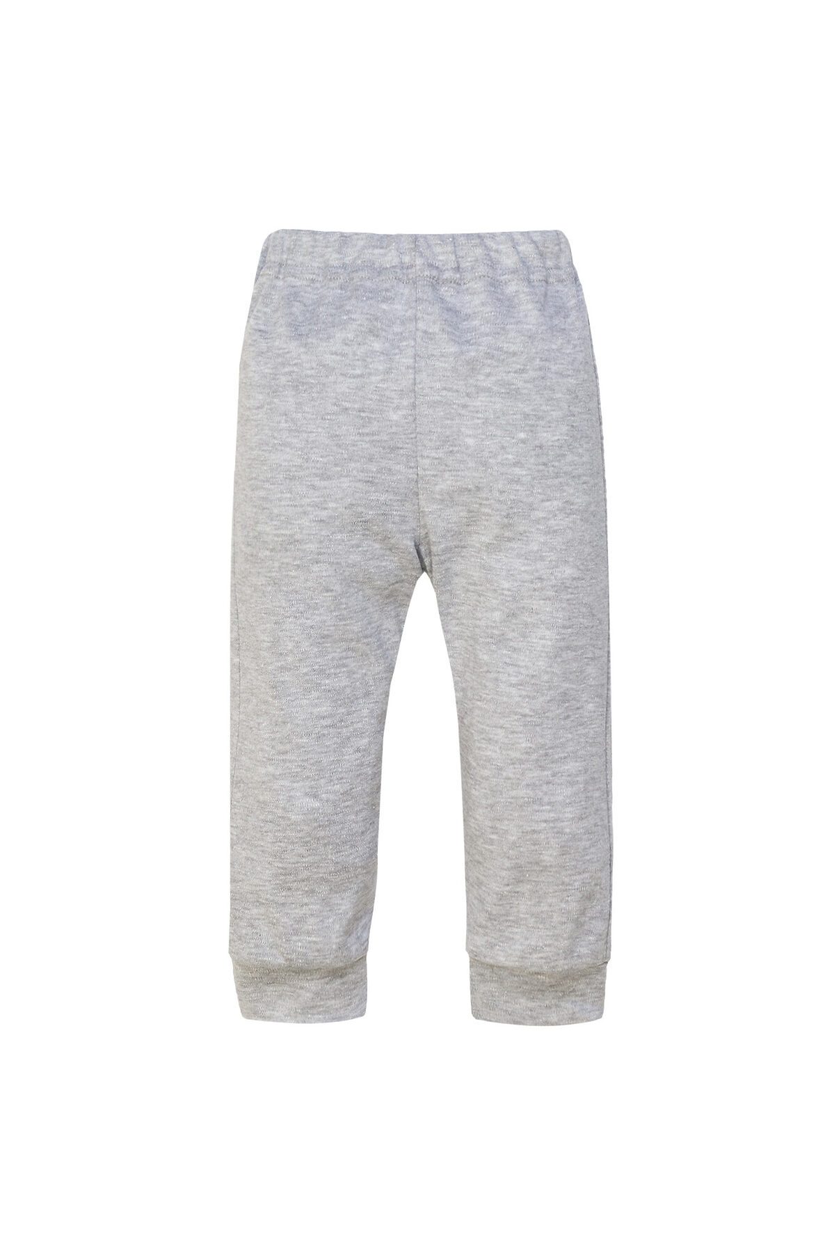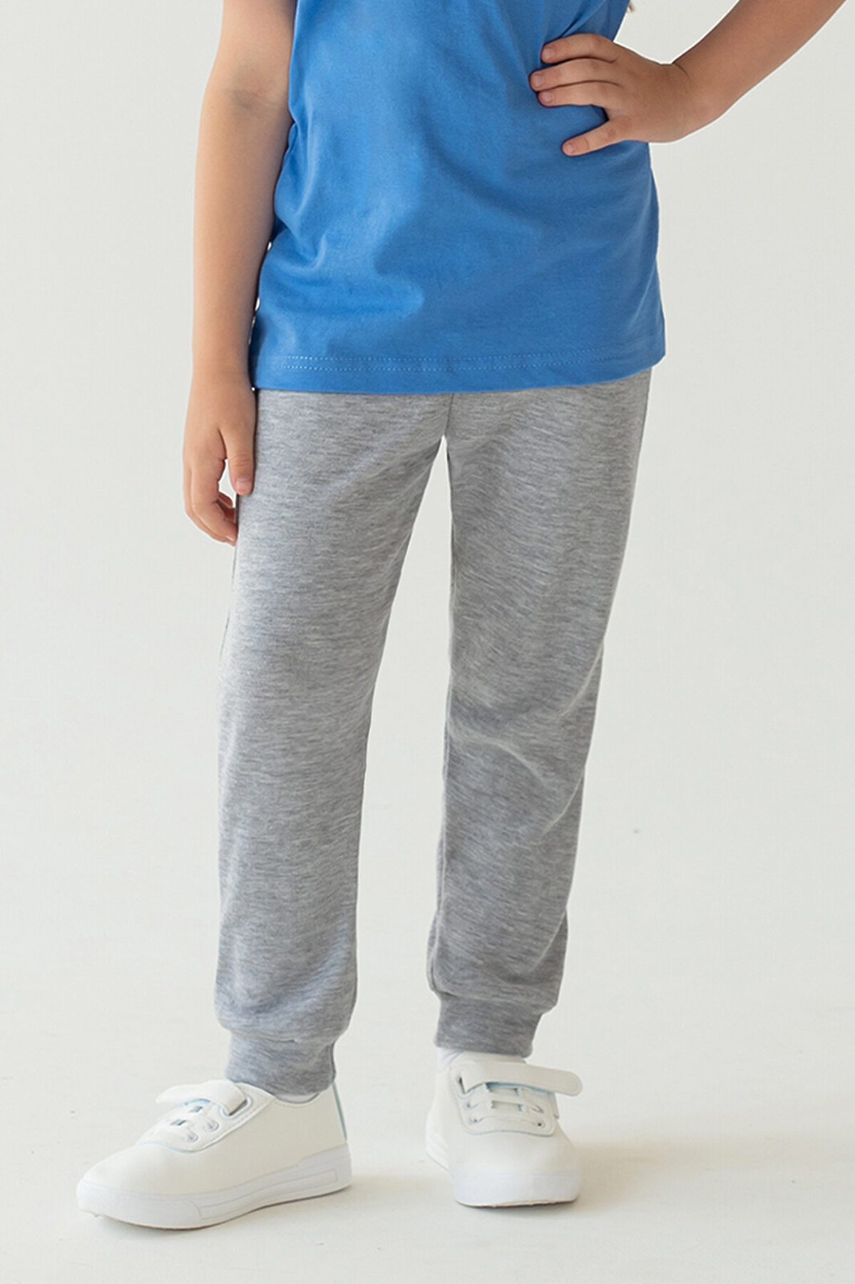 Для повседневной носки девочкам и мальчикам пригодятся комфортные трикотажные штанишки. Модель выпускается из мягкого, приятного и нежного на ощупь хлопкового интерлока серого меланжевого цвета. Брюки имеют широкую резинку в поясе и двуслойные манжеты внизу штанин. >