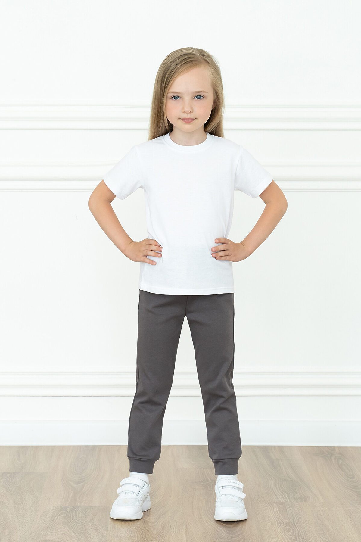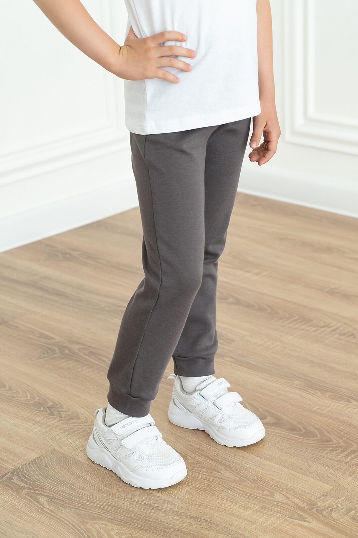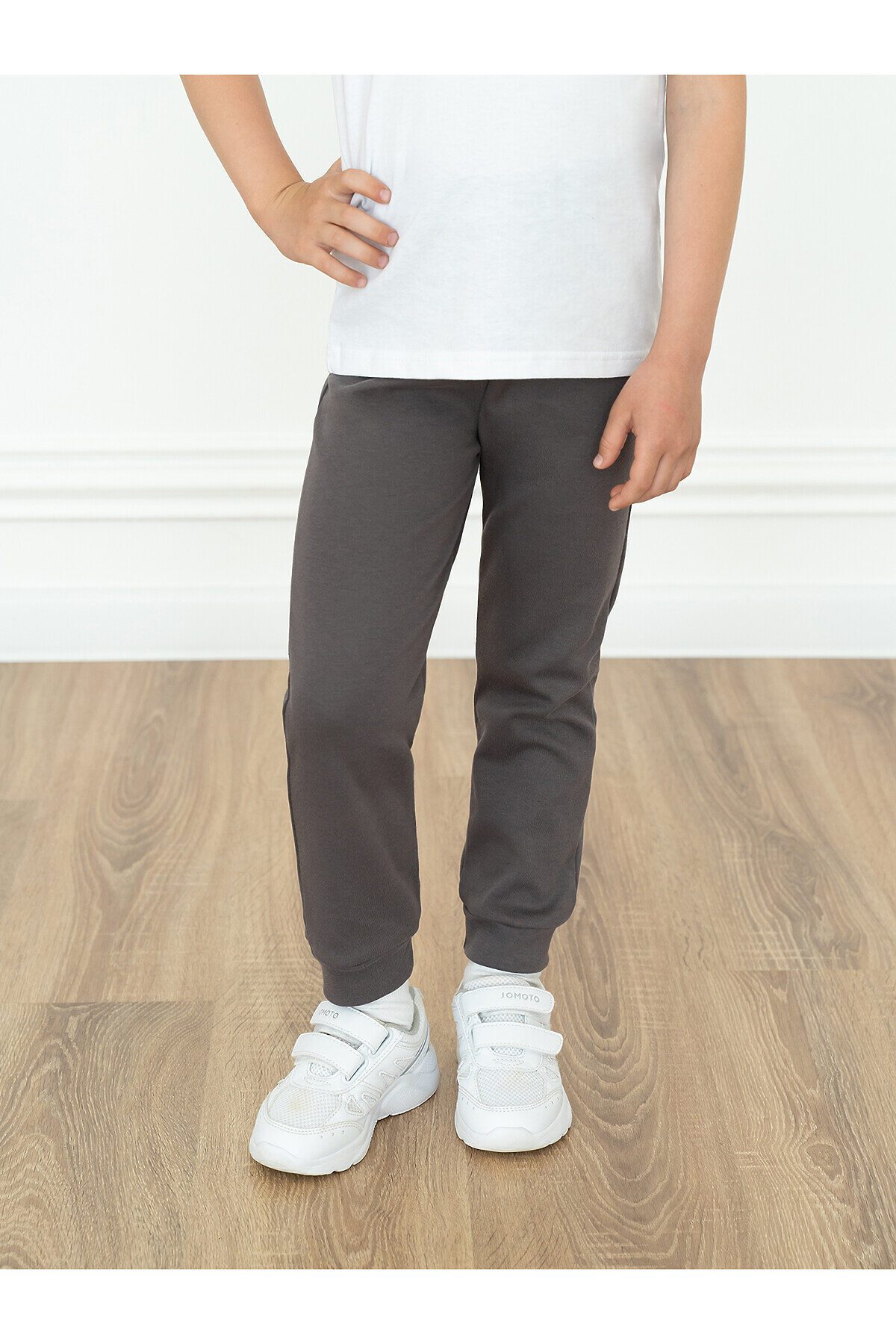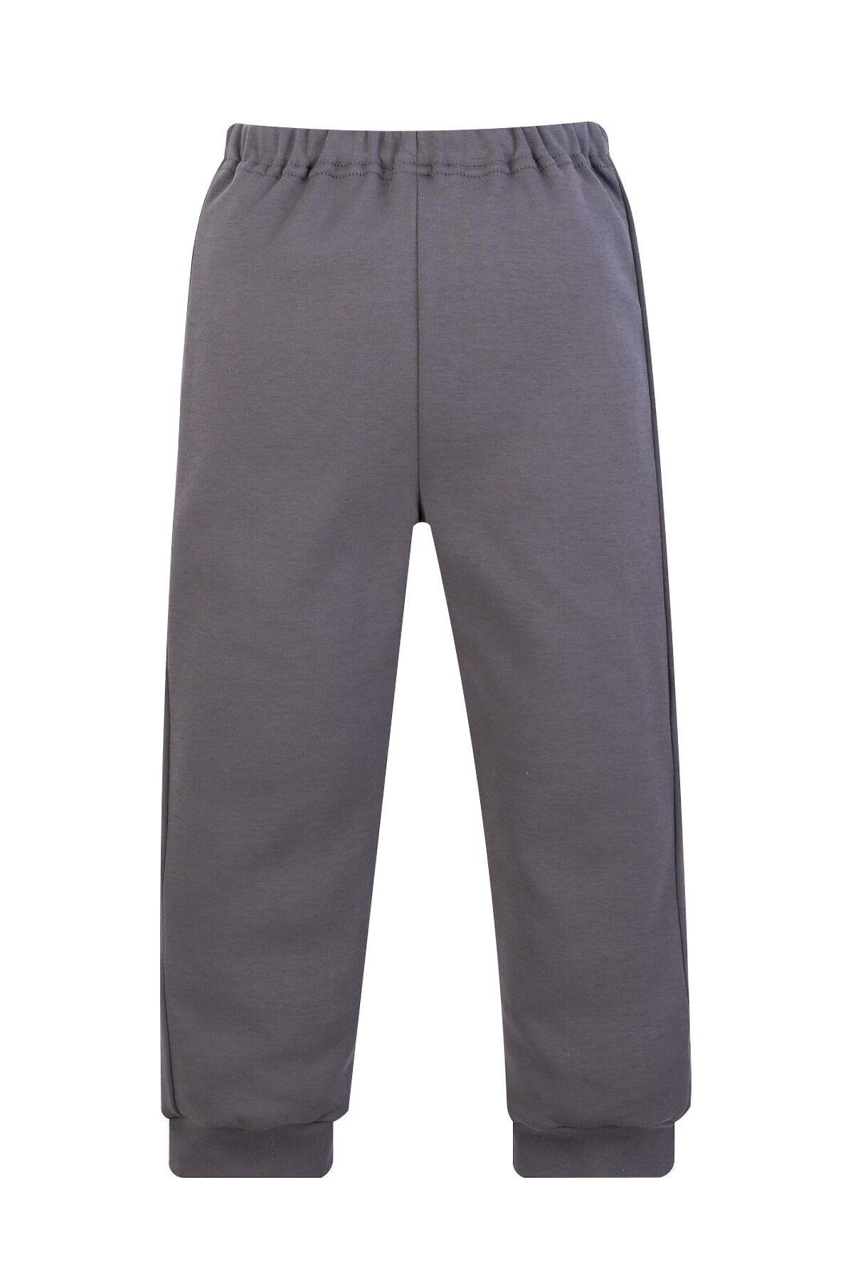 Для повседневной носки мальчикам и девочкам пригодятся комфортные трикотажные штанишки. Модель выпускается из мягкого, приятного и нежного на ощупь хлопкового интерлока серого цвета. Брюки имеют широкую резинку в поясе и двуслойные манжеты внизу штанин.>