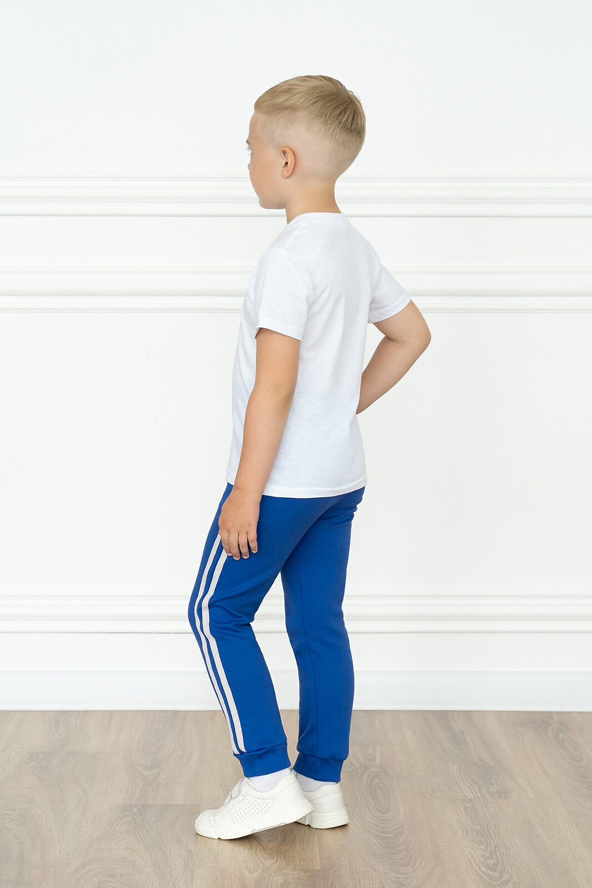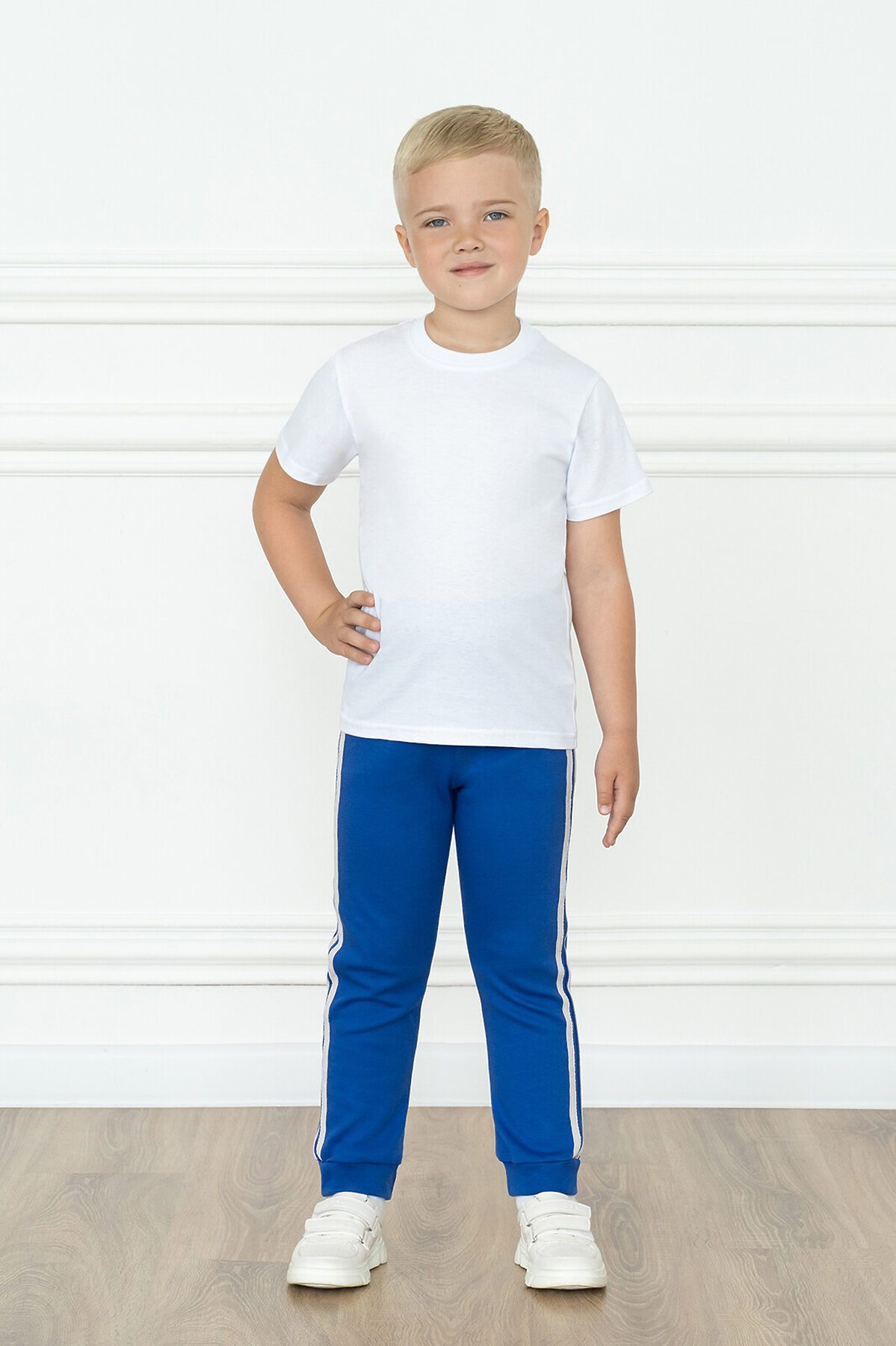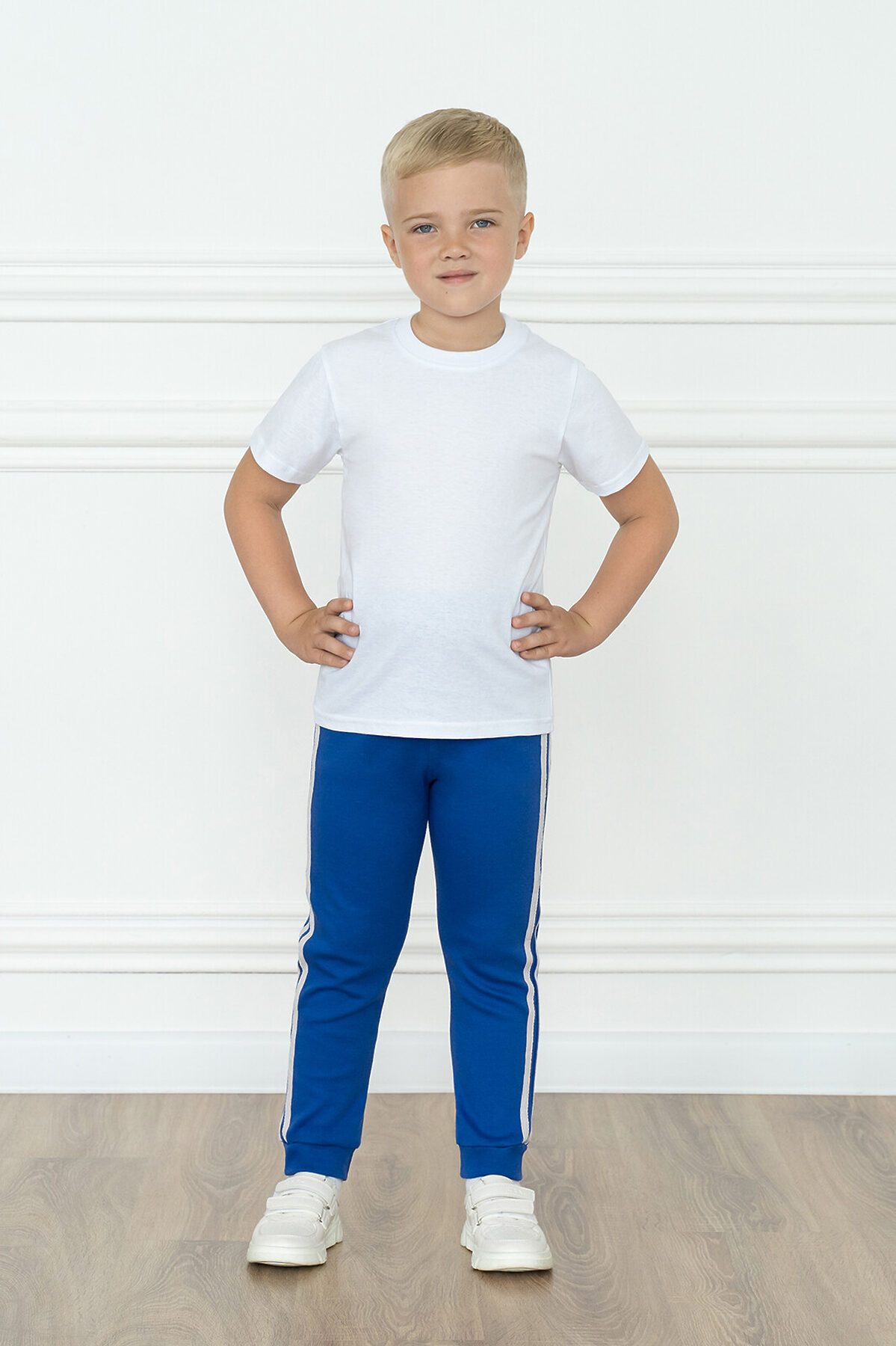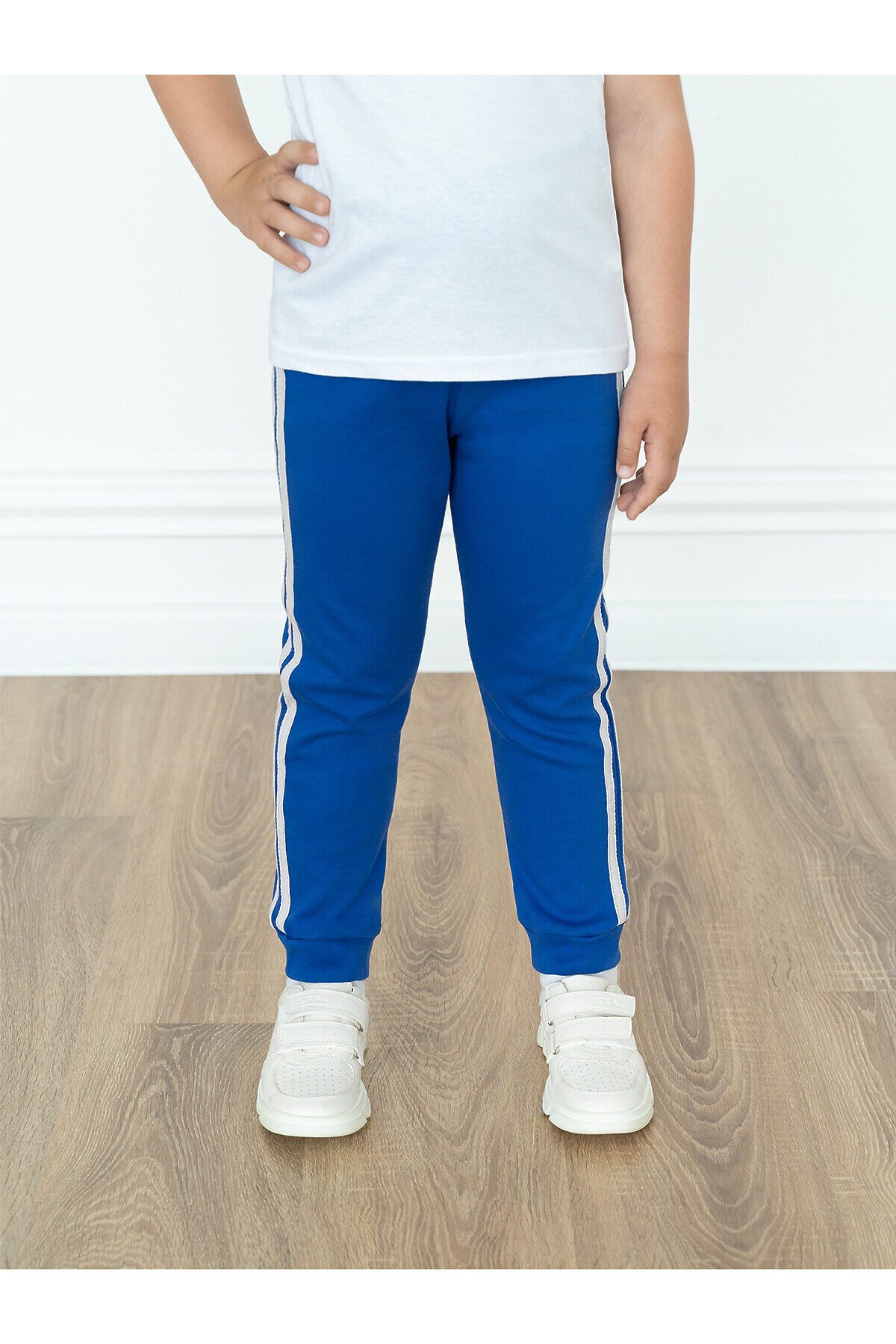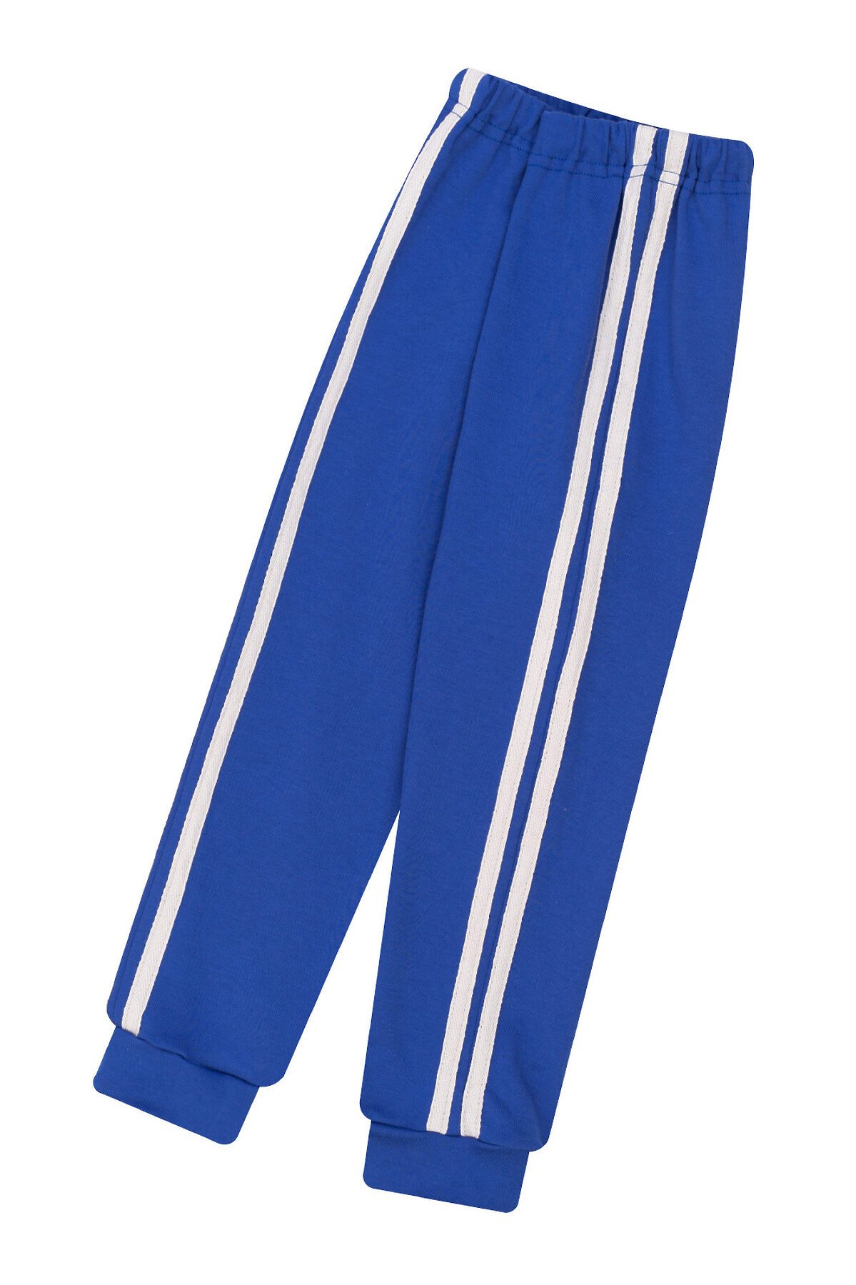 Детские трикотажные домашние штанишки василькового цвета для мальчиков и девочек. Подходят для повседневной носки дома, прогулок на улице и занятий спортом. Сшиты из мягкого и нежного хлопкового трикотажа. Полуприлегающий силуэт. Пояс на резинке. По низу штанин двуслойные манжеты. По бокам две декоративные белые полоски (лампасы).>