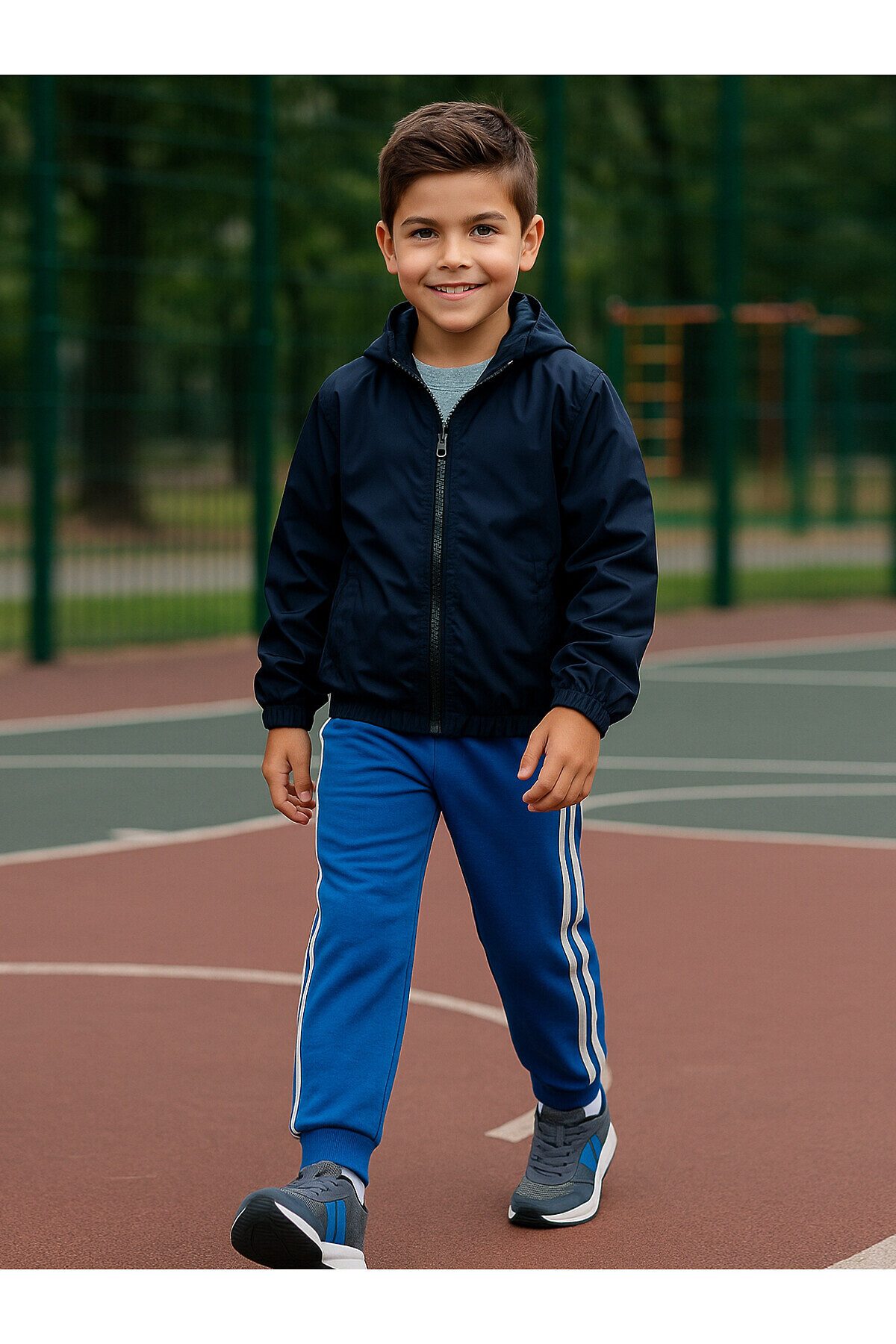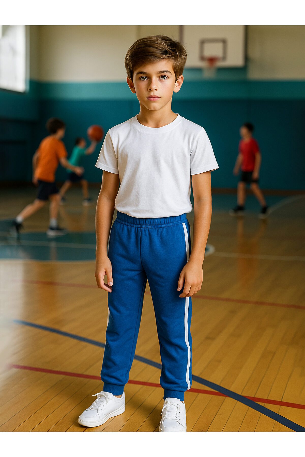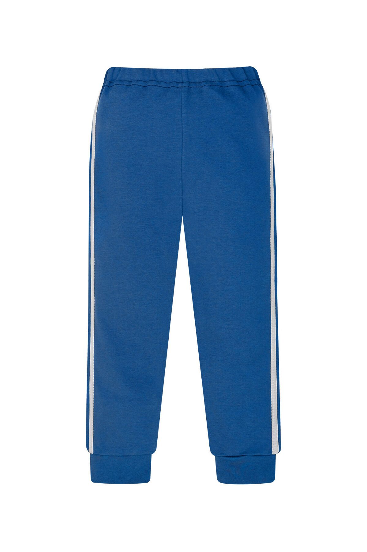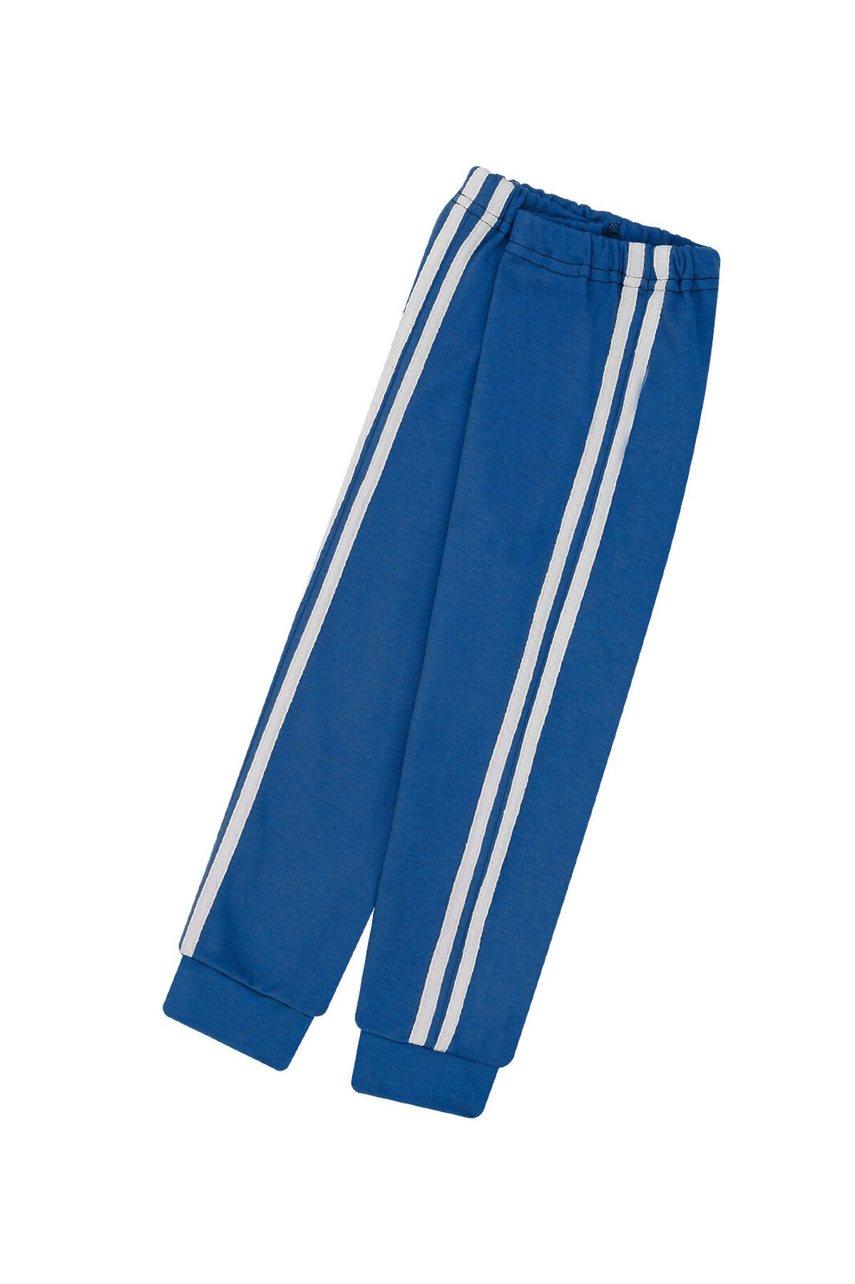 Детские трикотажные домашние штанишки цвета индиго для мальчиков и девочек. Подходят для повседневной носки дома, прогулок на улице и занятий спортом. Сшиты из мягкого и нежного хлопкового трикотажа. Полуприлегающий силуэт. Пояс на резинке. По низу штанин двуслойные манжеты. По бокам две декоративные белые полоски (лампасы). >