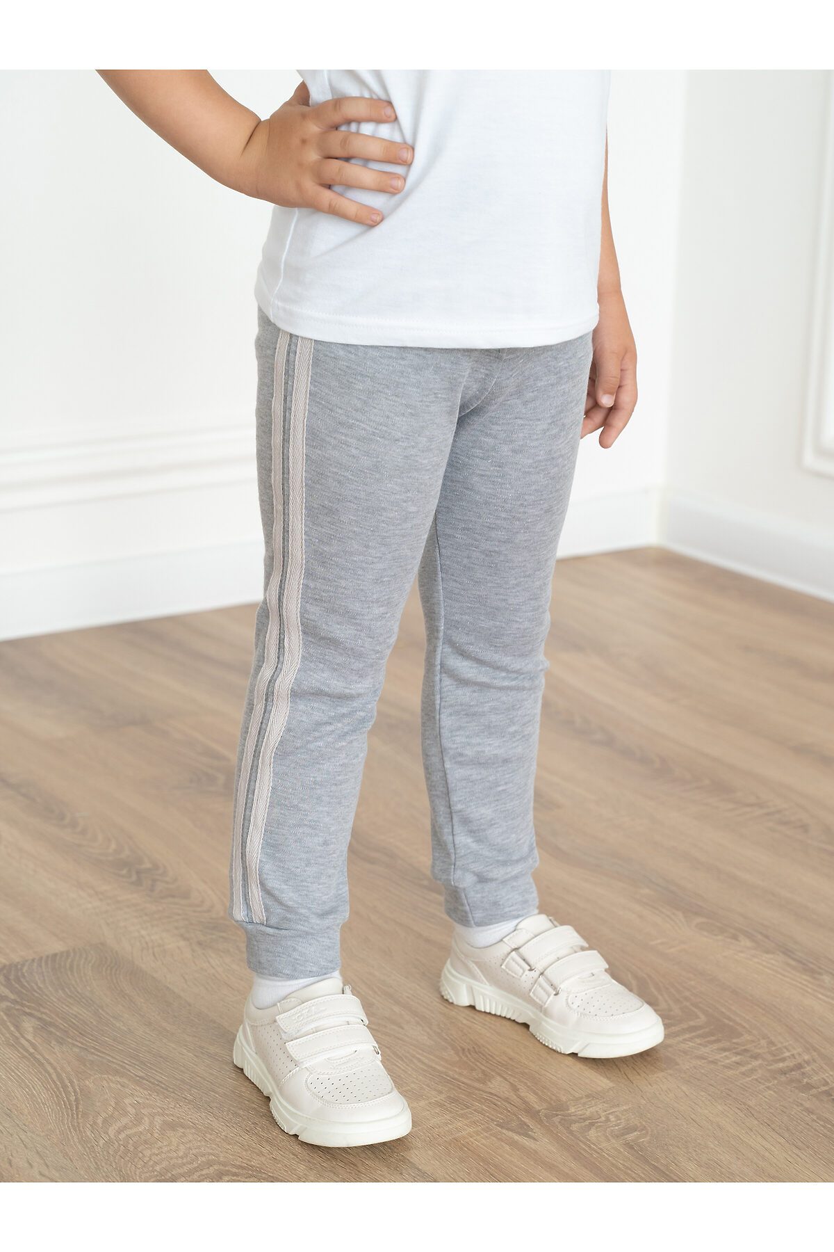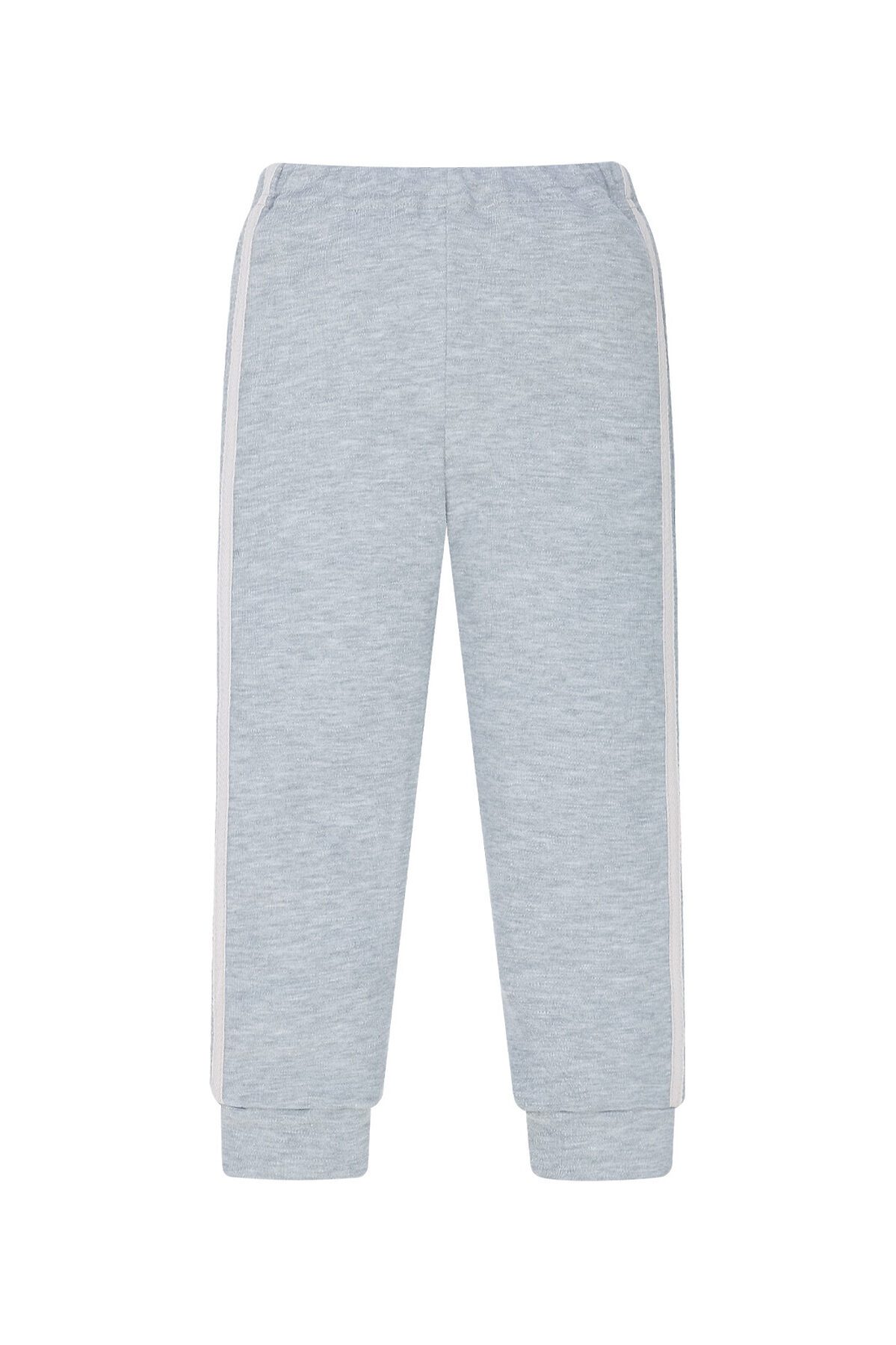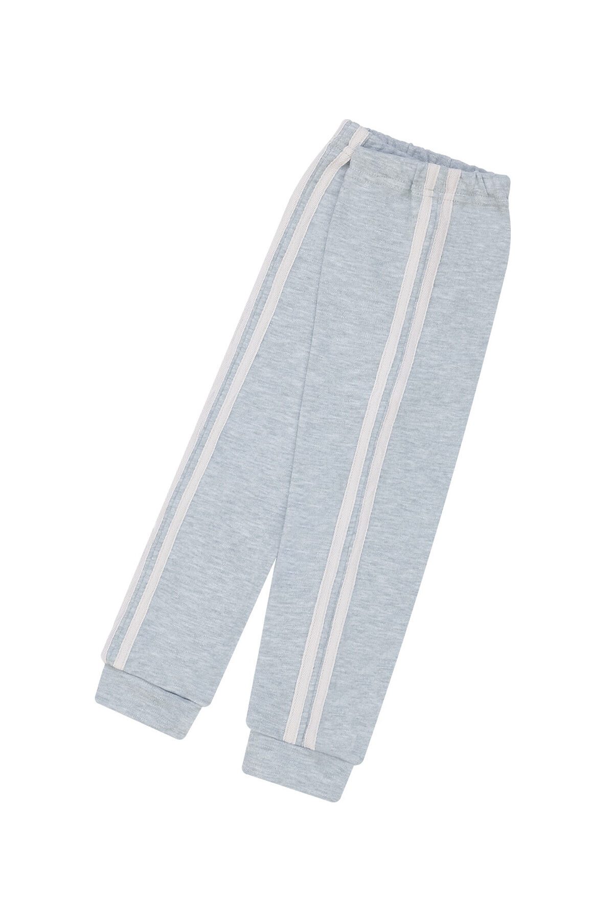 Детские трикотажные домашние штанишки серого меланжевого цвета для мальчиков и девочек. Подходят для повседневной носки дома, прогулок на улице и занятий спортом. Сшиты из мягкого и нежного хлопкового трикотажа. Полуприлегающий силуэт. Пояс на резинке. По низу штанин двуслойные манжеты. По бокам две декоративные белые полоски (лампасы).>