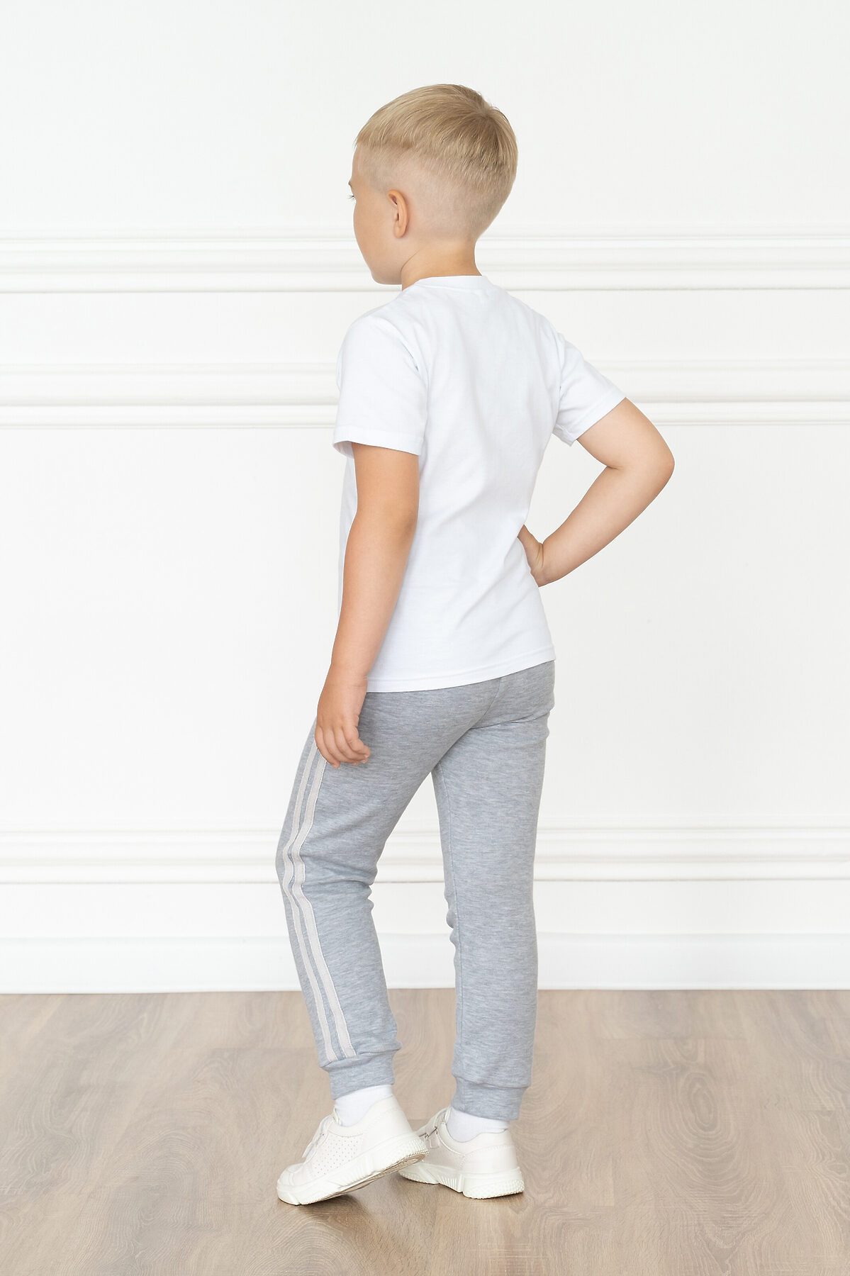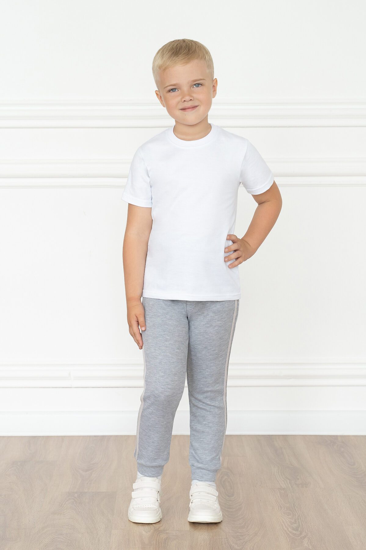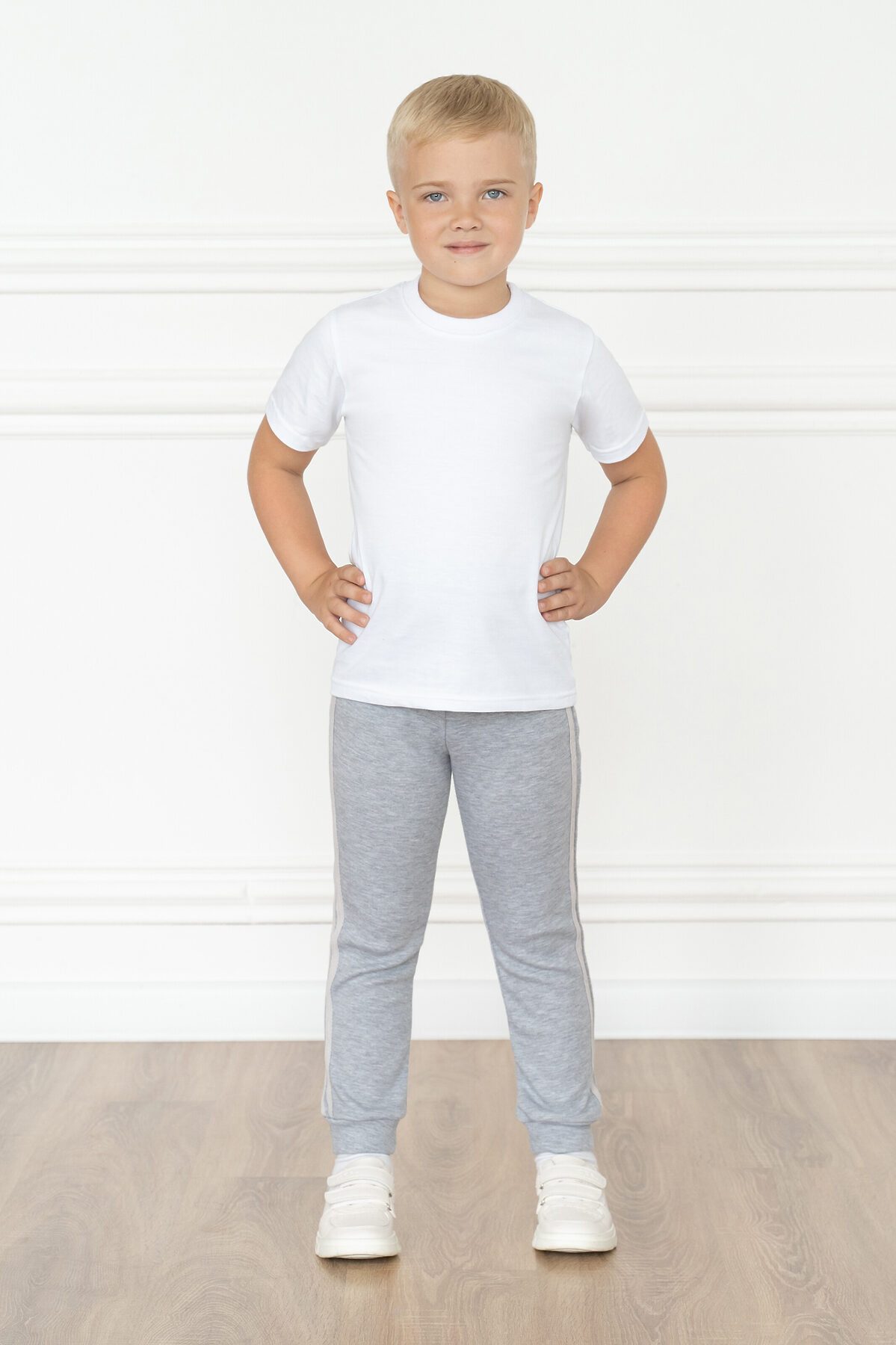 Детские трикотажные домашние штанишки серого меланжевого цвета для мальчиков и девочек. Подходят для повседневной носки дома, прогулок на улице и занятий спортом. Сшиты из мягкого и нежного хлопкового трикотажа. Полуприлегающий силуэт. Пояс на резинке. По низу штанин двуслойные манжеты. По бокам две декоративные белые полоски (лампасы).>